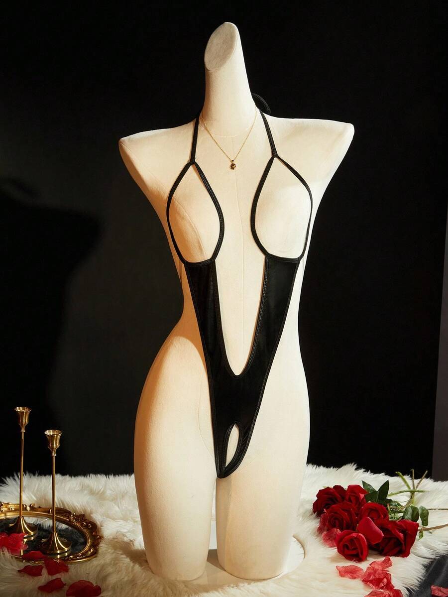 Spicyhot bodyduit de 3 piezas de piel de pu con tirantes transparentes, espalda descubierta y abertura en la entrepierna, adelgazante, ultra sexy, adecuado para baile de mascaras, fiesta de bar, atuendo de club, festival de musica, salir
