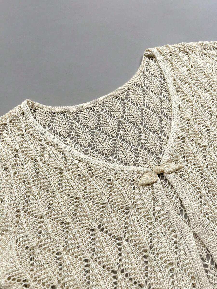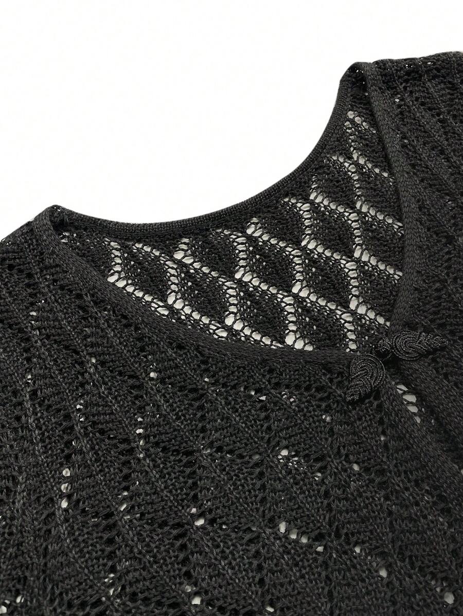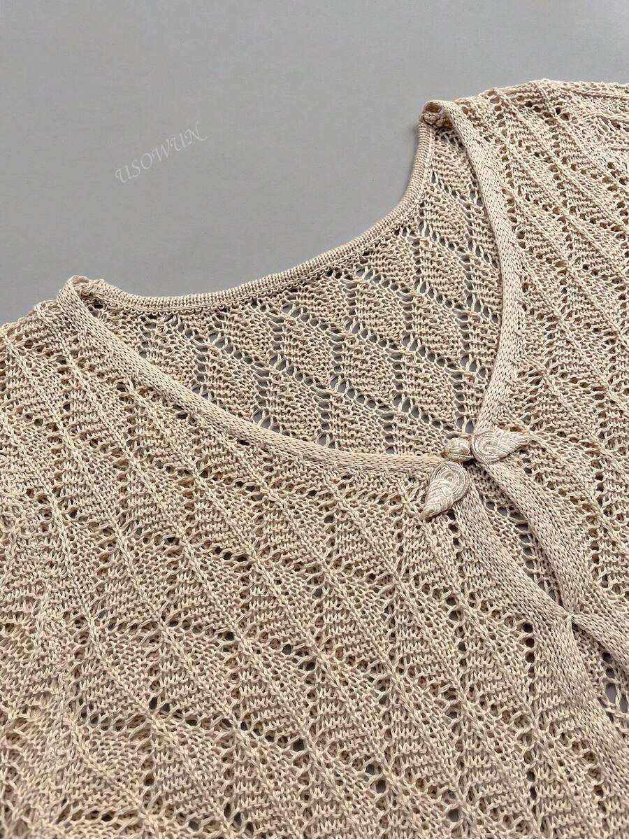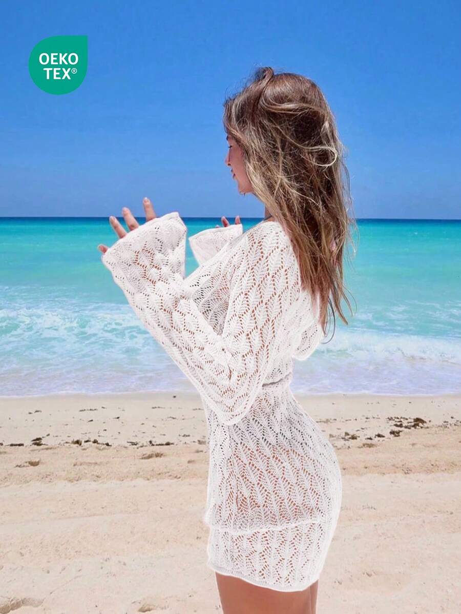 Vestido corto de cubierta de manga larga con escote en v, de unicolor, bohemio, sexy, calado y transparente, para mujer, primavera/verano