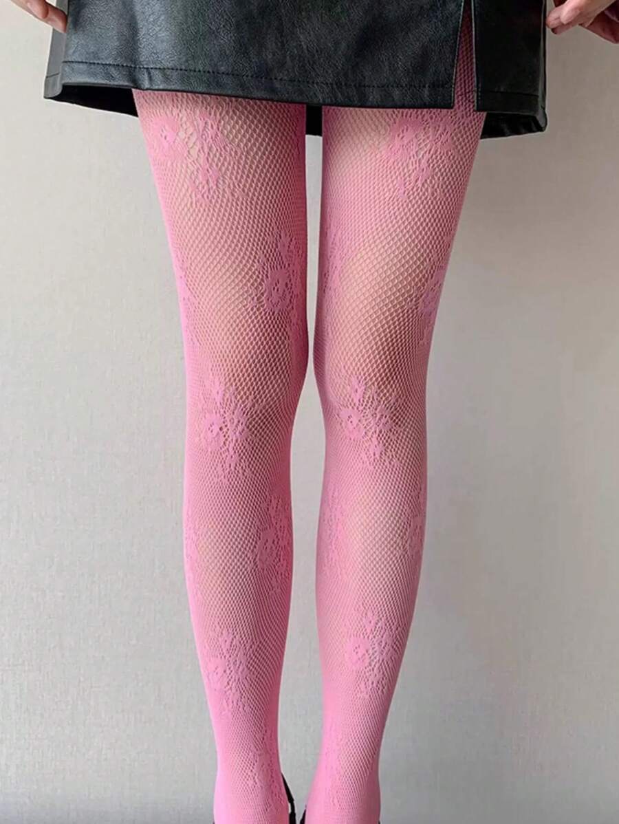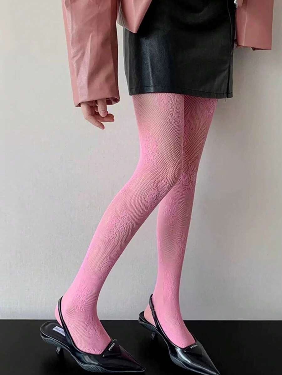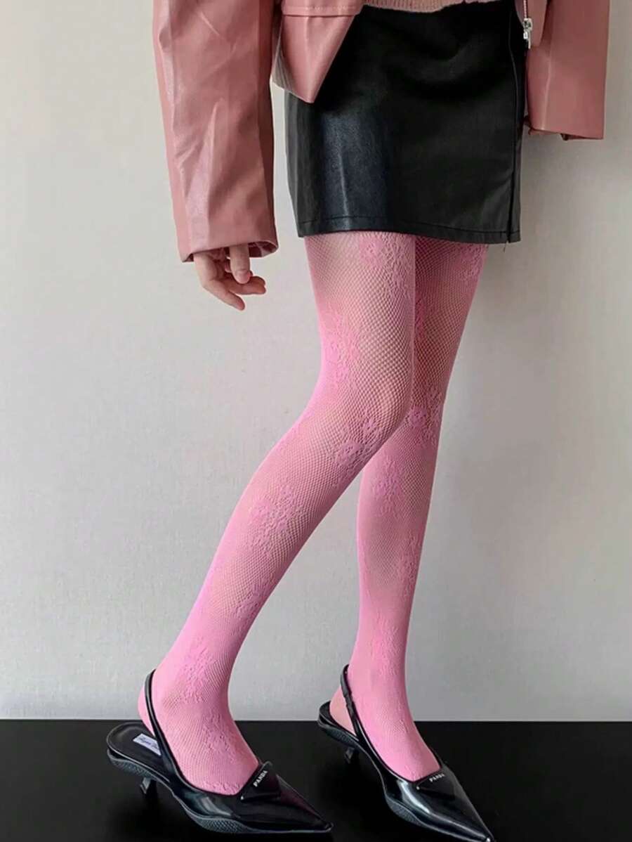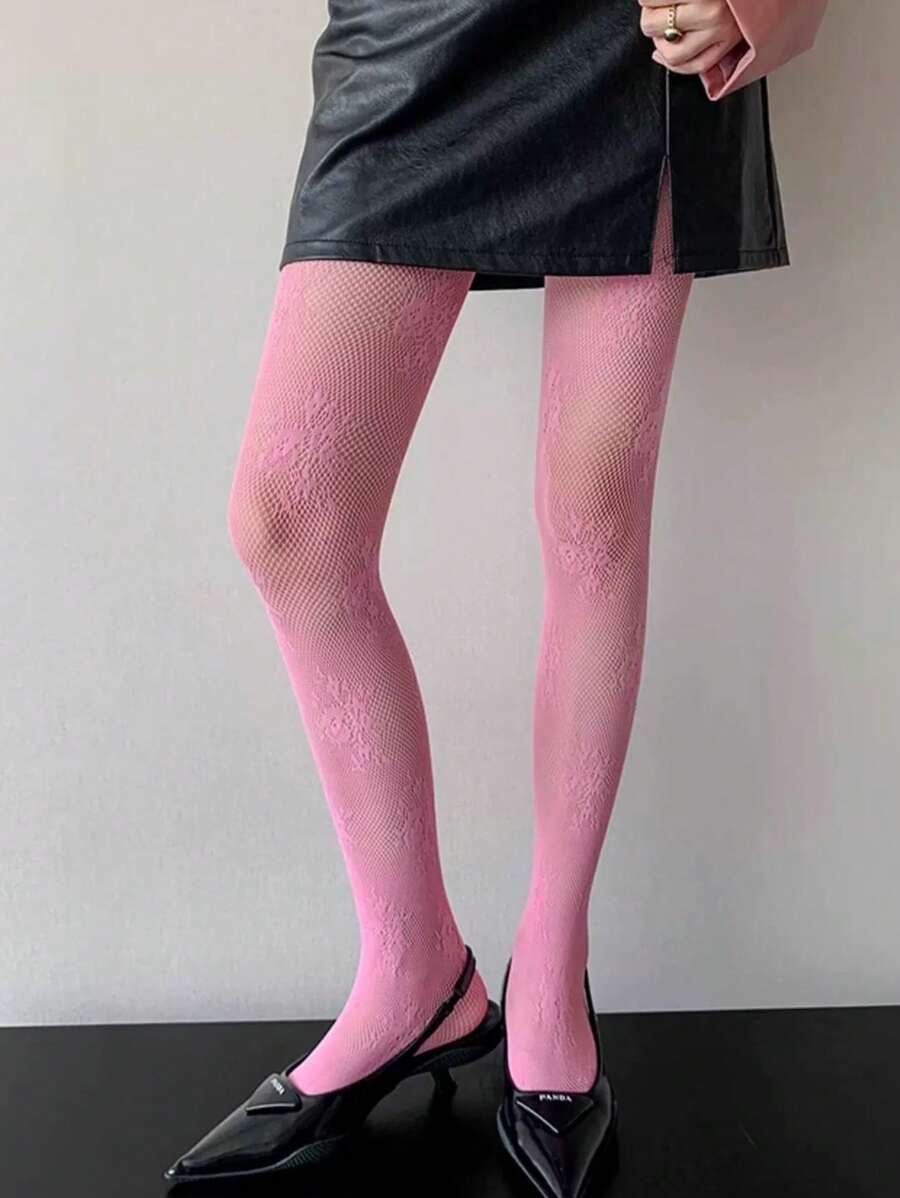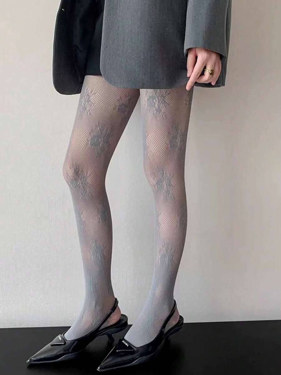 1 pieza medias de red floral solidas y sexys con encaje hueco vintage para mujer