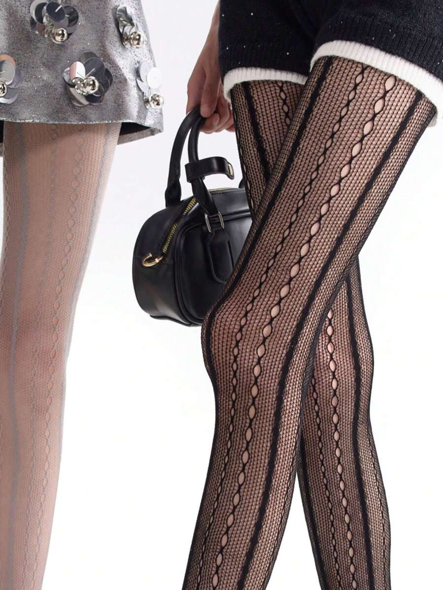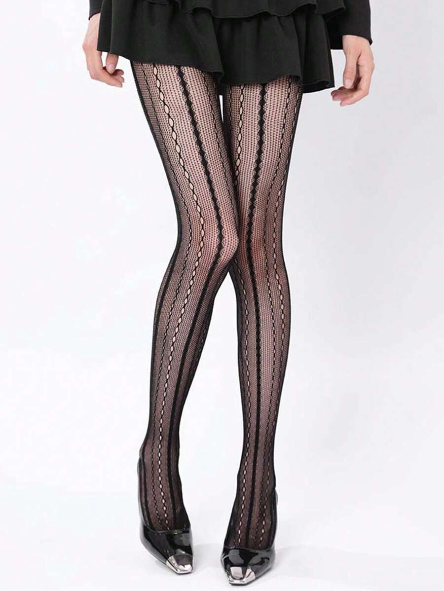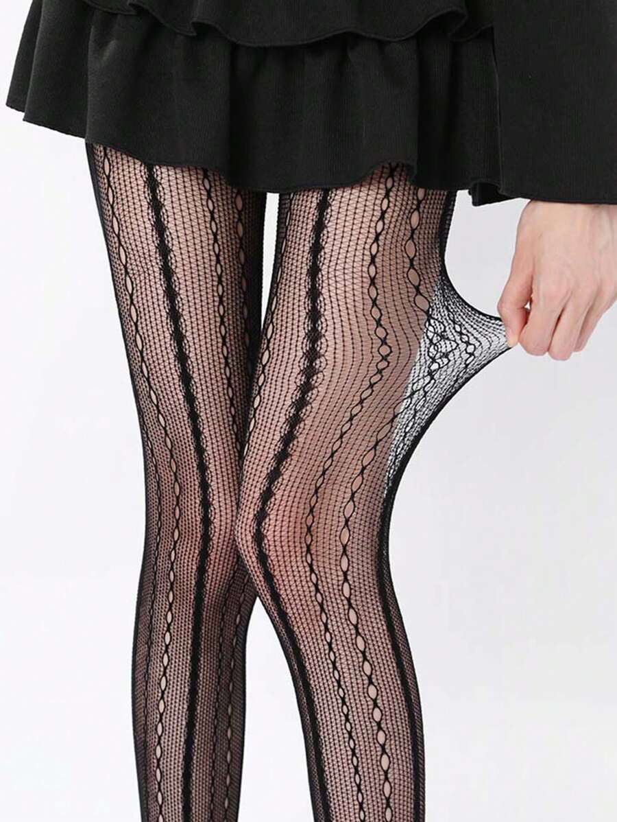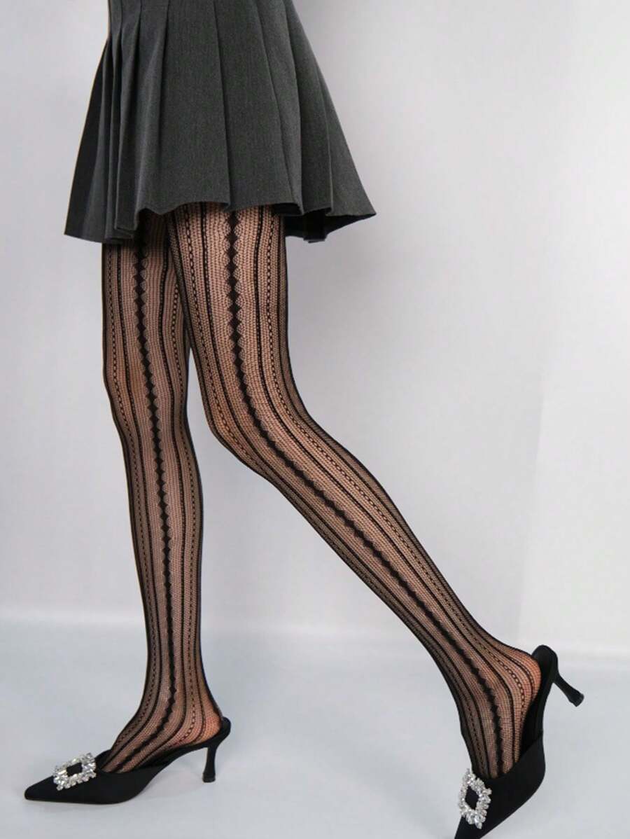 1 pieza mallas curvas de alta elasticidad con rayas verticales, leggings de red de malla irregular y hueca, medias estilo gotico para mujeres, medias negras sexys y de moda, adecuadas para el estilo y2k en todas las estaciones