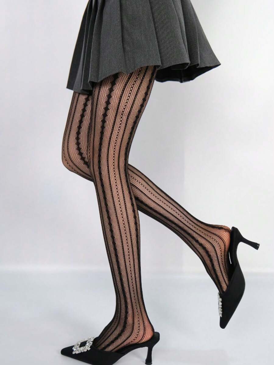 1 pieza mallas curvas de alta elasticidad con rayas verticales, leggings de red de malla irregular y hueca, medias estilo gotico para mujeres, medias negras sexys y de moda, adecuadas para el estilo y2k en todas las estaciones