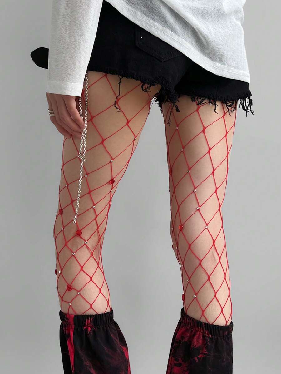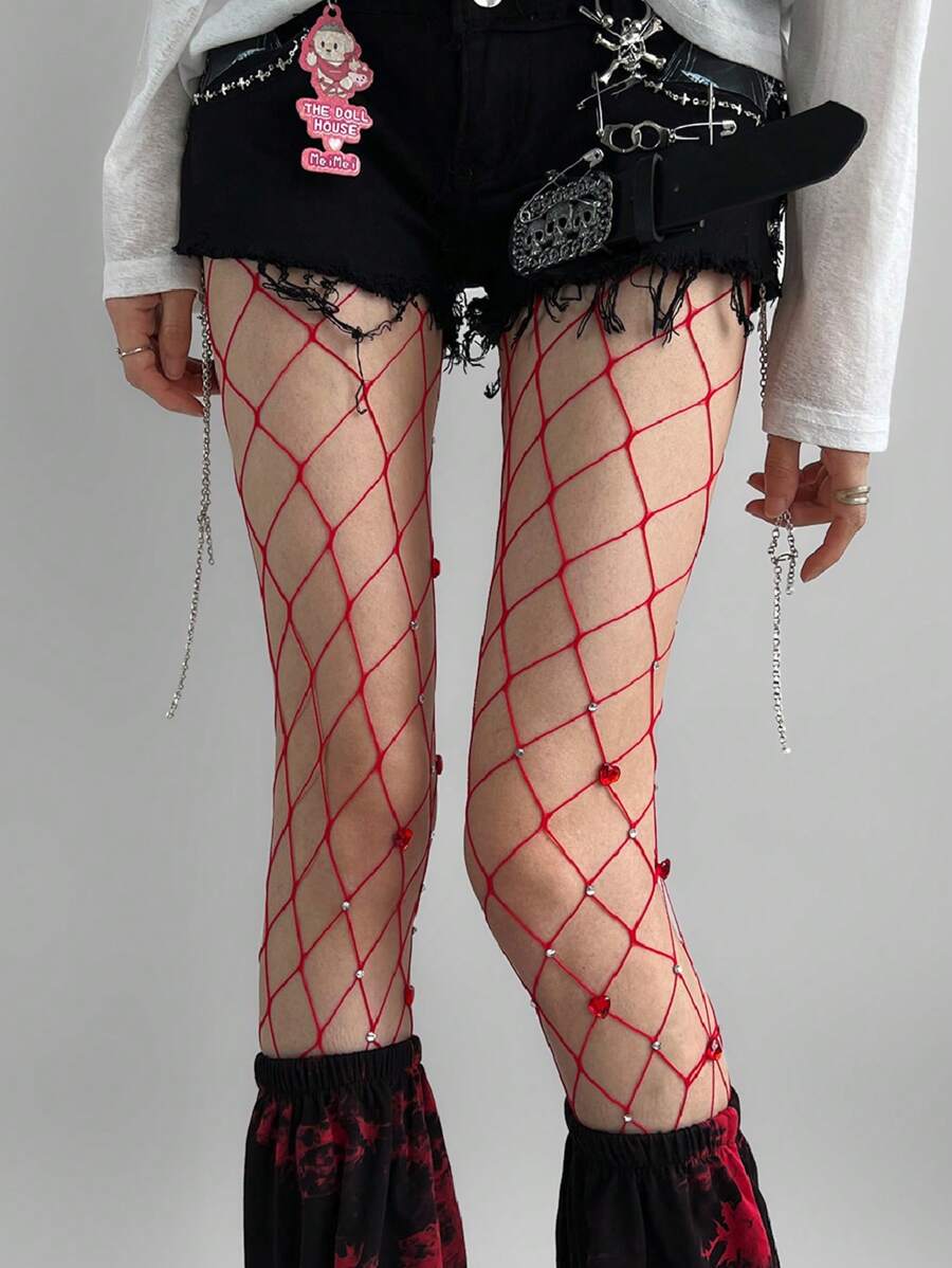 1 pieza bodystocking de mujer sexy con corazon de strass, puntos brillantes y rejilla