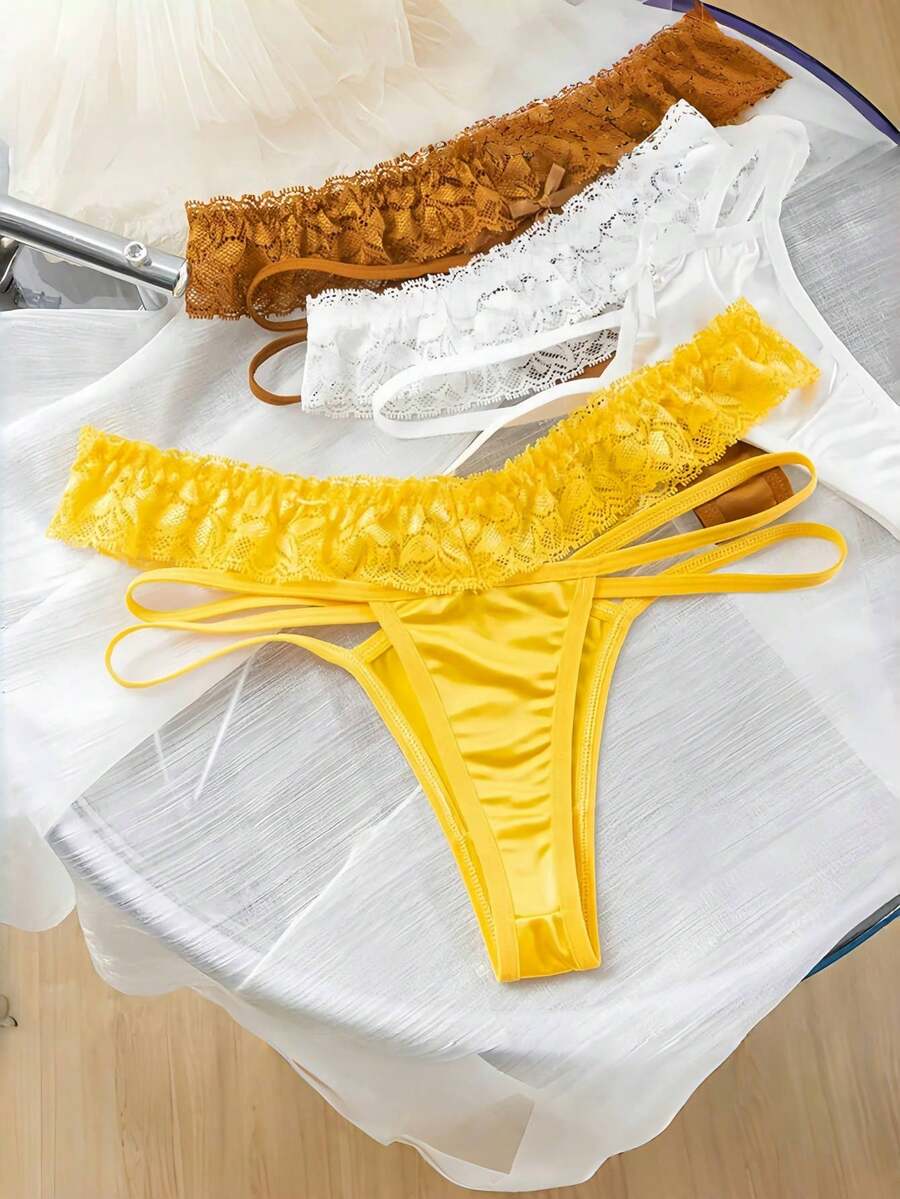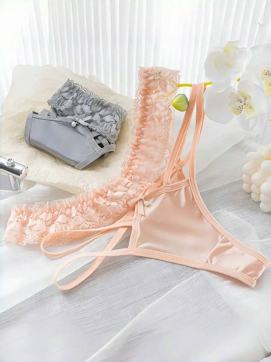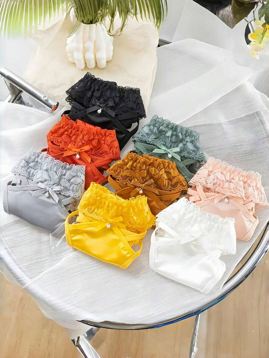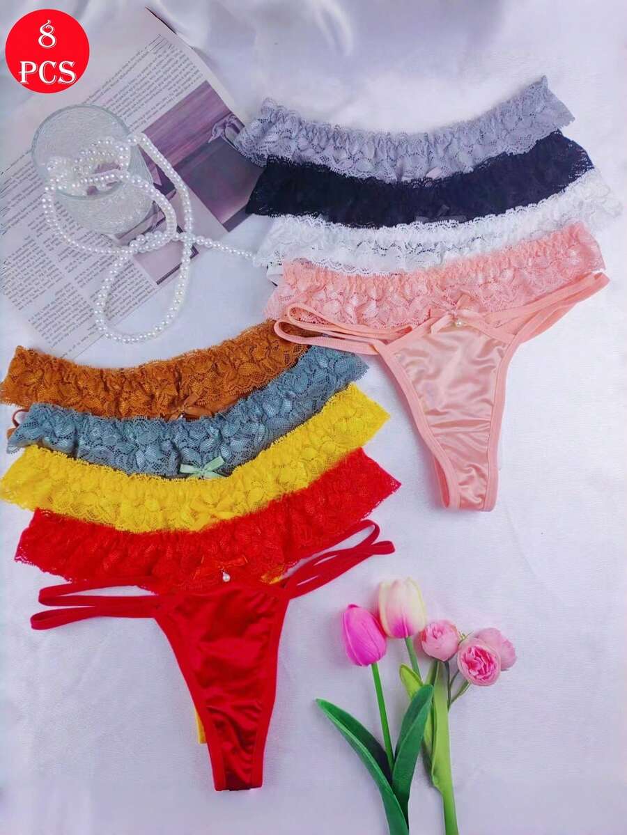 8 piezas de pantalones cortos de seguridad con mono de algodon, lenceria sexy con encaje calado y tanga con adorno de perlas para mujeres