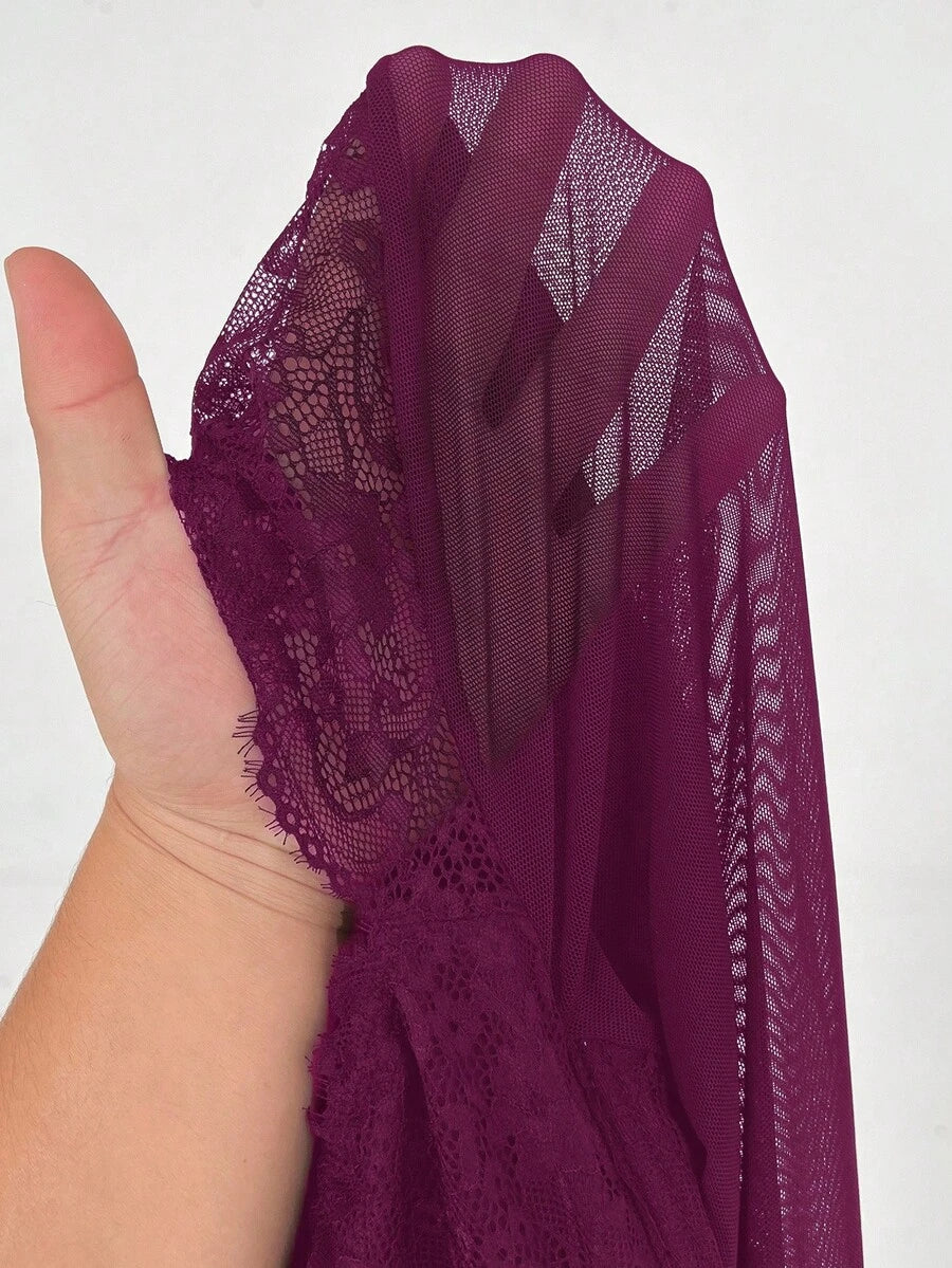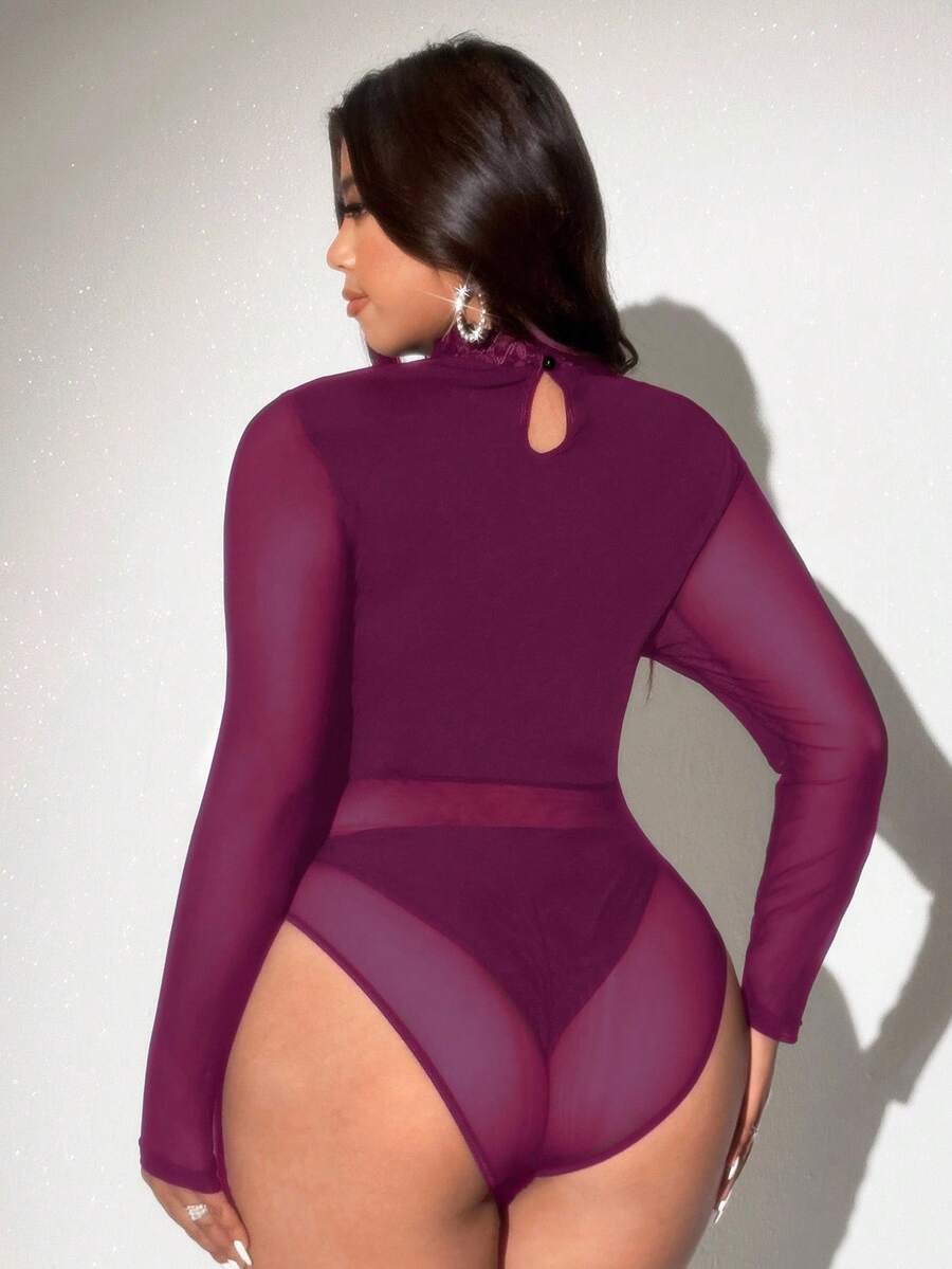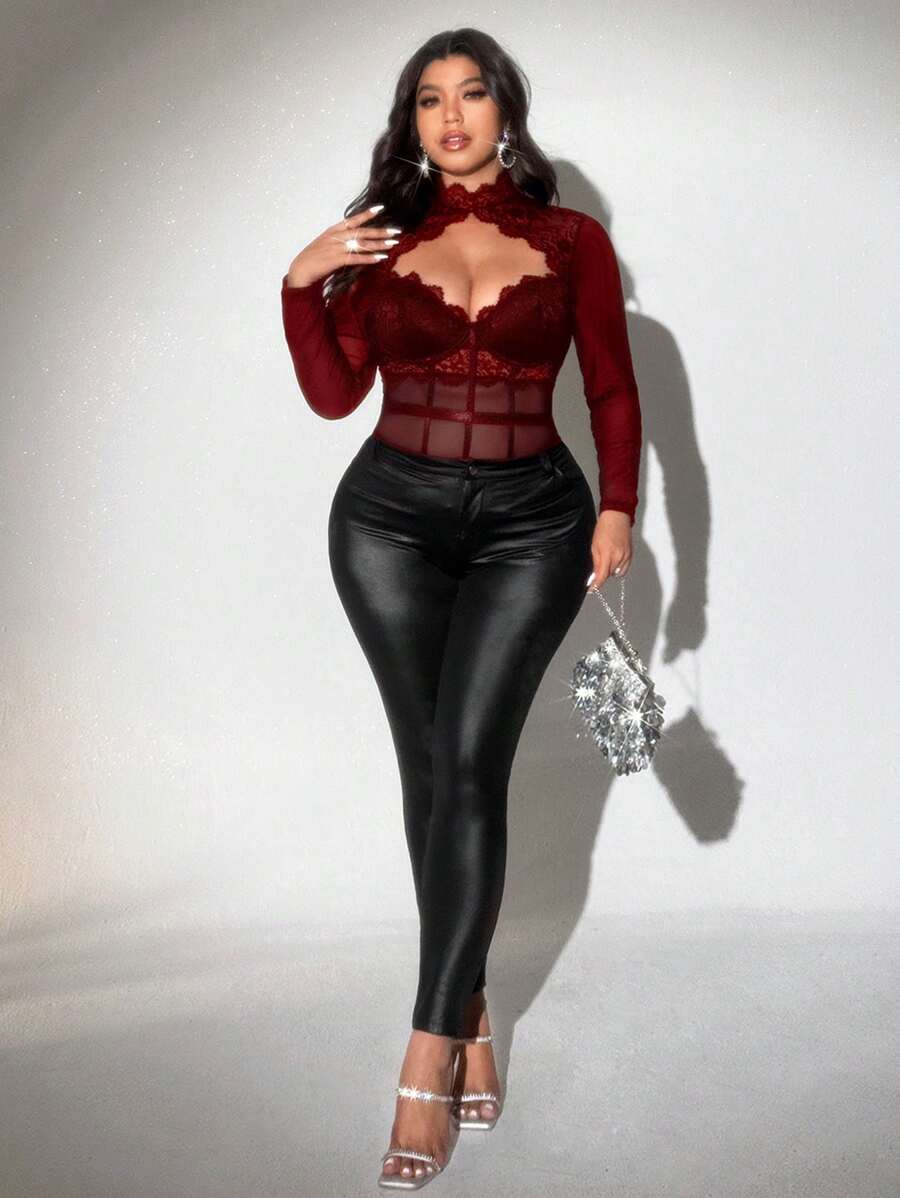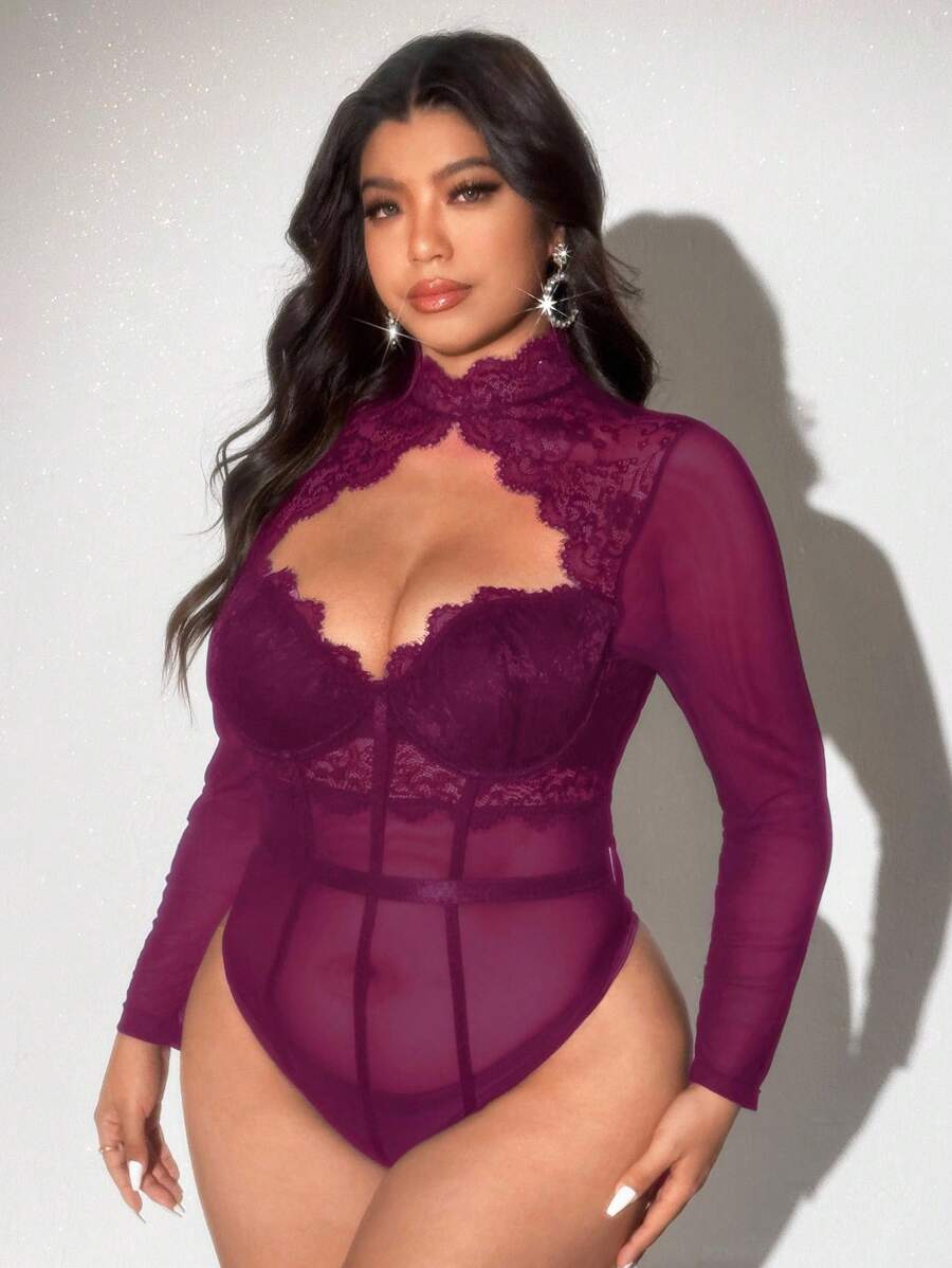 Viva relle body de encaje calado y malla con contraste para mujer talla grande