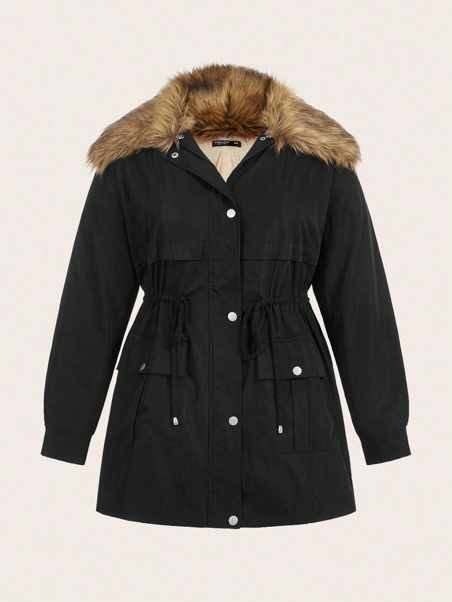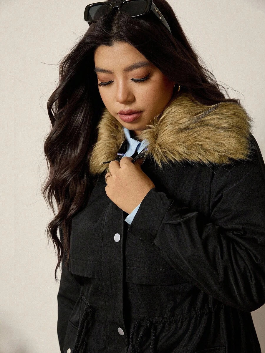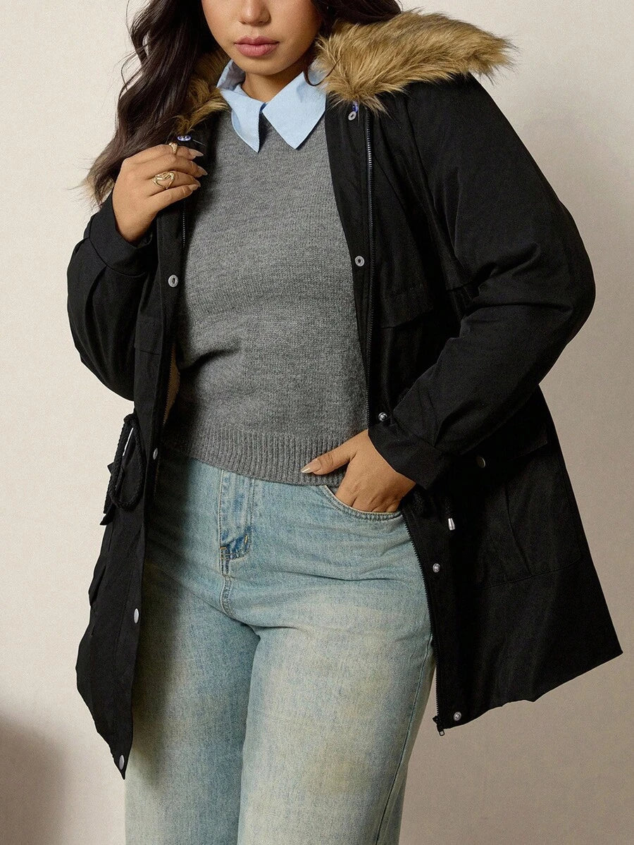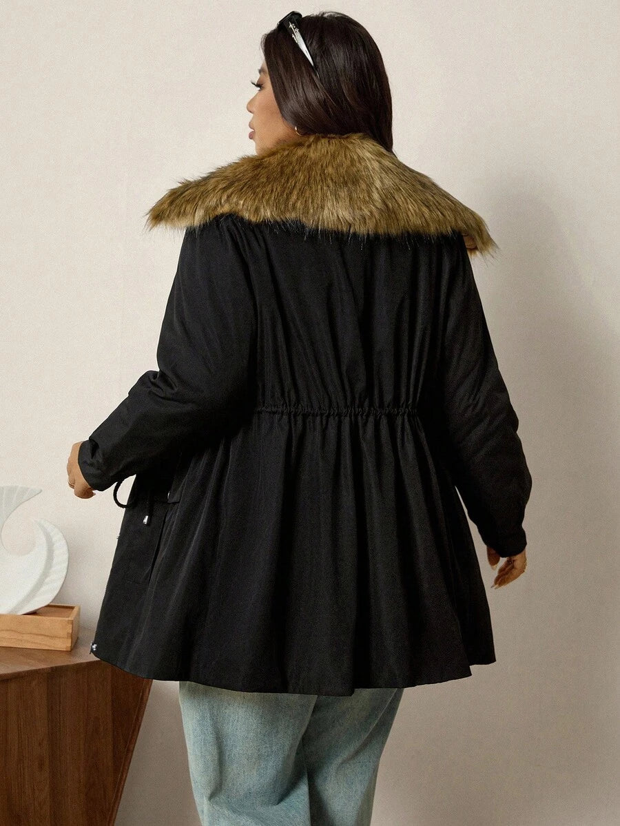 Zelara chaqueta con cuello de piel, cintura cenida y acolchada para tallas grandes