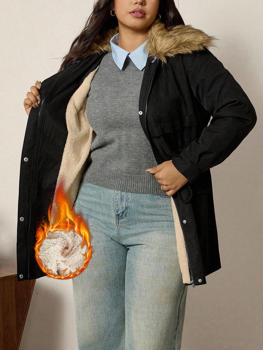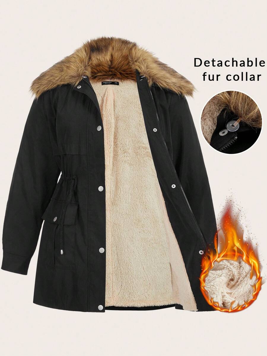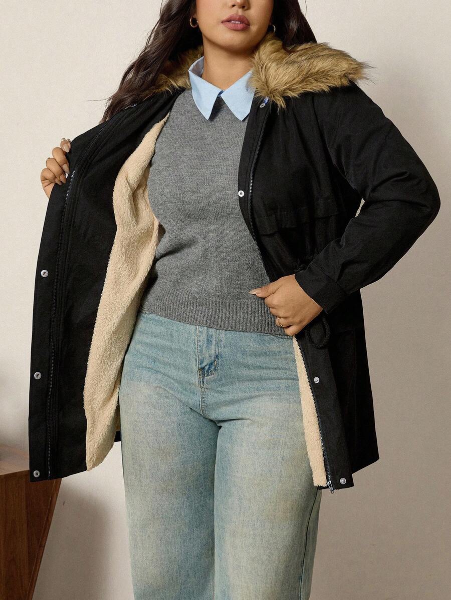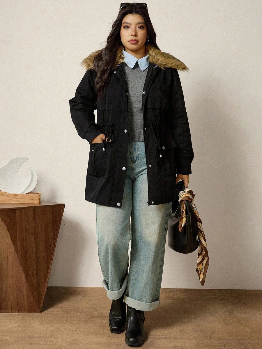 Zelara chaqueta con cuello de piel, cintura cenida y acolchada para tallas grandes