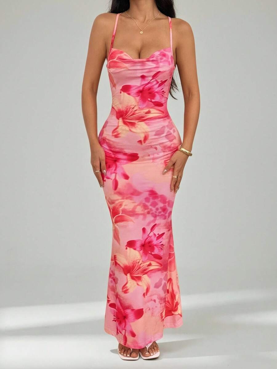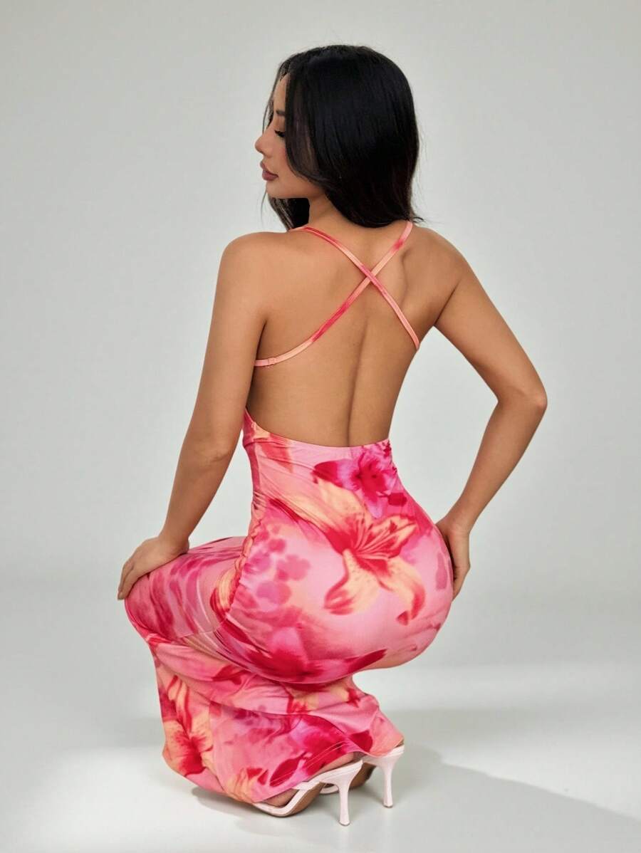 Vestido floral con escote pronunciado y espalda descubierta para vacaciones