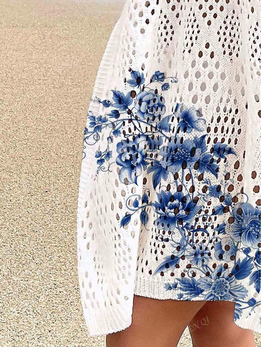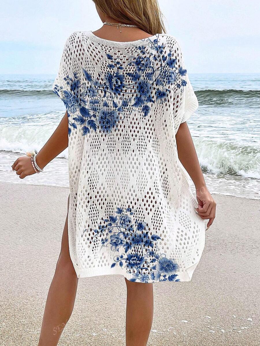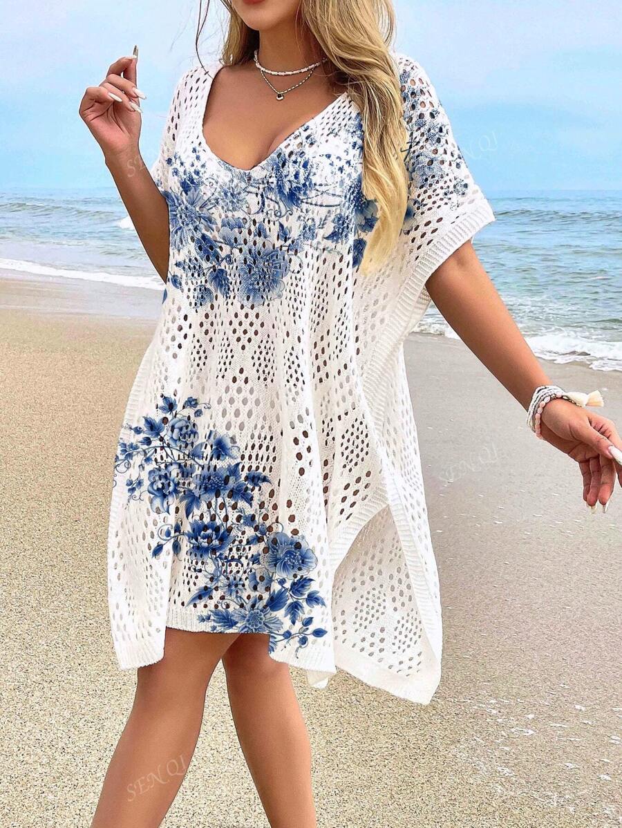 Vestido de cubrir con estampado floral y calado (bikini no incluido)
