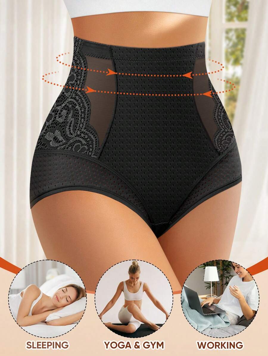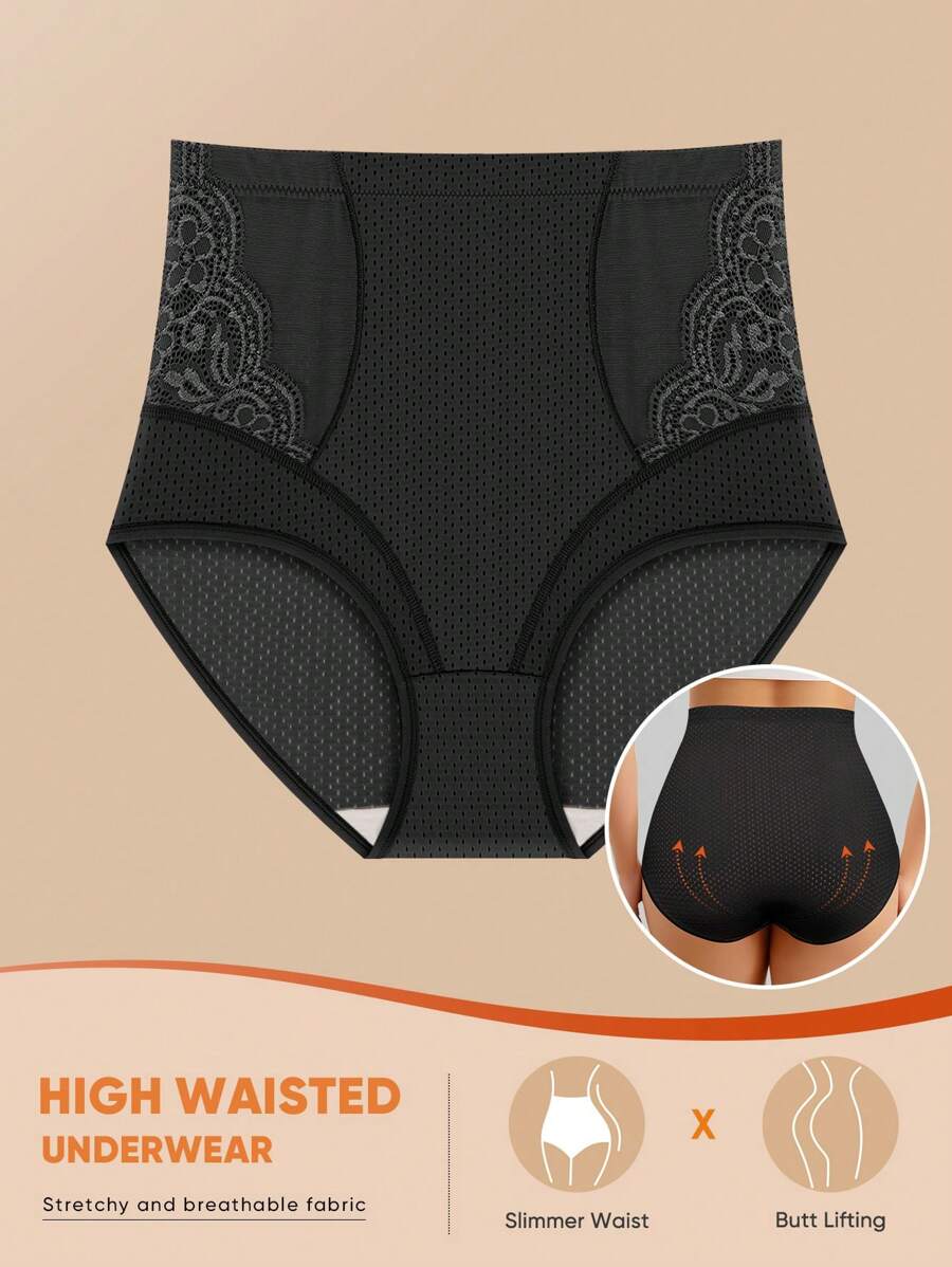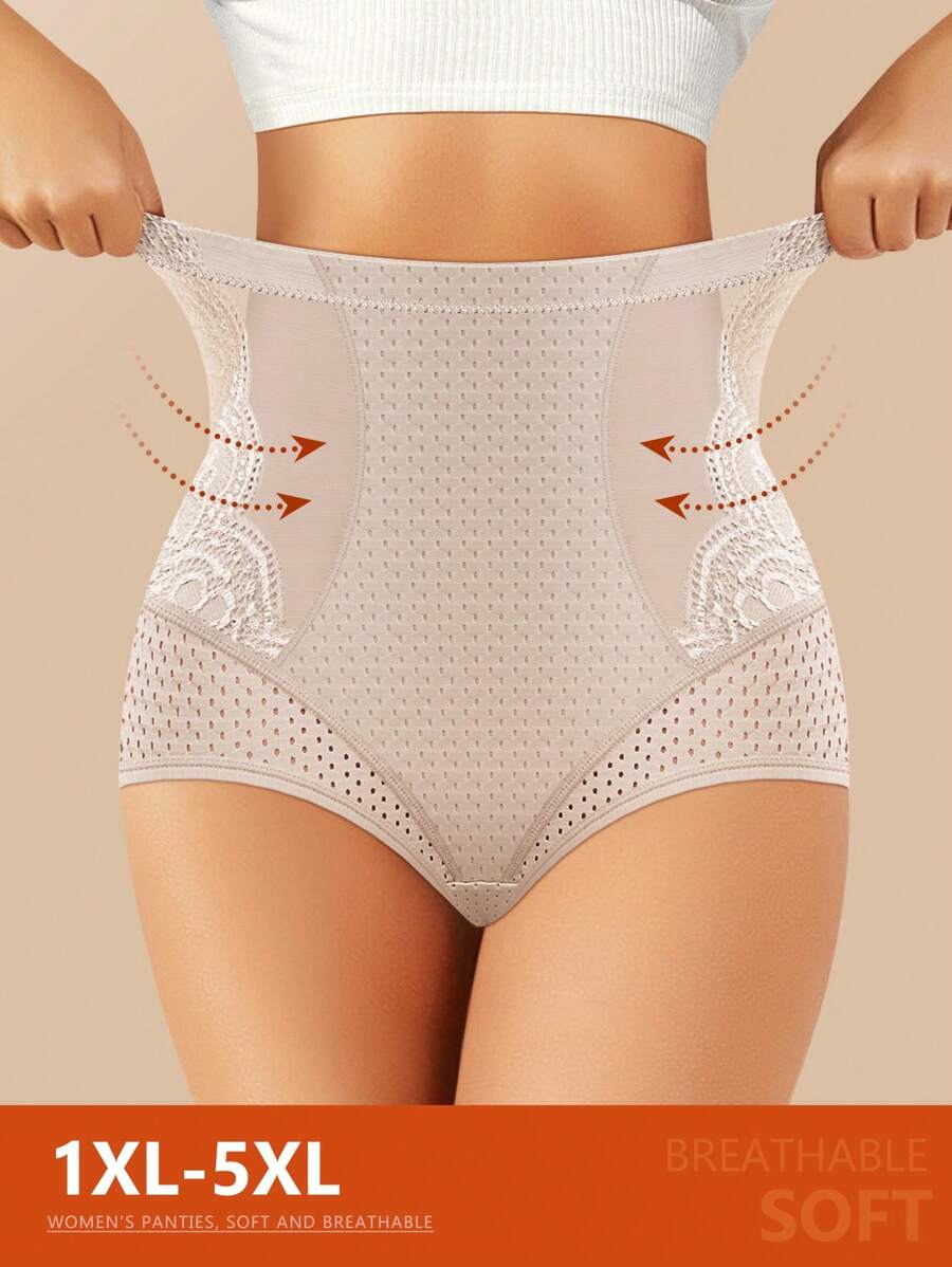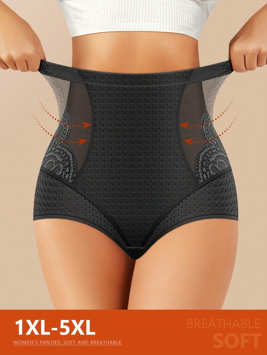 Meiyating 1 pieza bragas de talla grande con control de abdomen, con detalles de malla y encaje, ropa interior tipo triangulo, con orificios transpirables para el verano