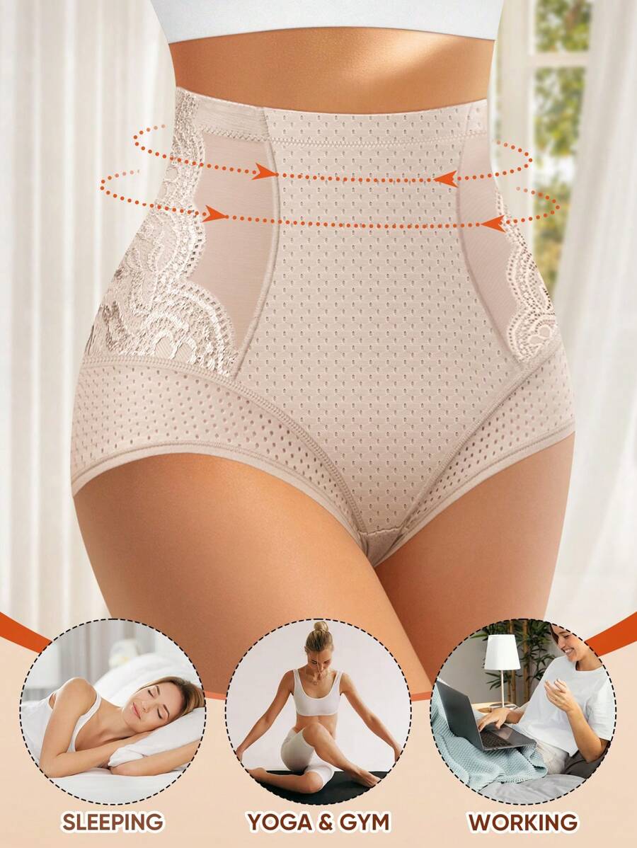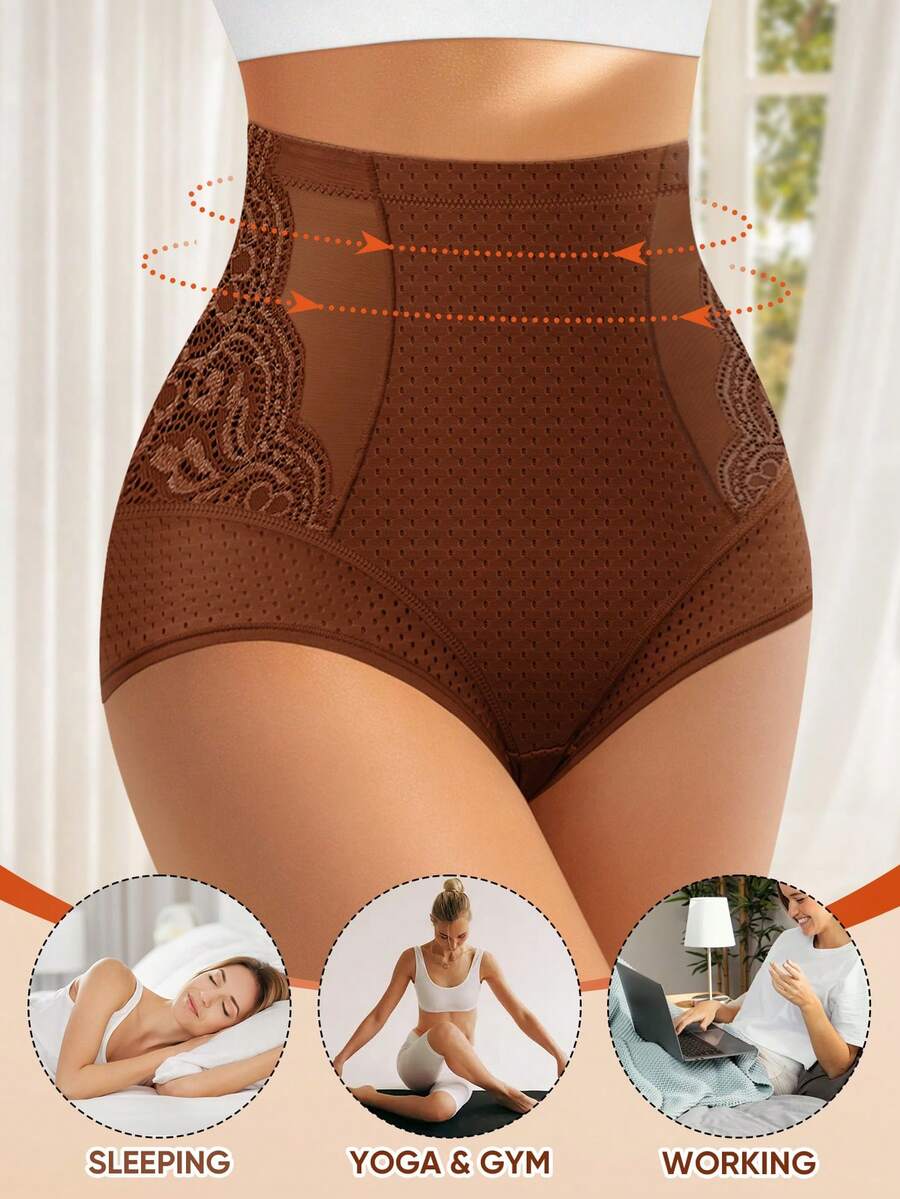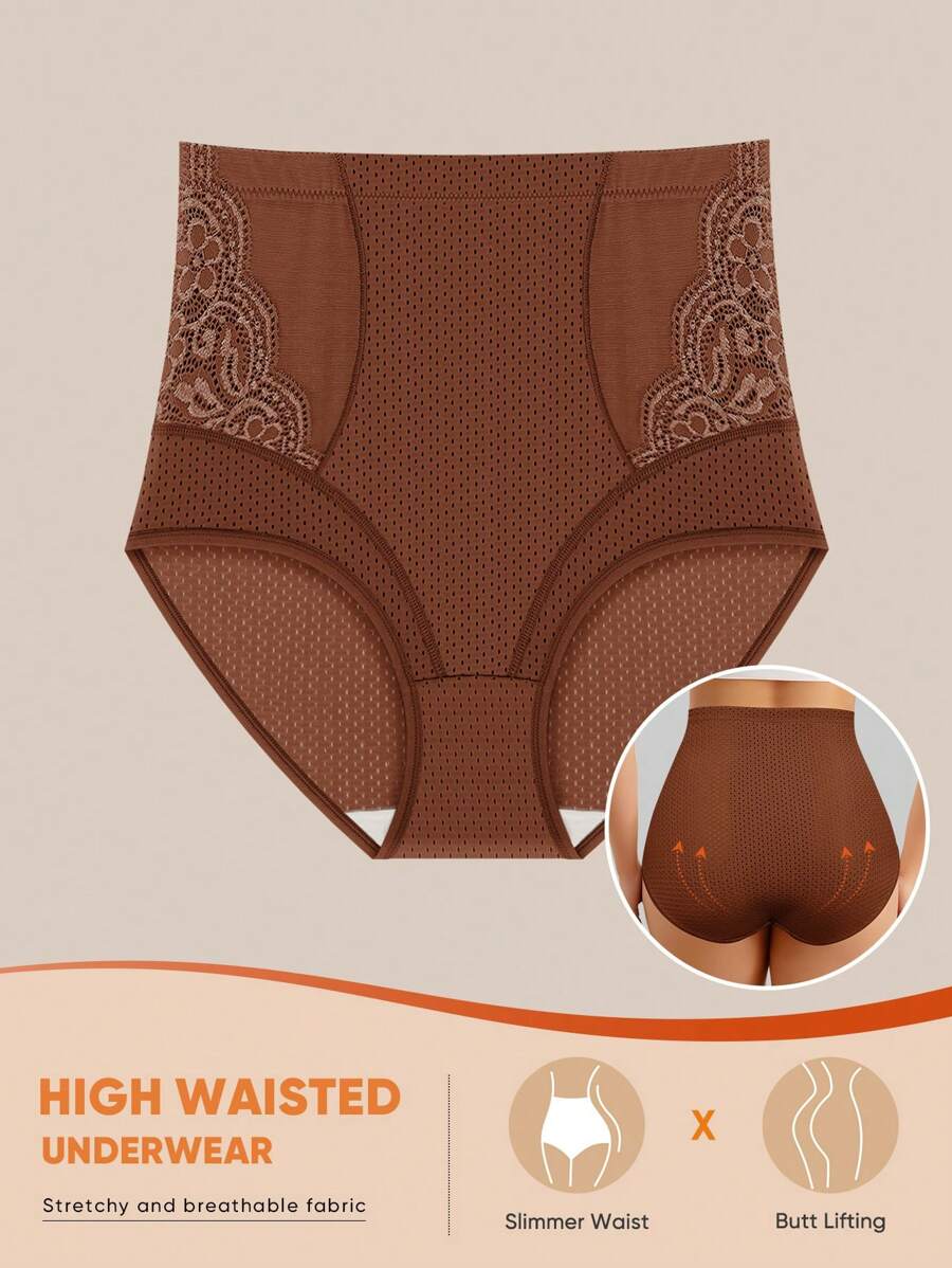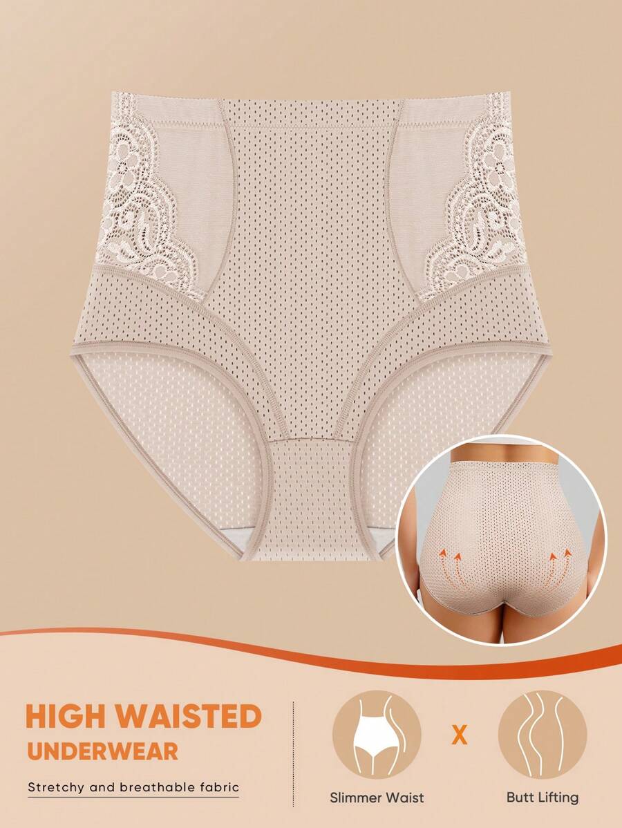 Meiyating 1 pieza bragas de talla grande con control de abdomen, con detalles de malla y encaje, ropa interior tipo triangulo, con orificios transpirables para el verano
