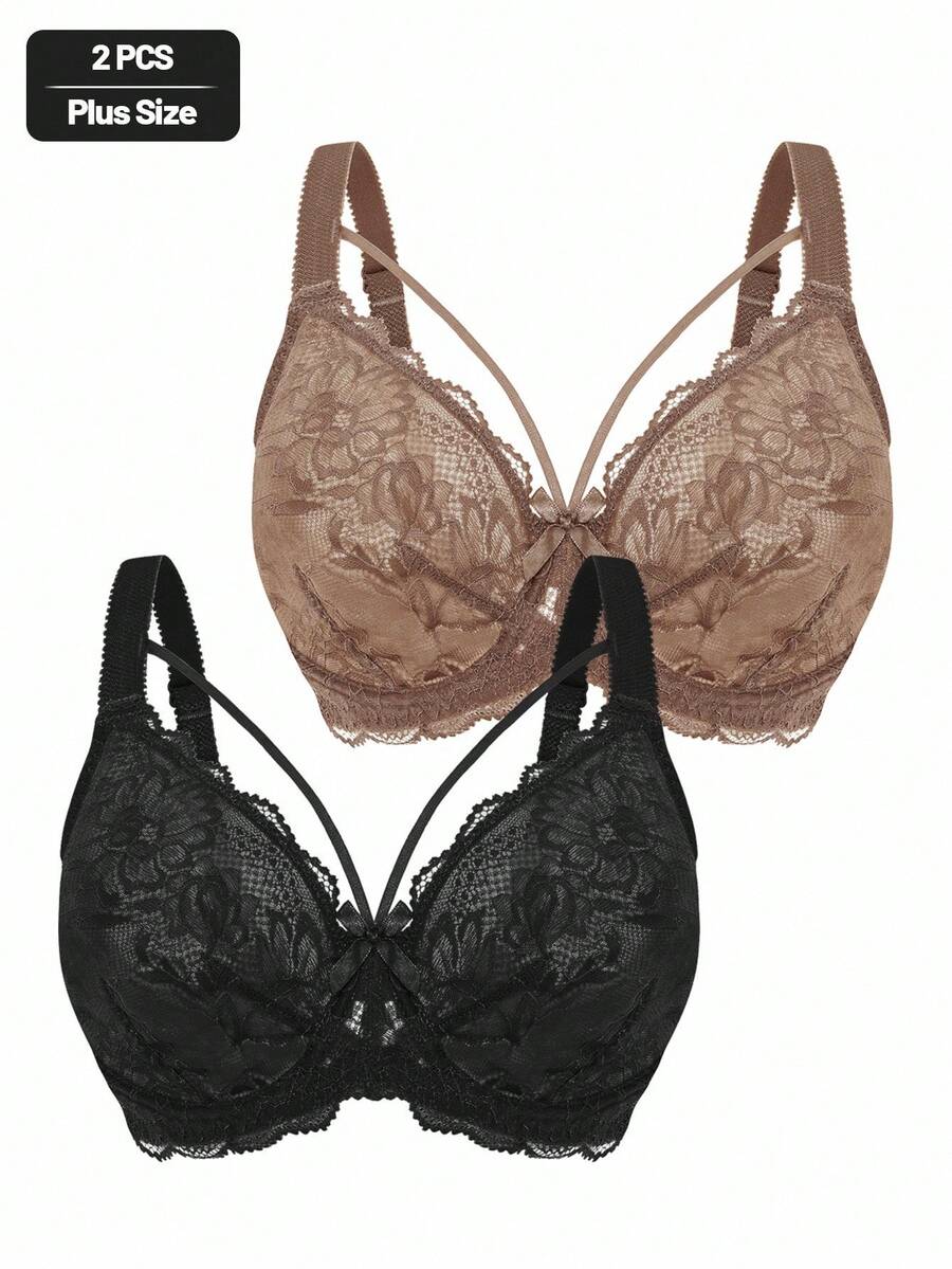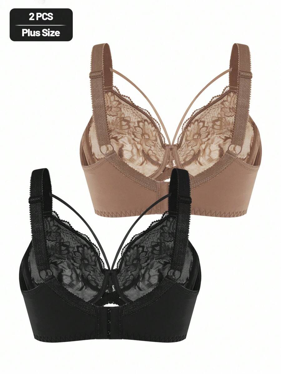 2 piezas lenceria de talla grande para mujer con brasier con aros, cobertura total, elegante y sexy con encaje floral y acabado de puntilla para pechos grandes