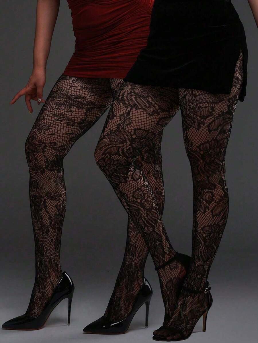 1 pieza leggings de malla de flores de gran tamano con gran elasticidad, medias opacas de estilo gotico para disfraz de halloween, medias de malla negra de moda para mujer, estilo y2k