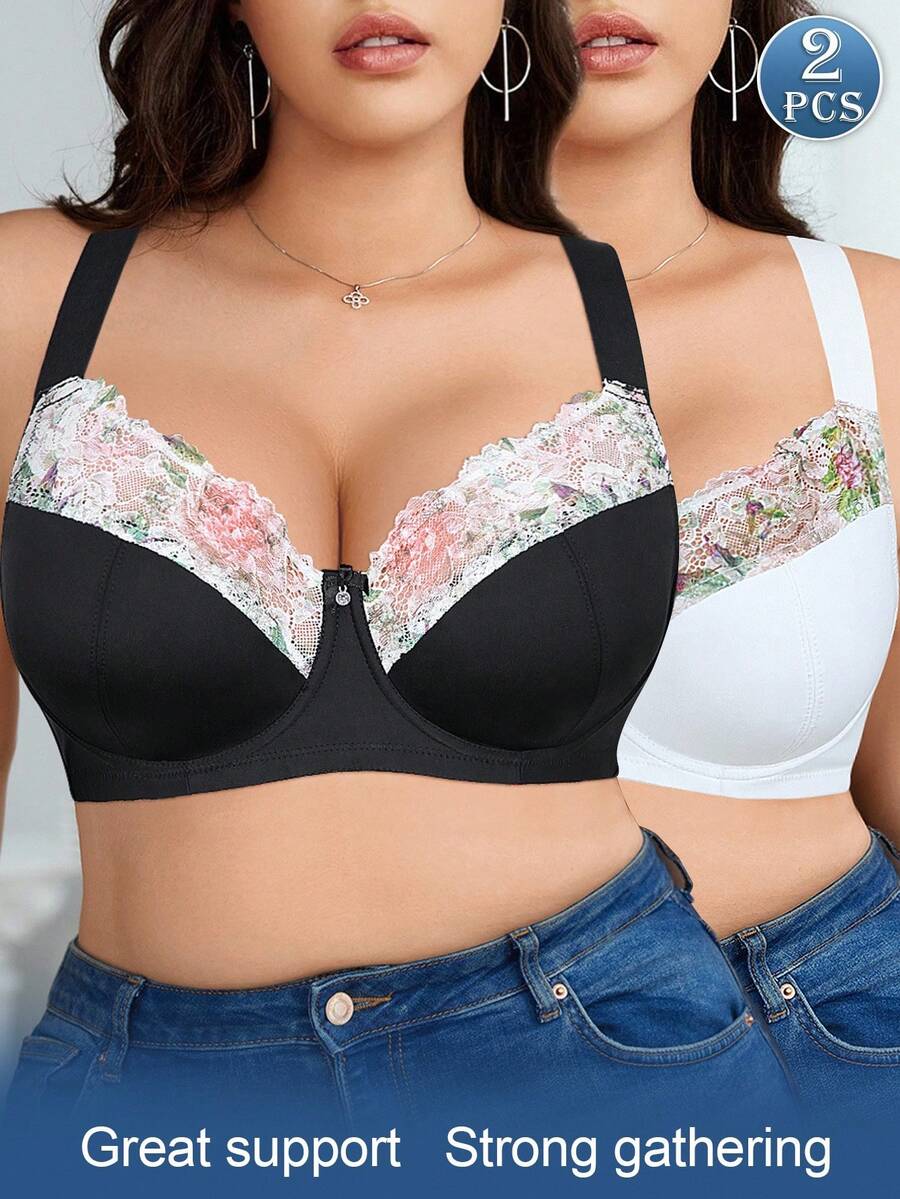 2 piezas brasieres con aros de encaje y parches, talla grande, comodos y de copa fina