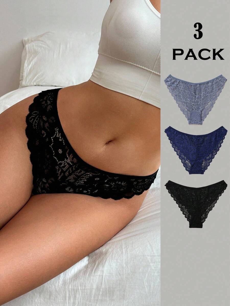 Conjunto de tres piezas de bragas para mujer, con un diseno de encaje sexy, perfectas para fiestas de otono y halloween. son unas bragas triangulares sencillas pero romanticas y elegantes.