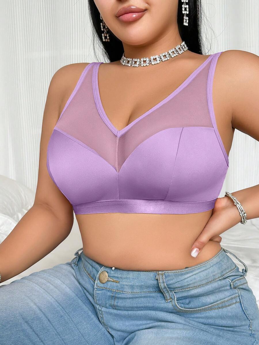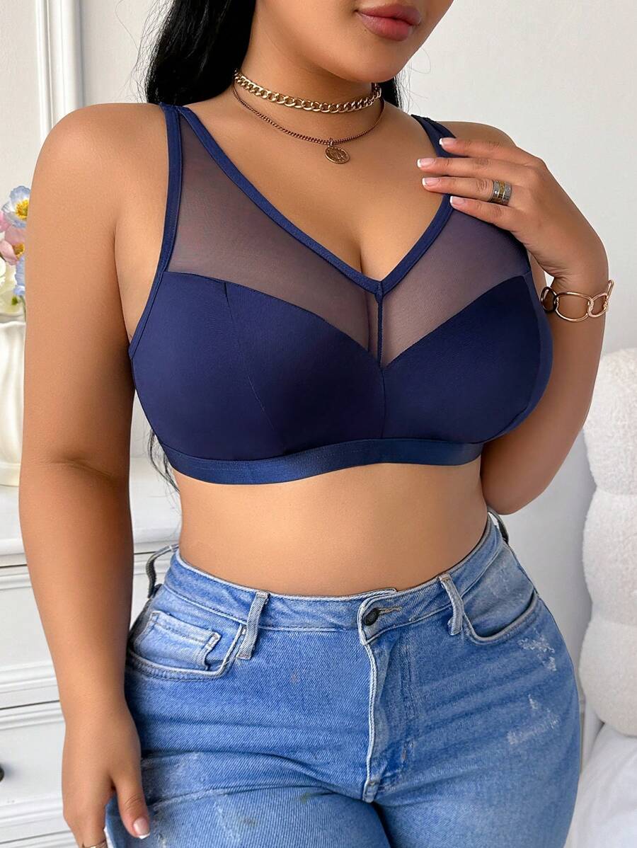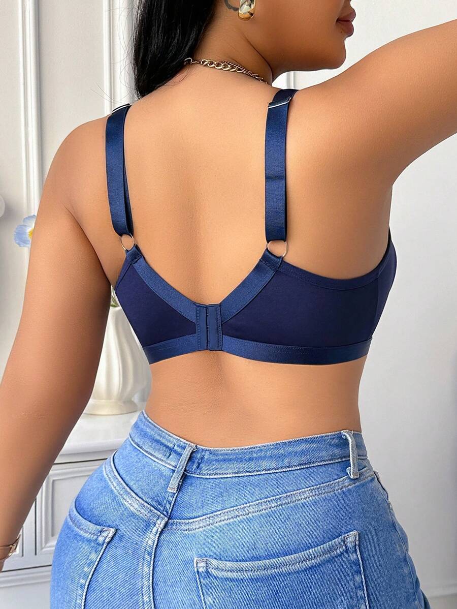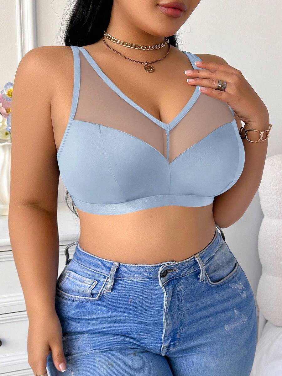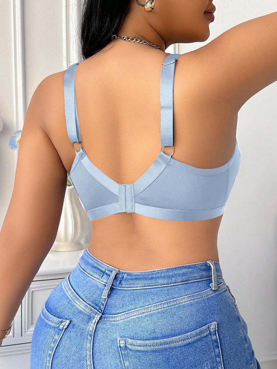 Bralette sin acolchado y sin alambres para tallas grandes, estilo minimalista, color azul claro