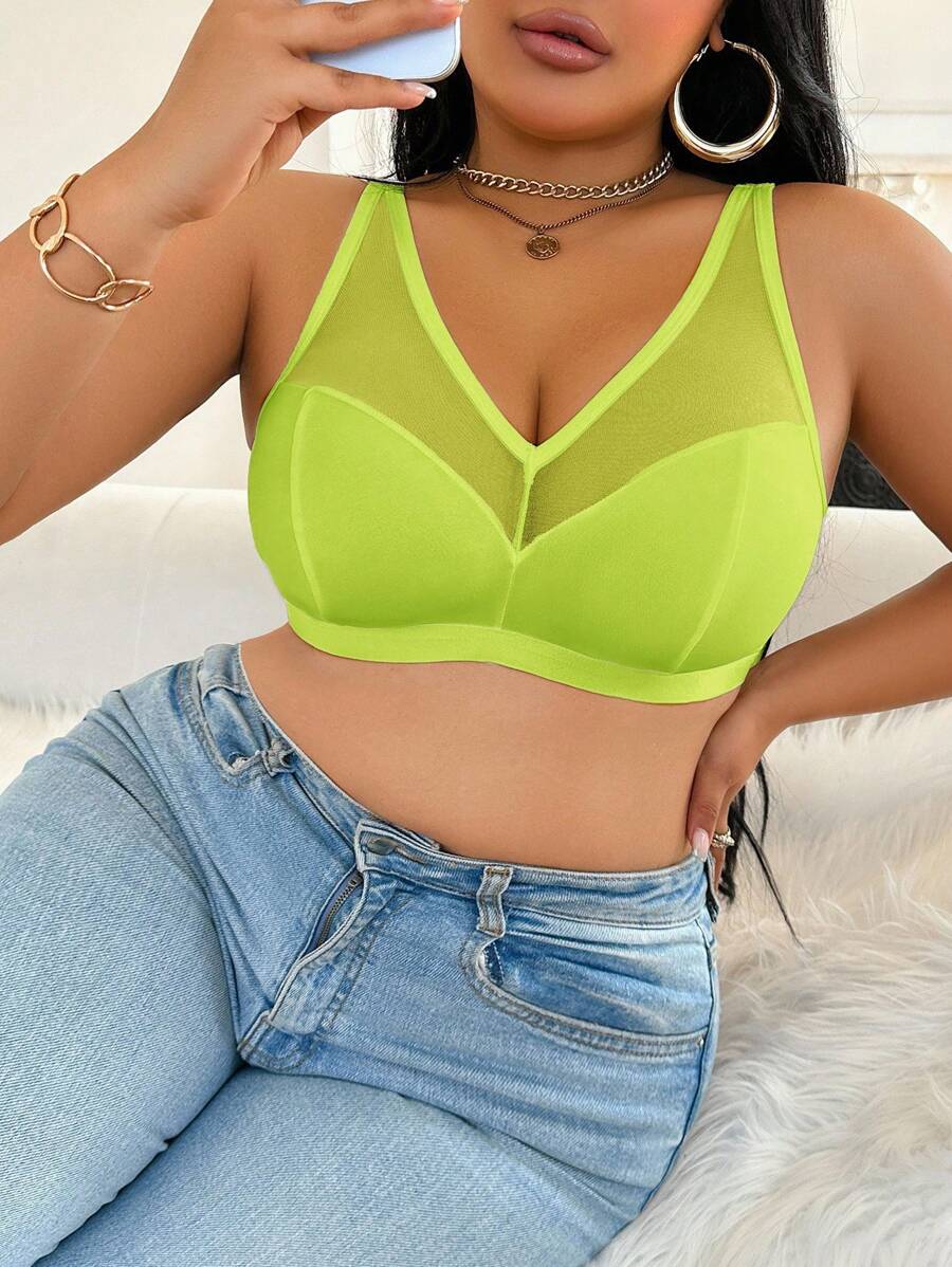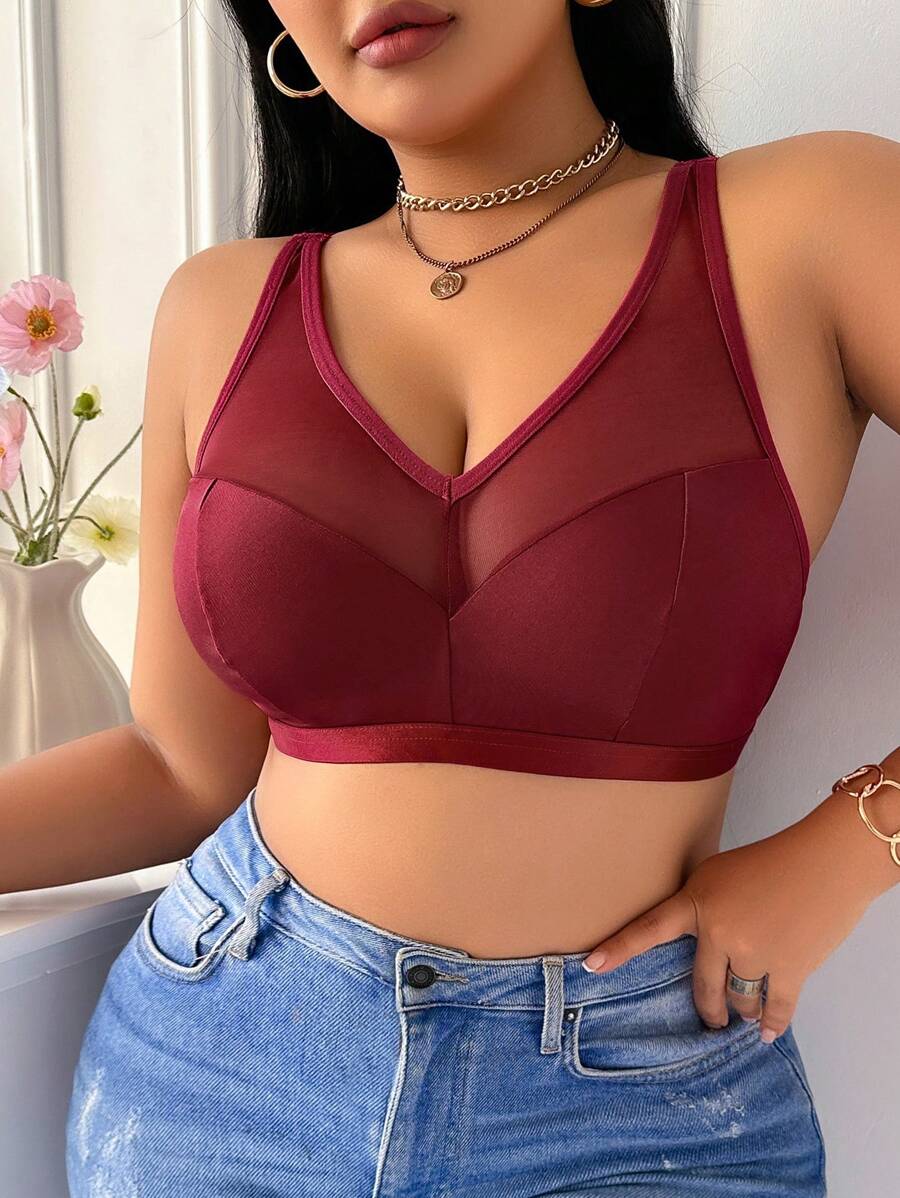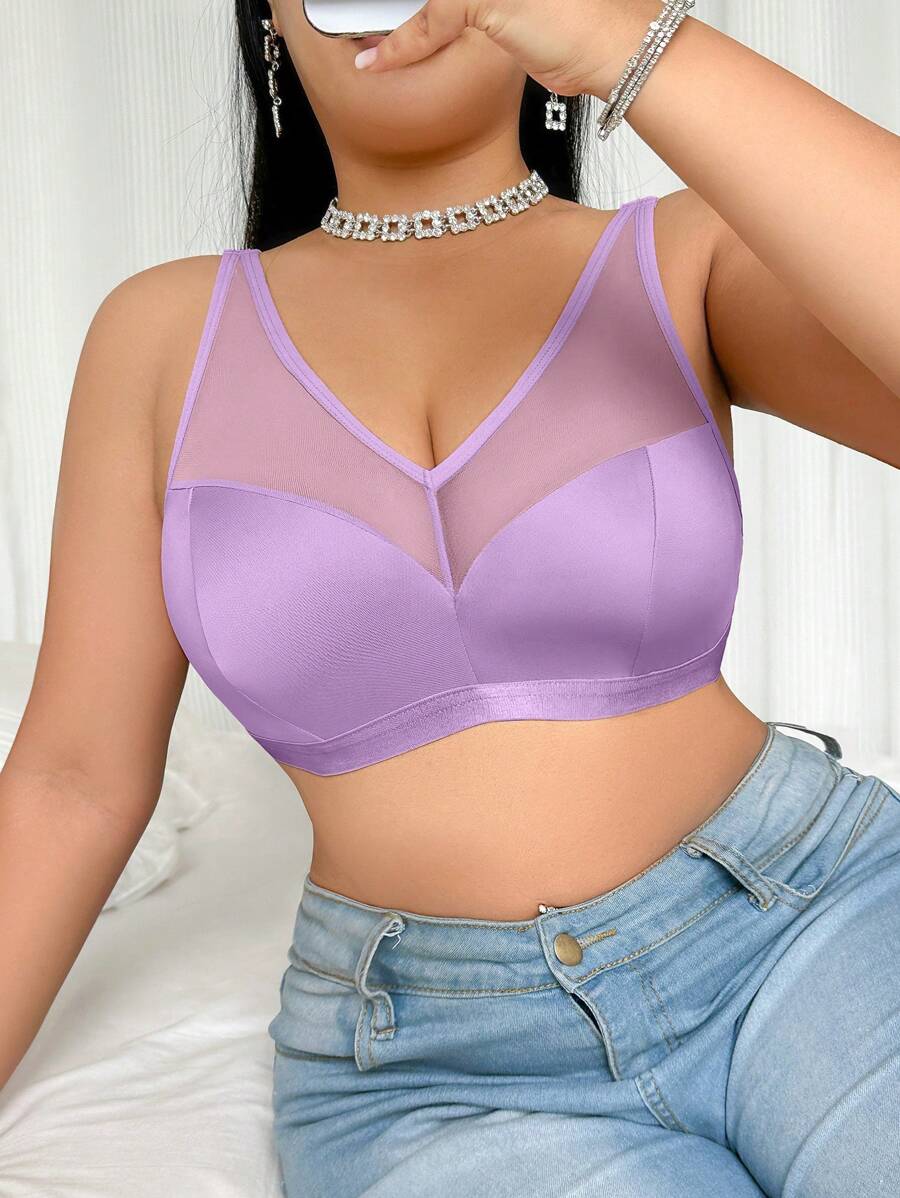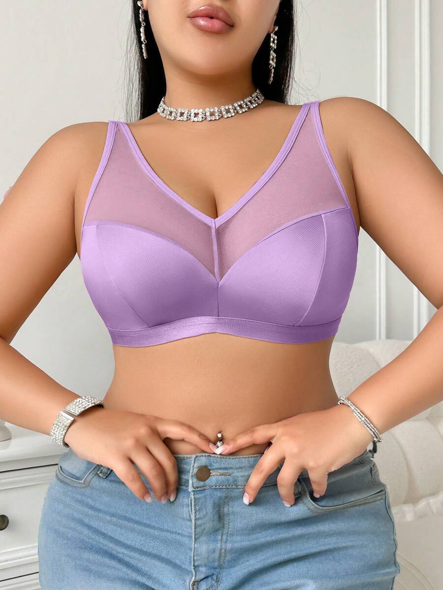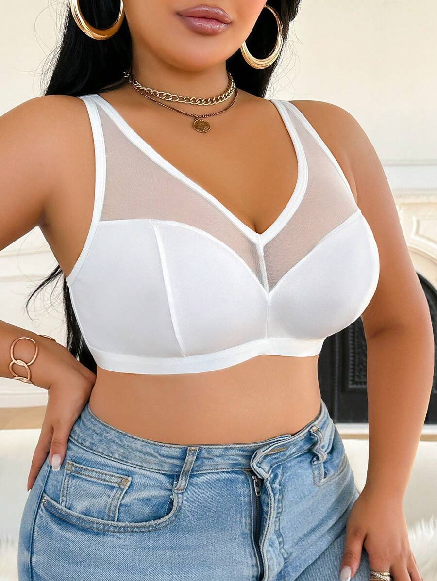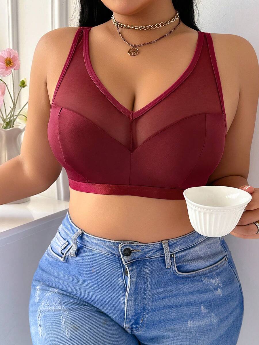 Bralette sin acolchado y sin alambres para tallas grandes, estilo minimalista, color azul claro