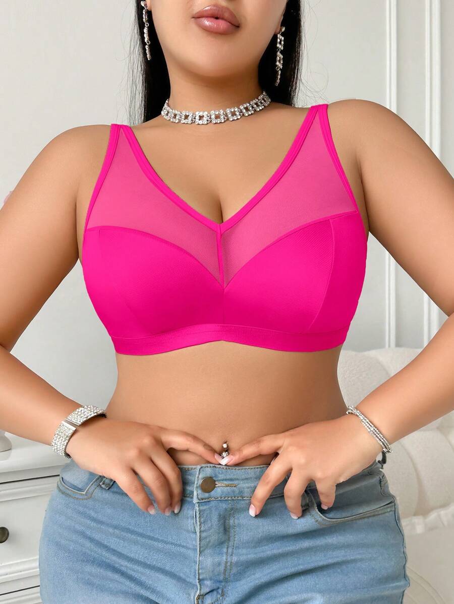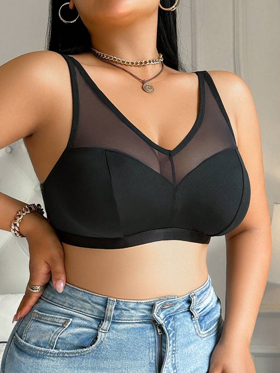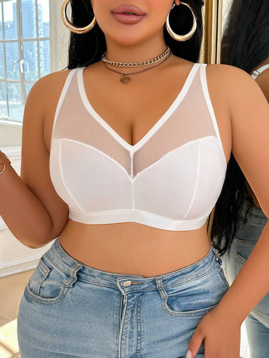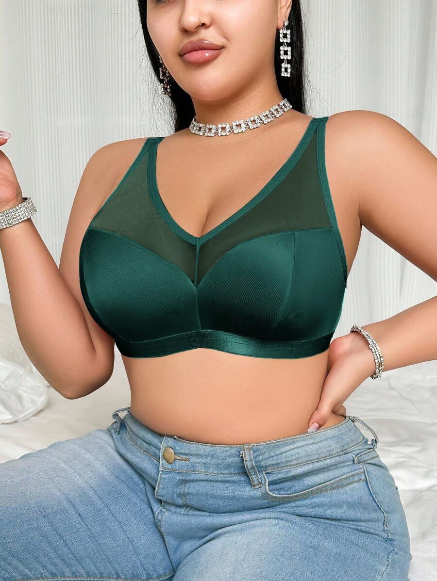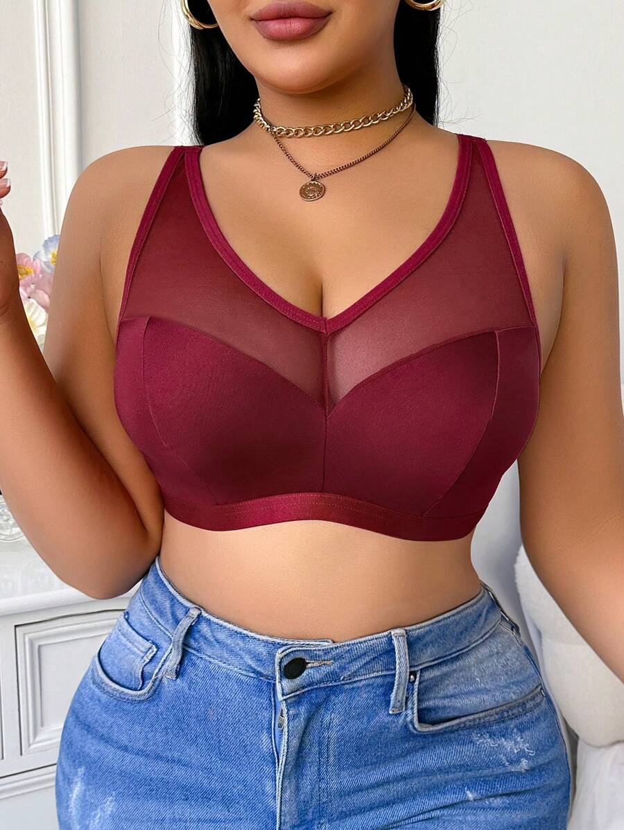 Bralette sin acolchado y sin alambres para tallas grandes, estilo minimalista, color azul claro