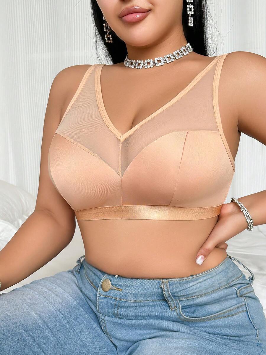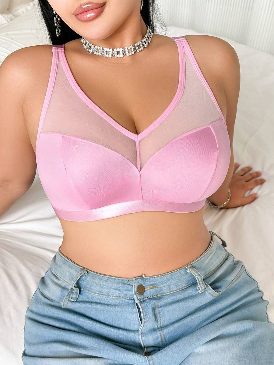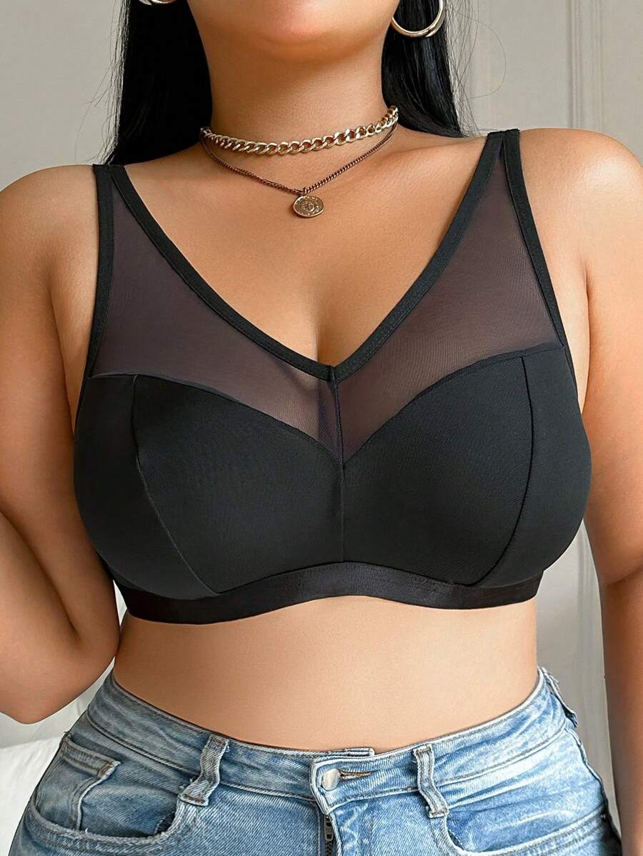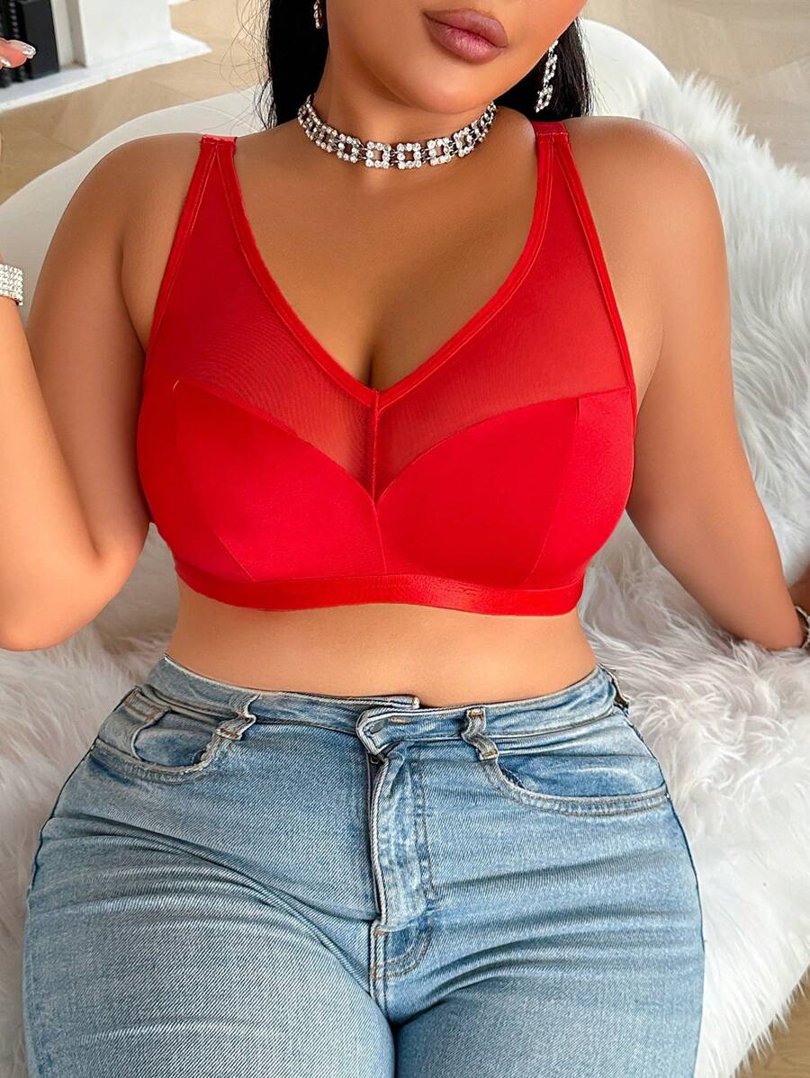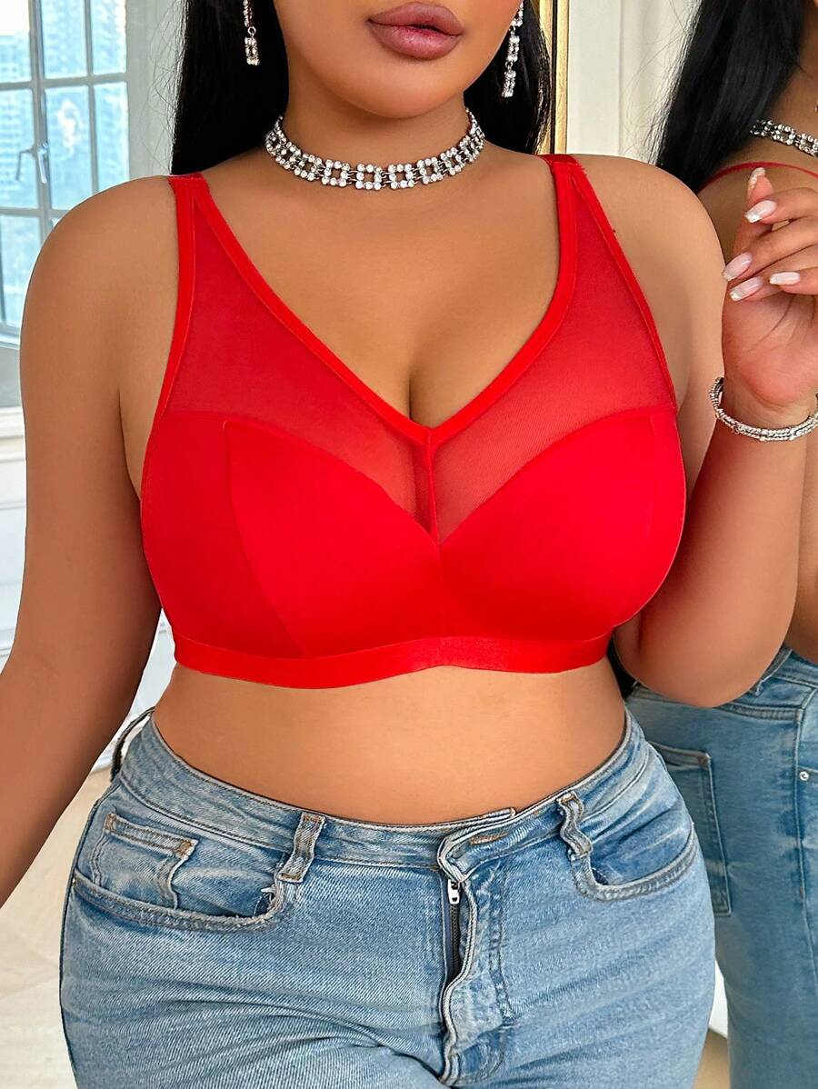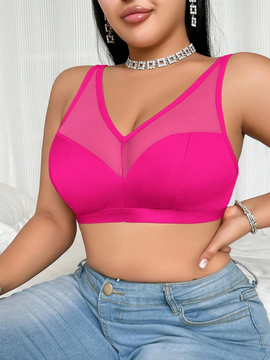 Bralette sin acolchado y sin alambres para tallas grandes, estilo minimalista, color azul claro