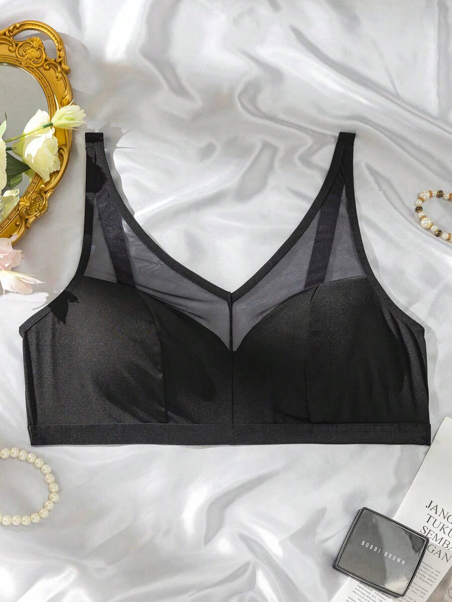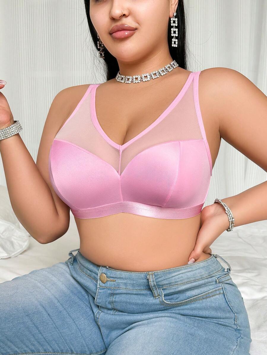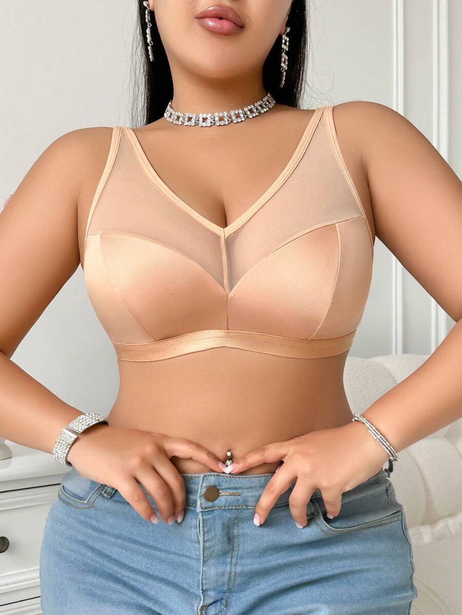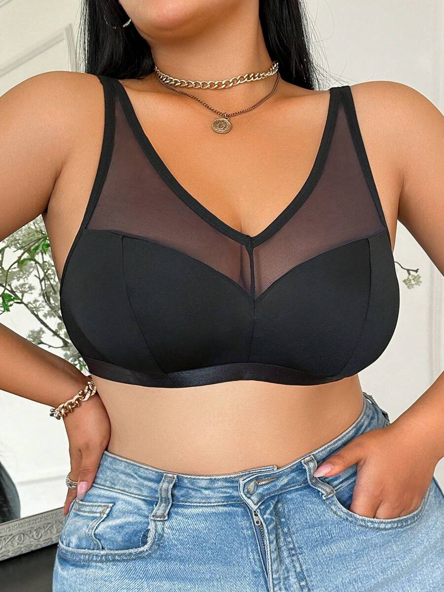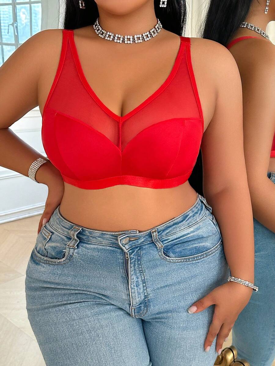Bralette sin acolchado y sin alambres para tallas grandes, estilo minimalista, color azul claro