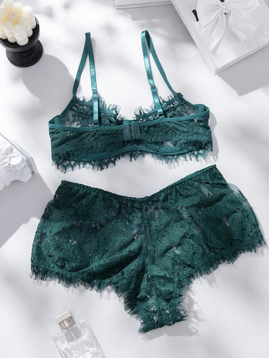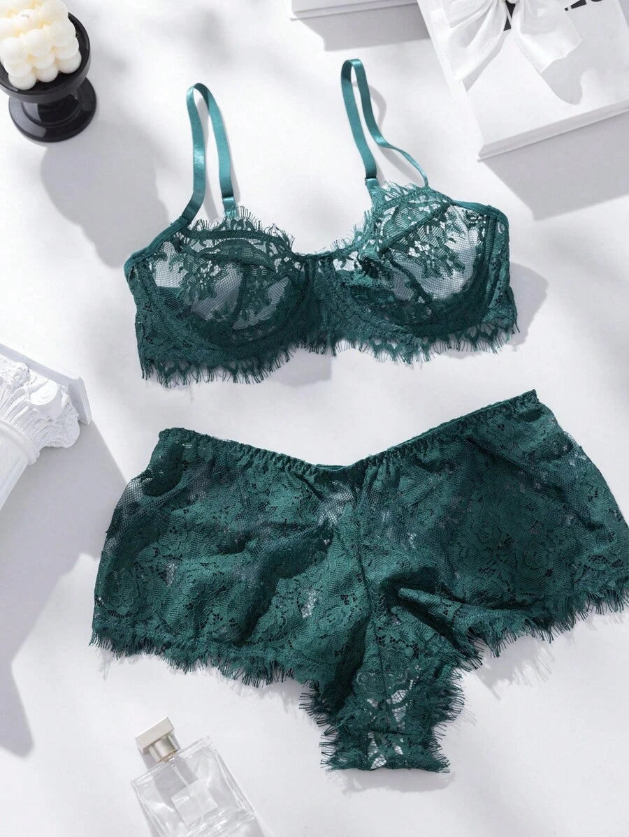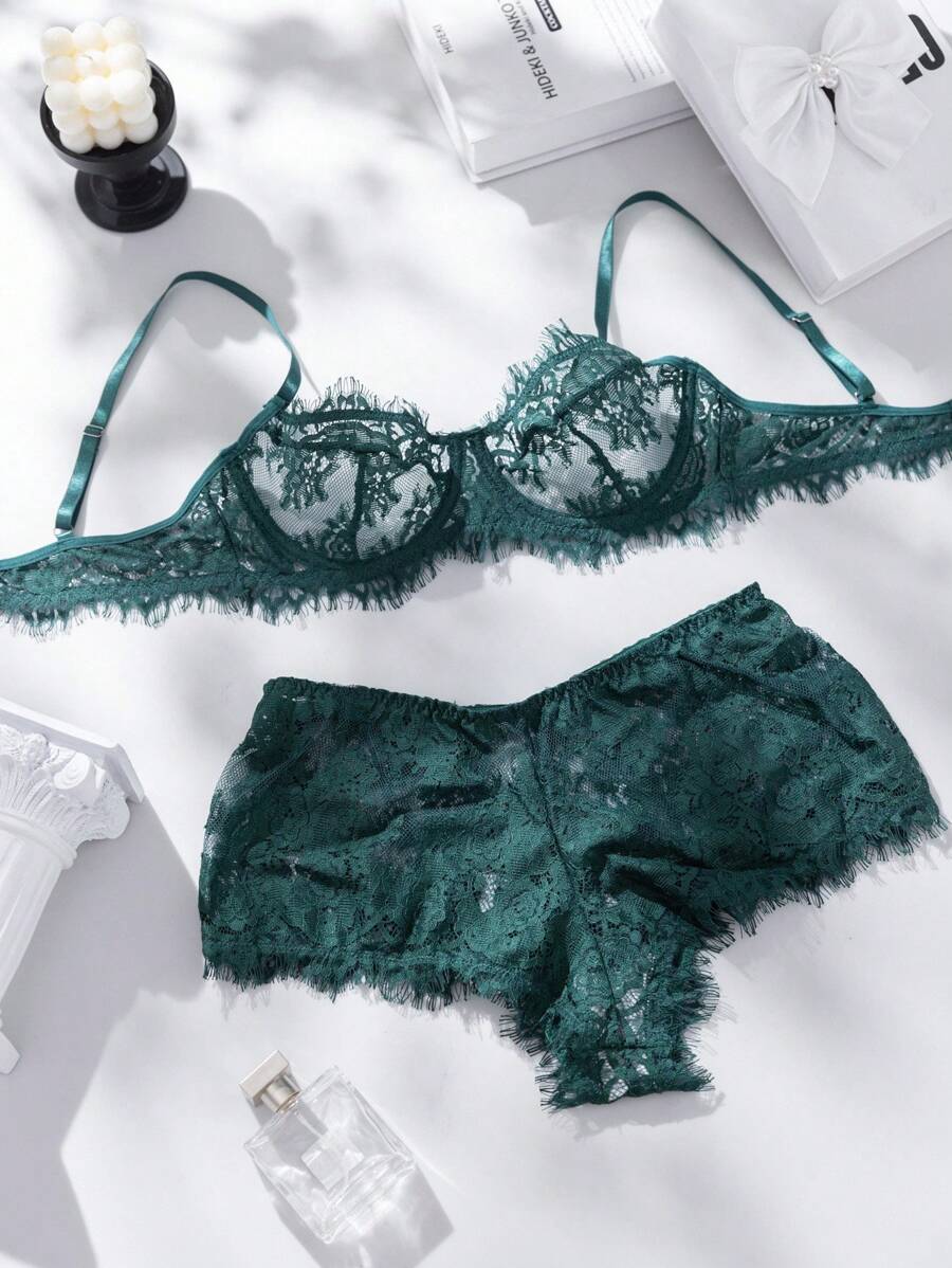 2 piezas conjunto de lenceria intima transparente y con encaje de moda para mujer