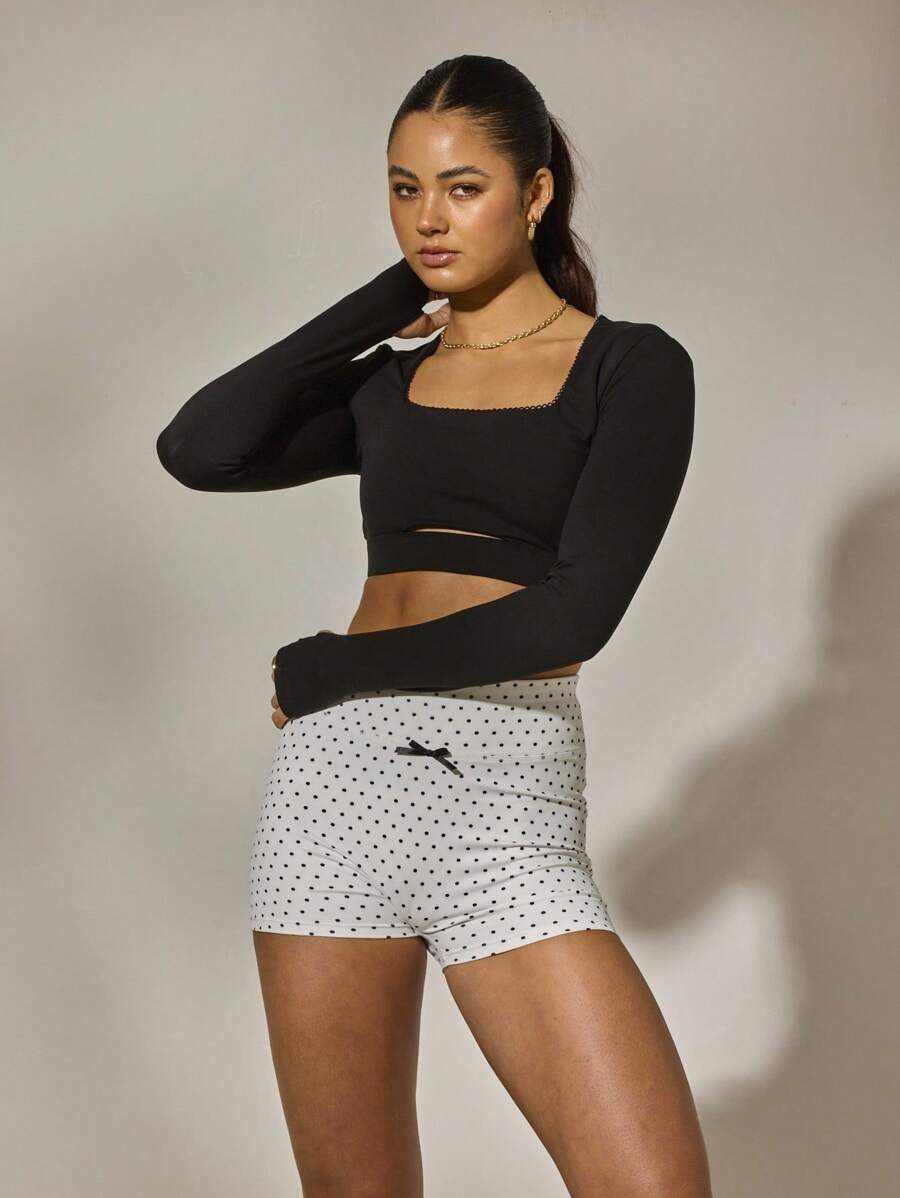 Aralina camiseta deportiva de manga larga y cuello de cisne de unicolor y corta para mujer