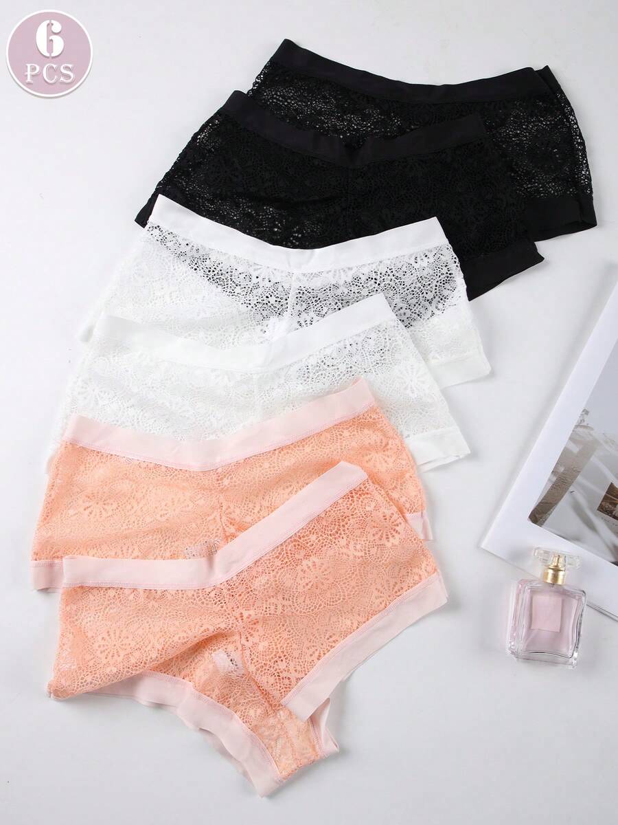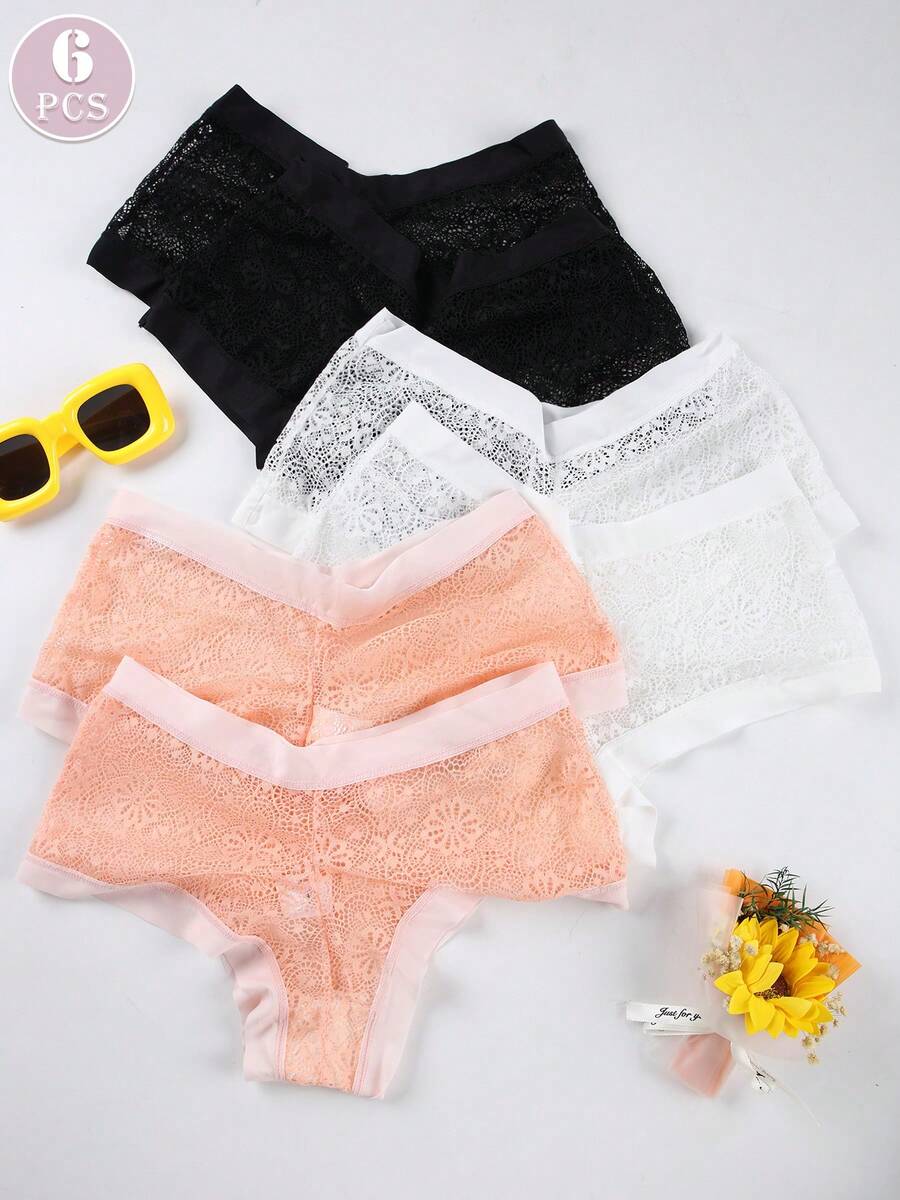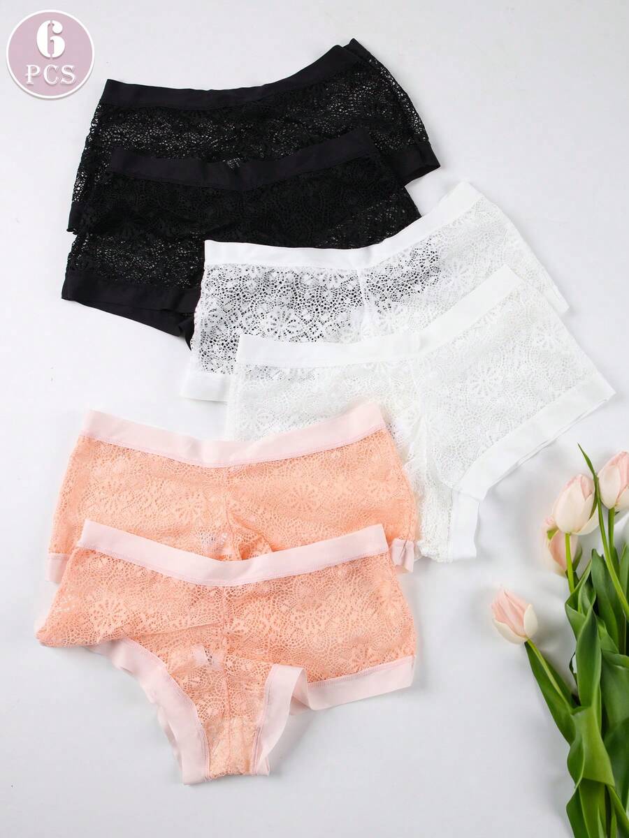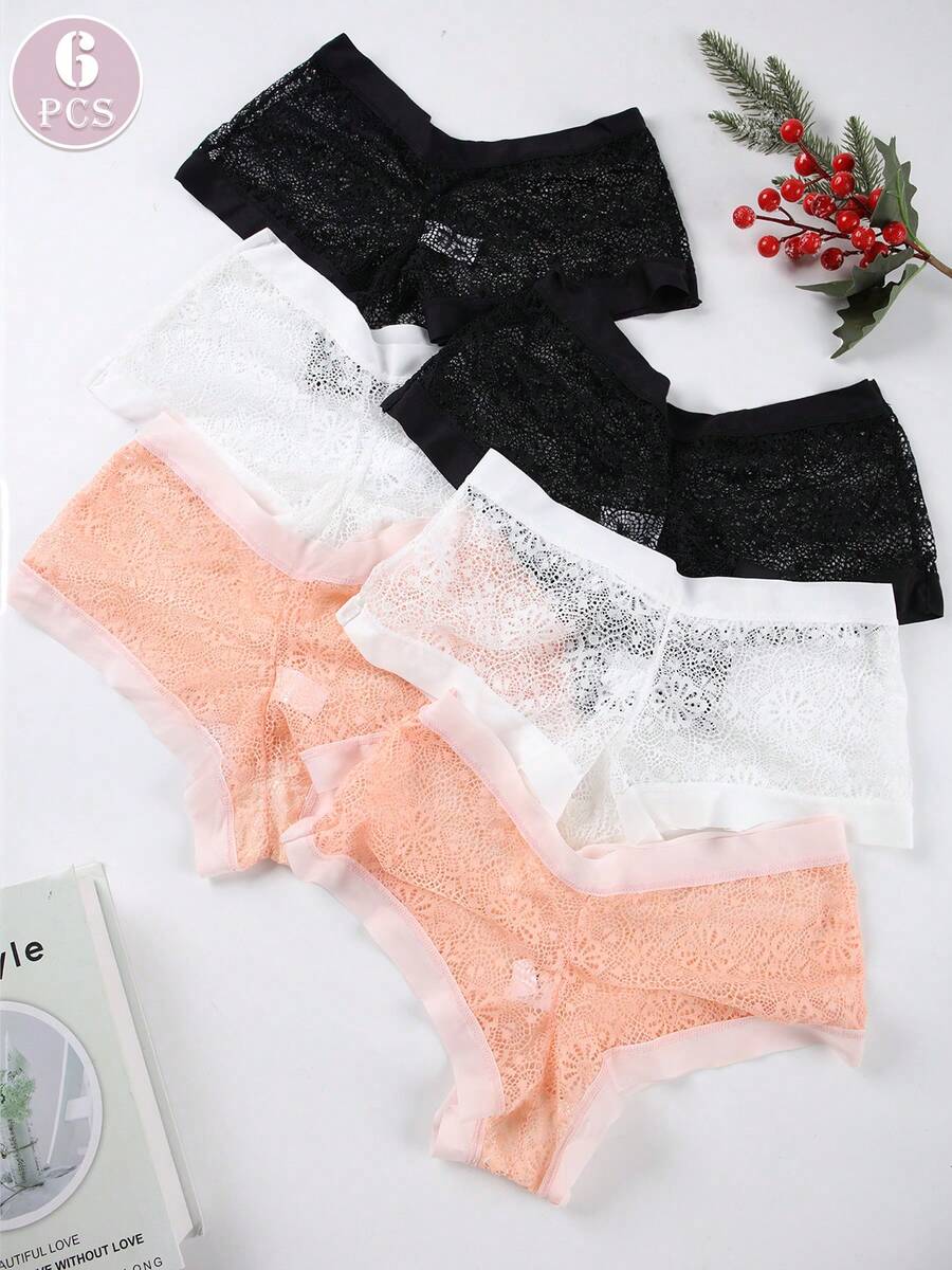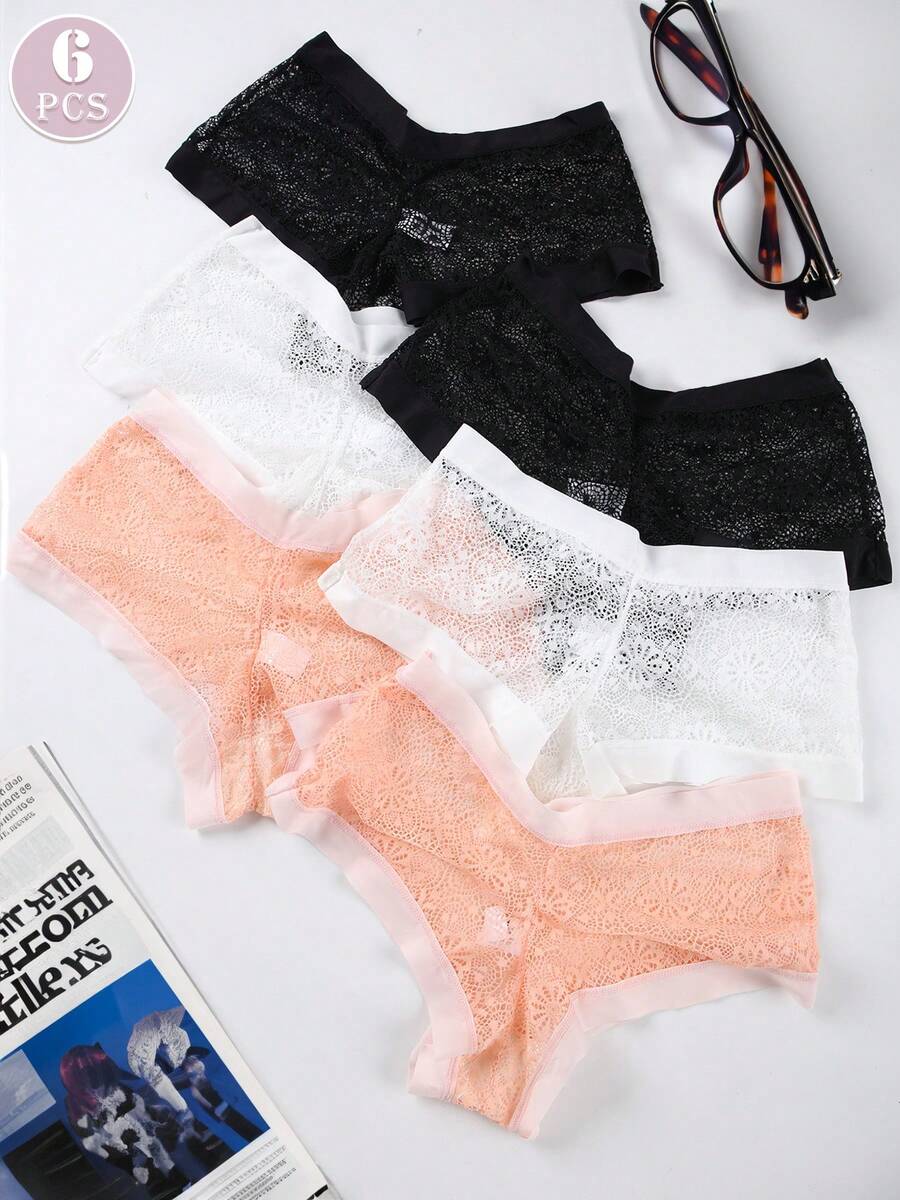 6 piezas pantalones tipo tanga de mujer con diseno de malla sexy, borde ancho, comodos y transpirables, ropa interior tipo tanga de estilo romantico