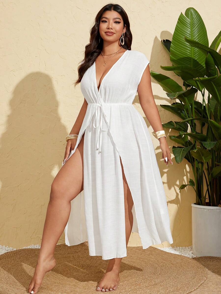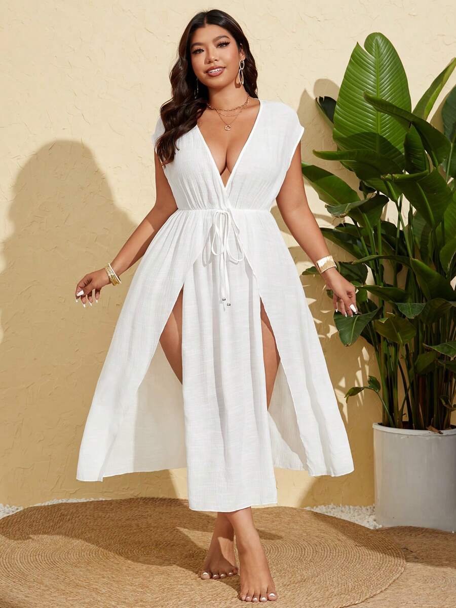 Vestido de playa/cubrecosturas de talla grande para mujer con abertura larga y estilo sexy y casual para vacaciones