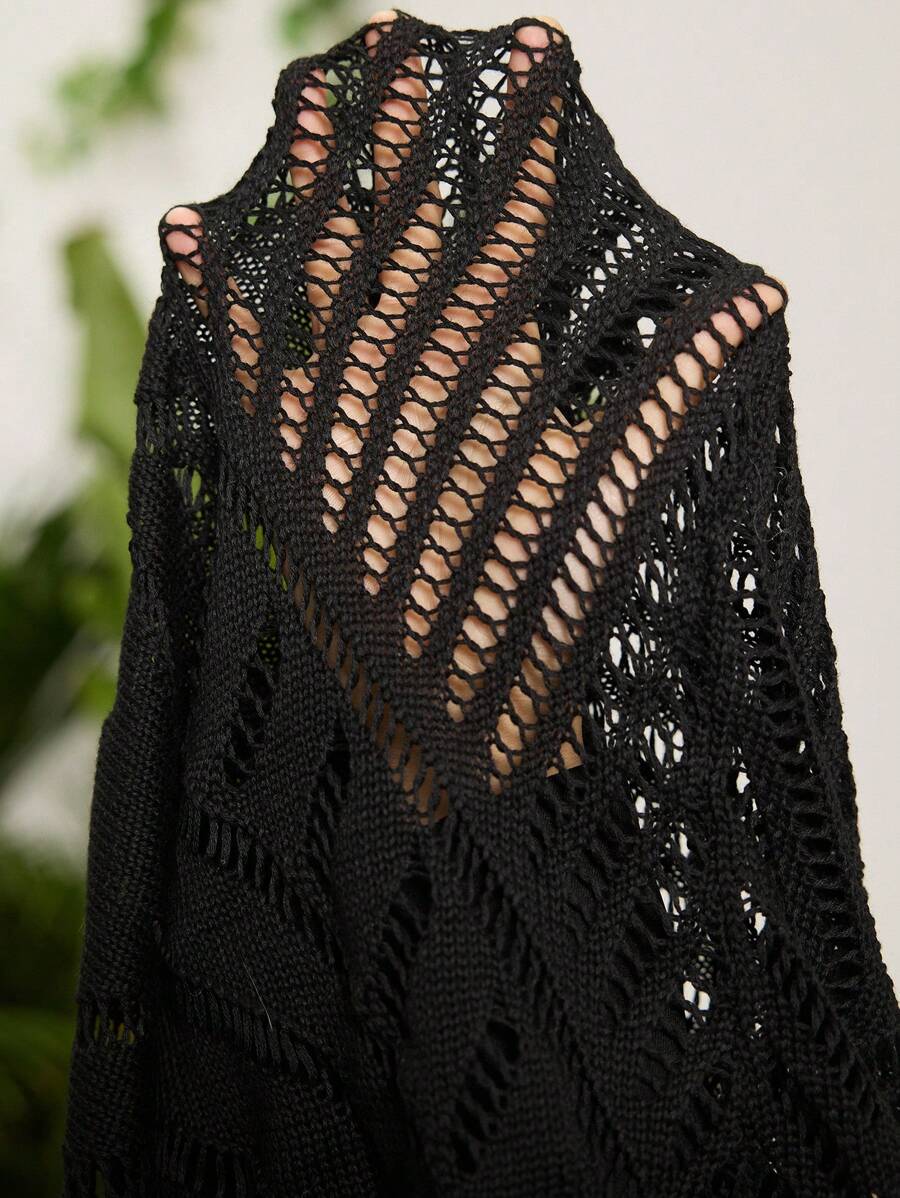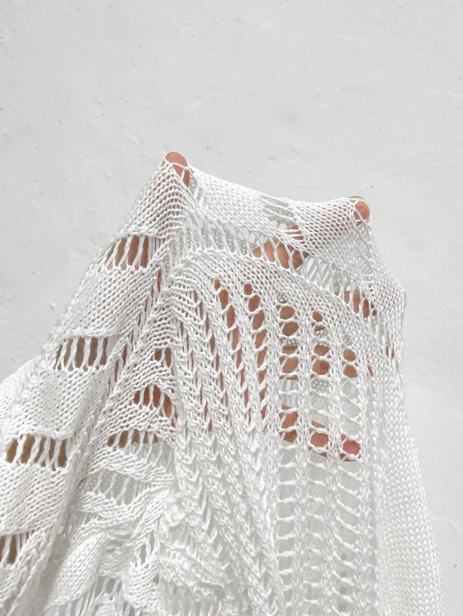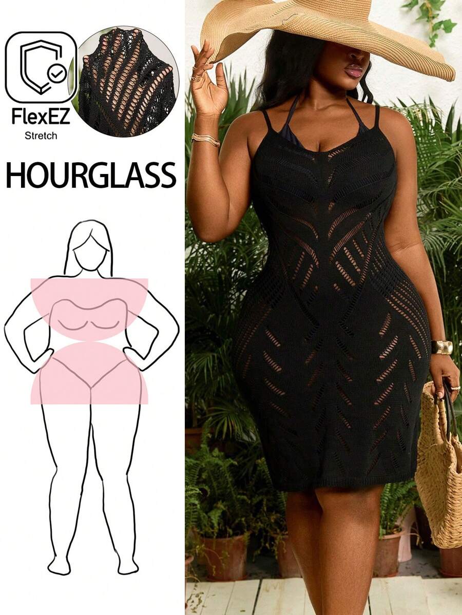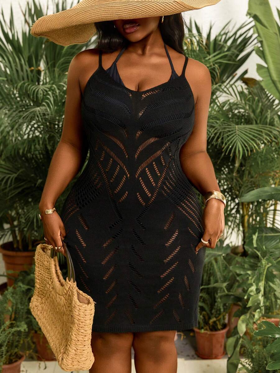 Vestido de playa de punto elegante con espalda descubierta y calado para mujer de talla grande