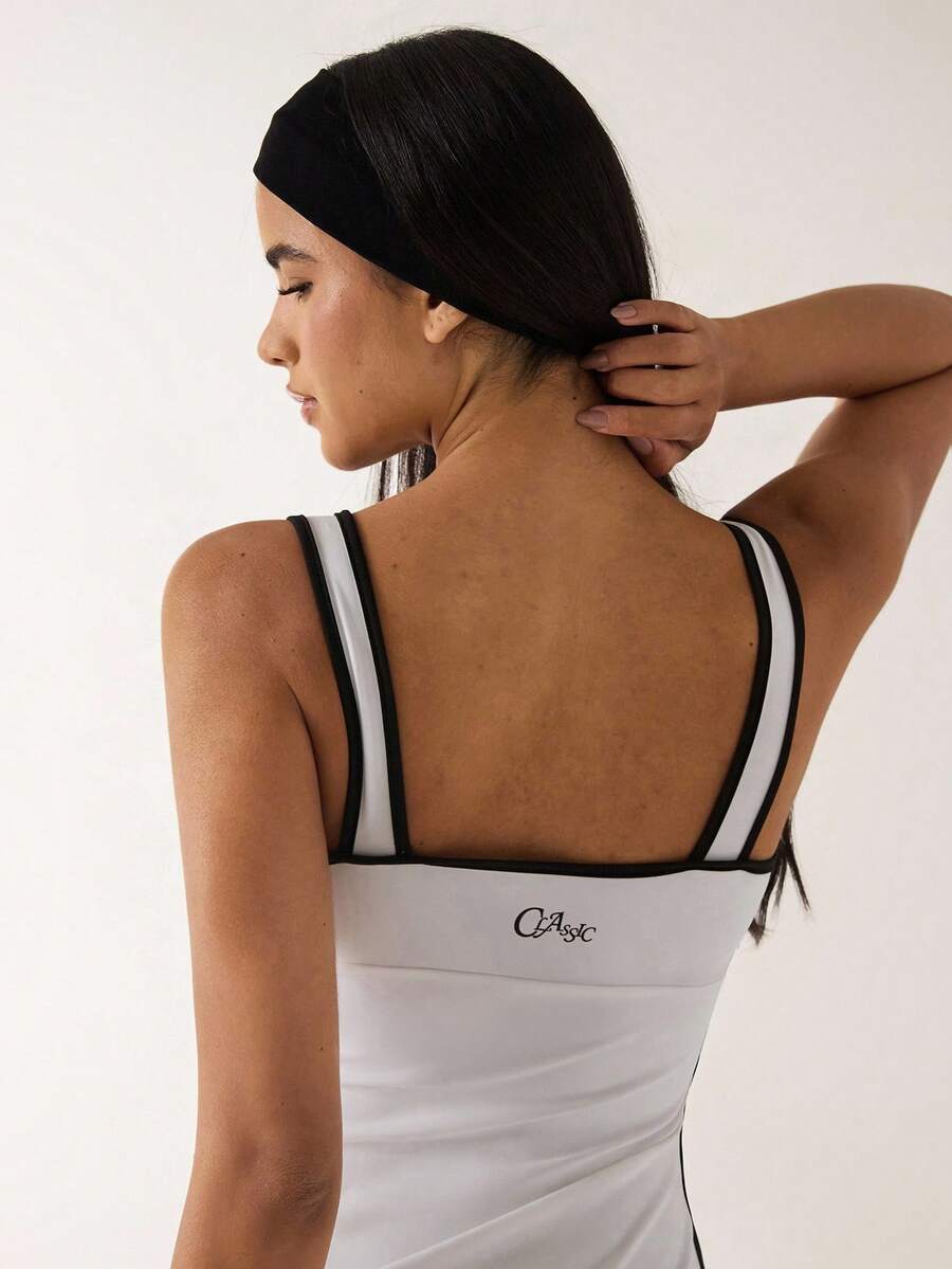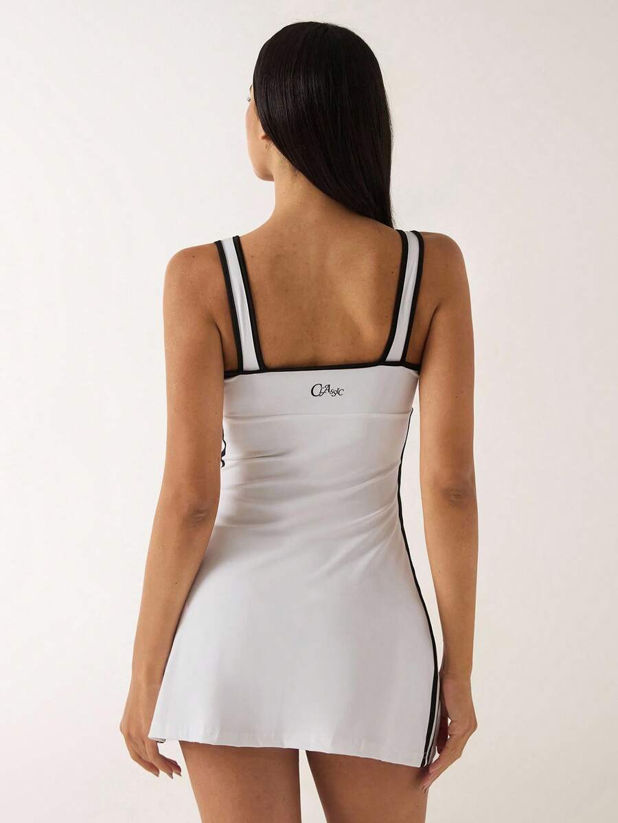 Vestido deportivo elegante, informal y a la moda de mujer con empalmado en blanco y negro