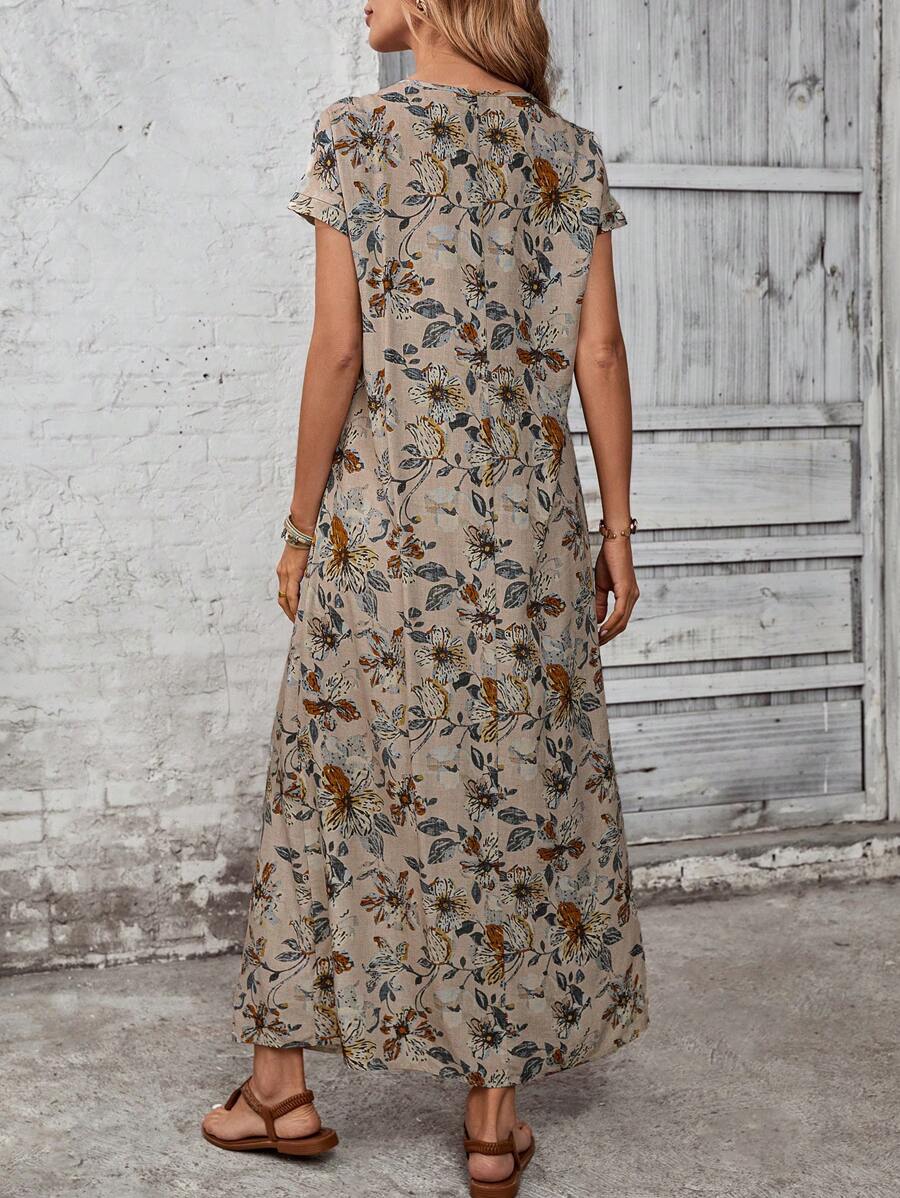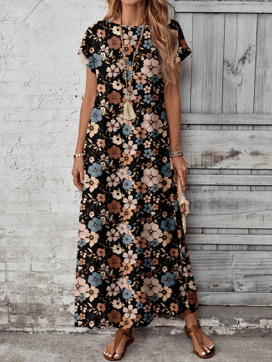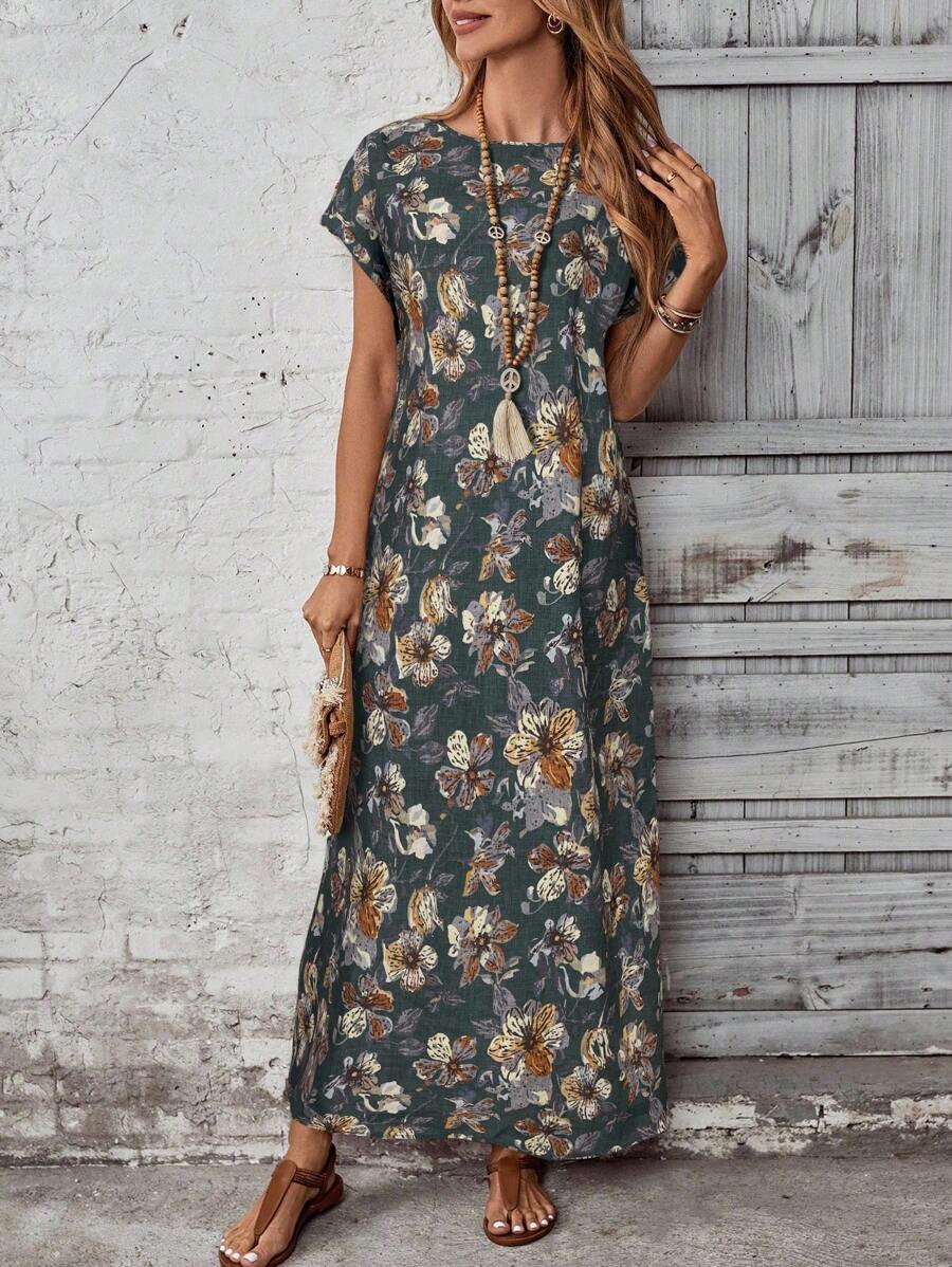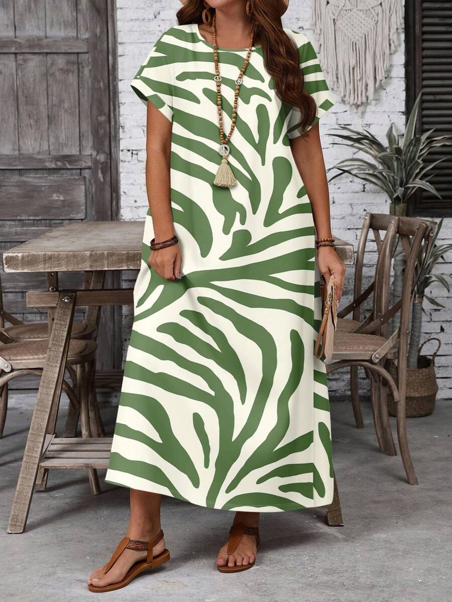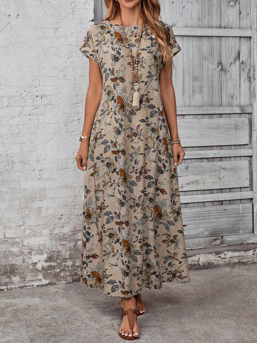 Vestido casual holgado de manga corta con cuello redondo y estampado floral para mujer de talla grande, verano
