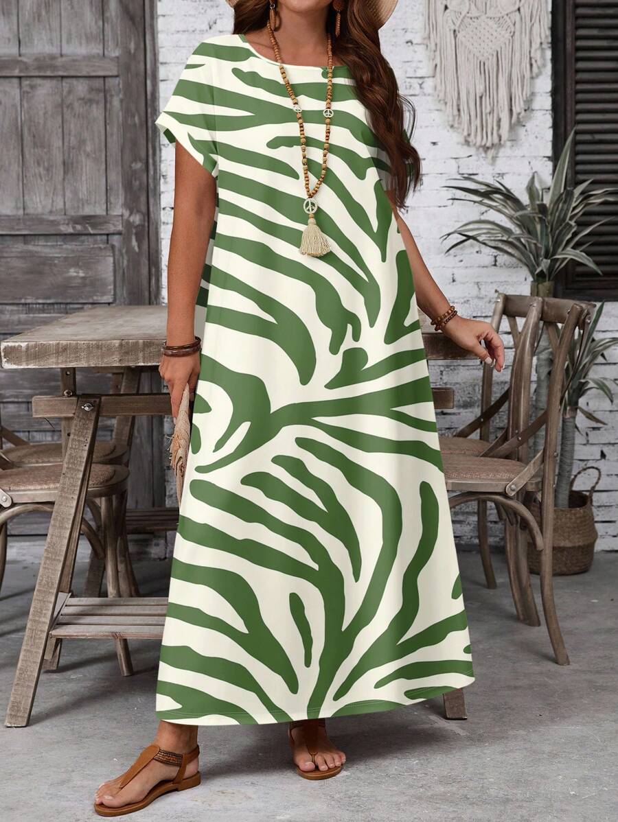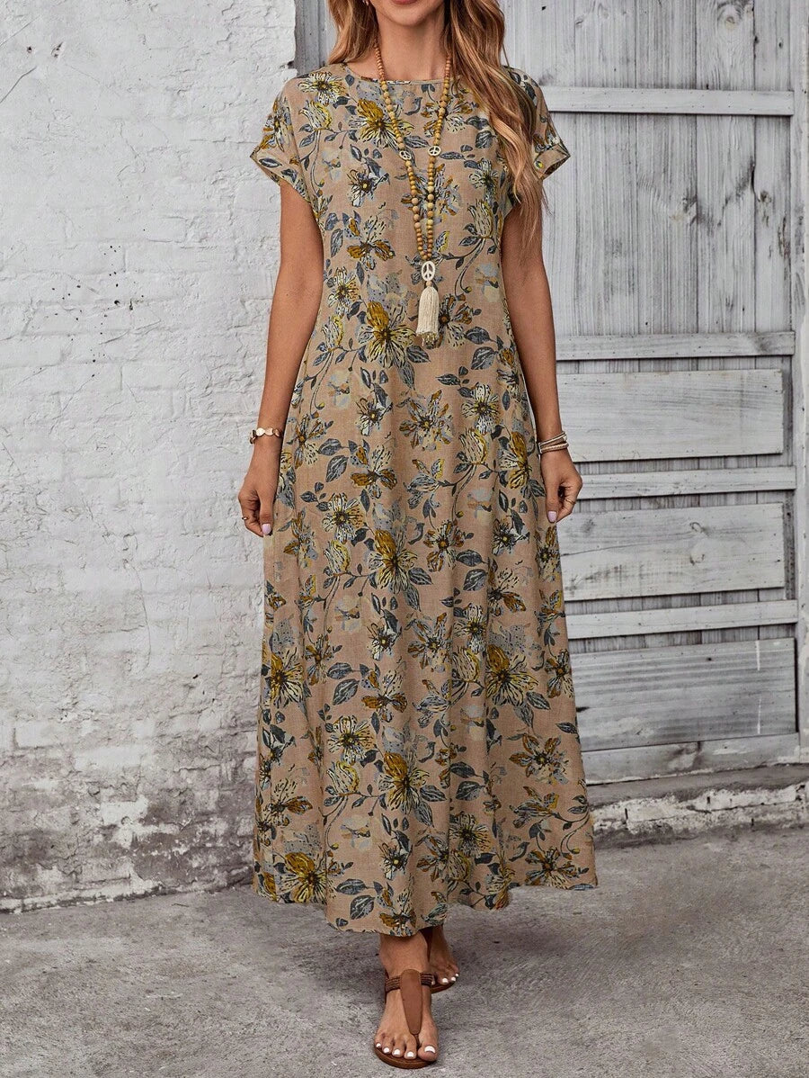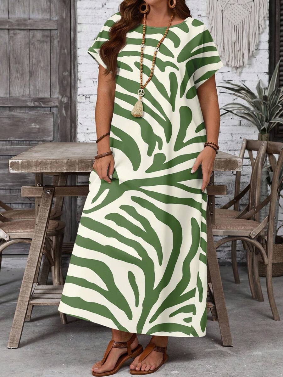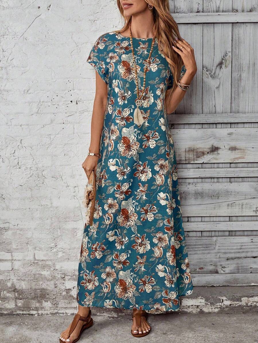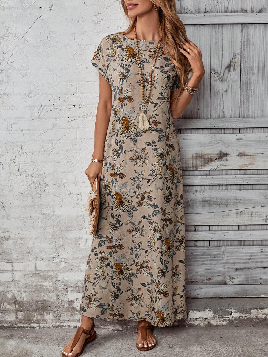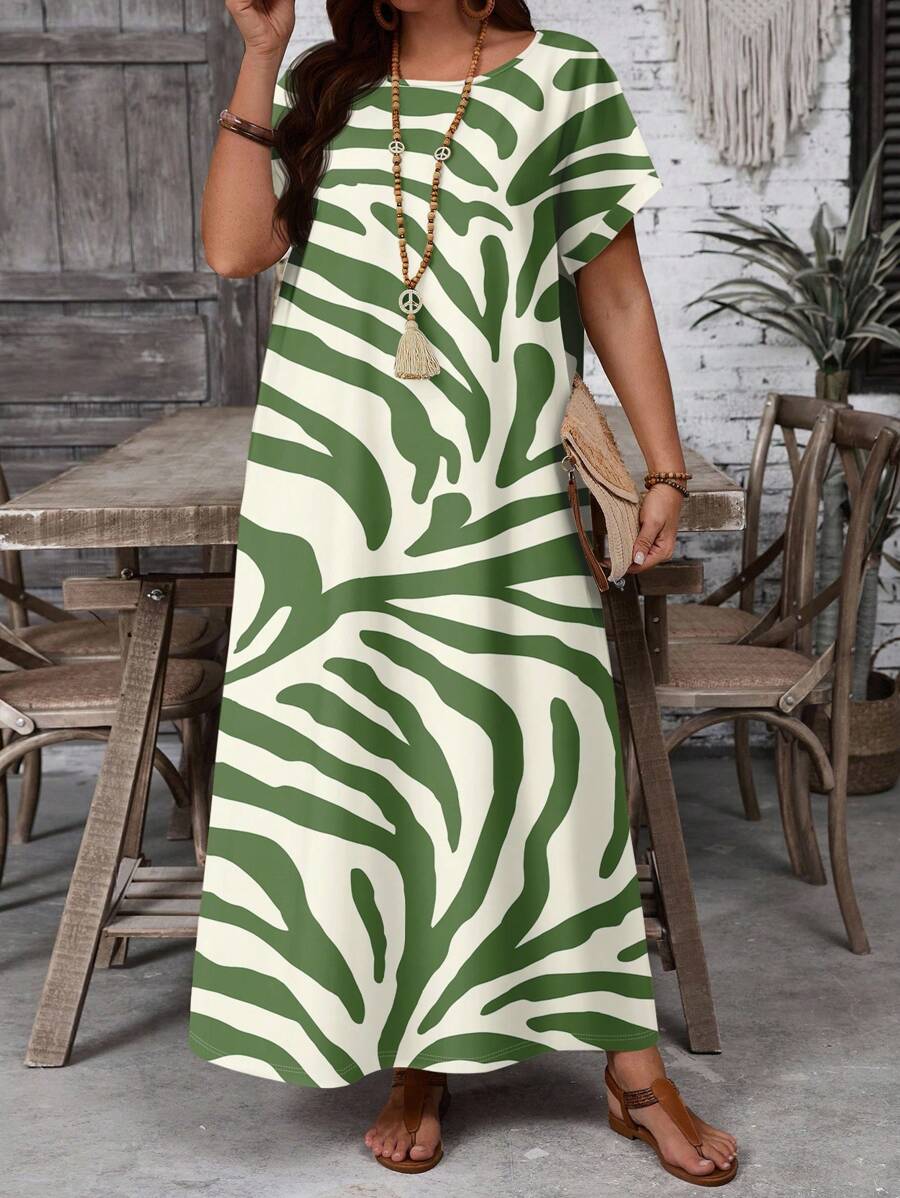 Vestido casual holgado de manga corta con cuello redondo y estampado floral para mujer de talla grande, verano