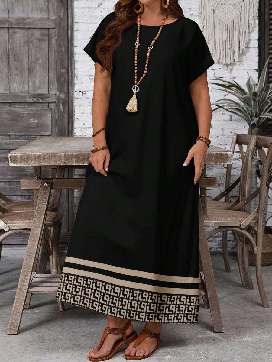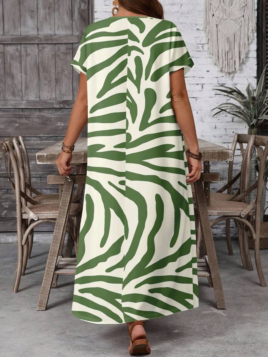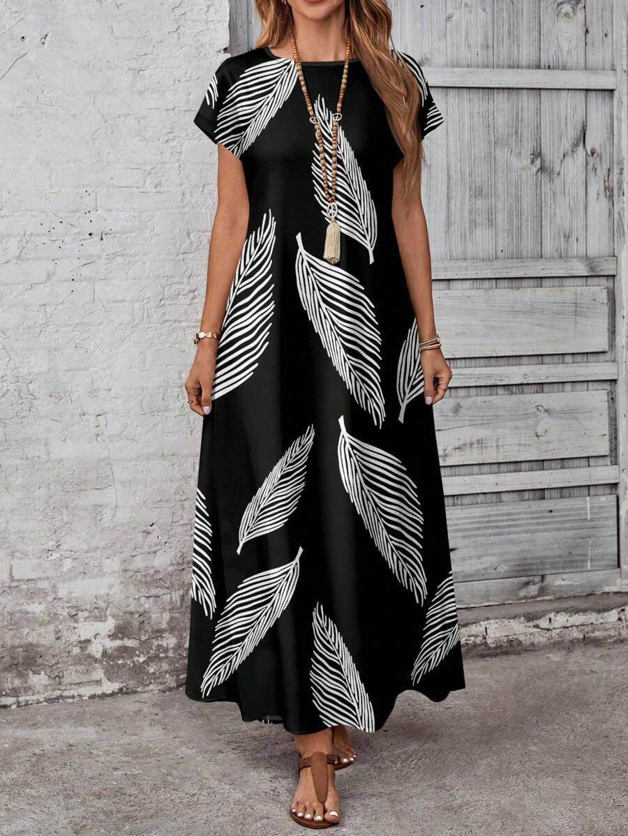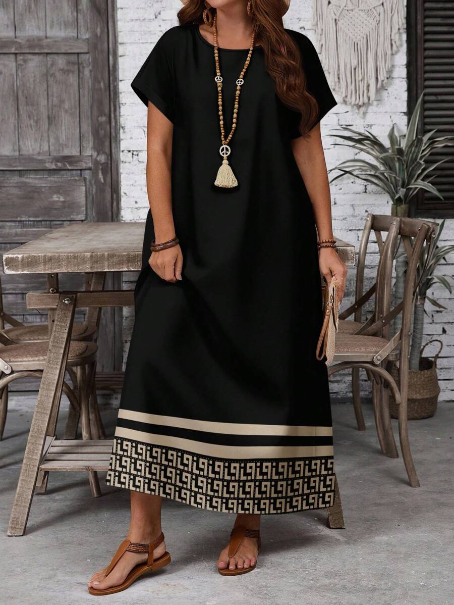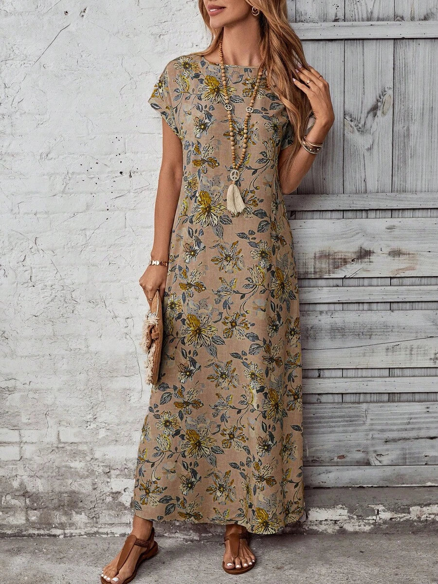 Vestido casual holgado de manga corta con cuello redondo y estampado floral para mujer de talla grande, verano