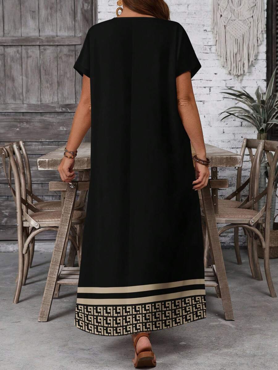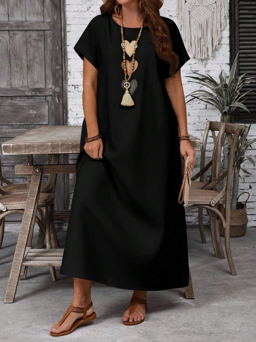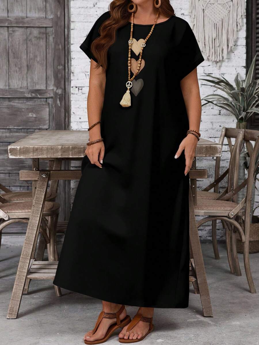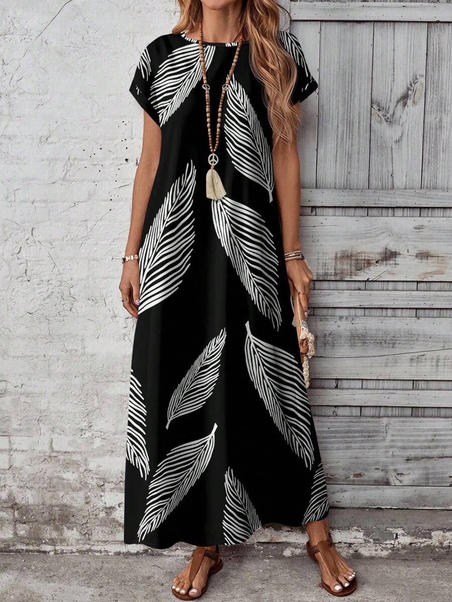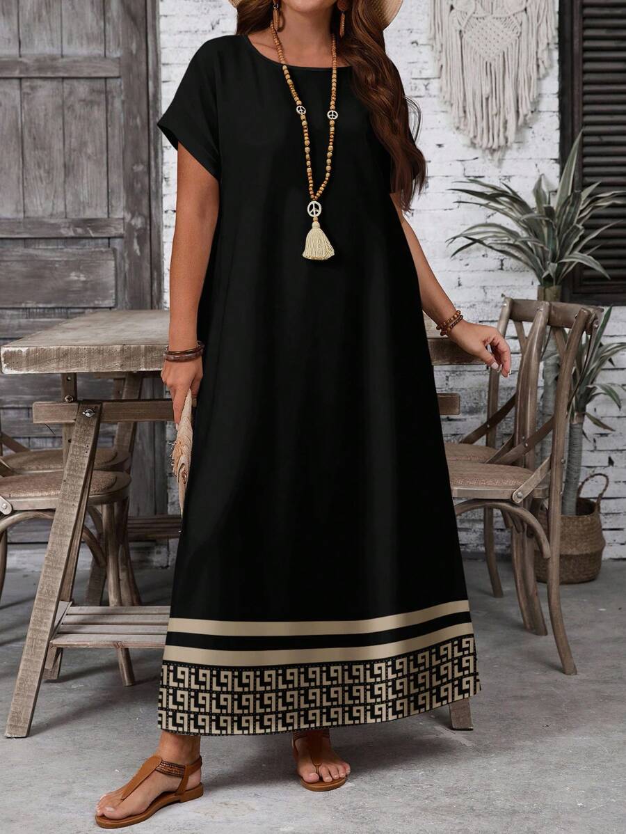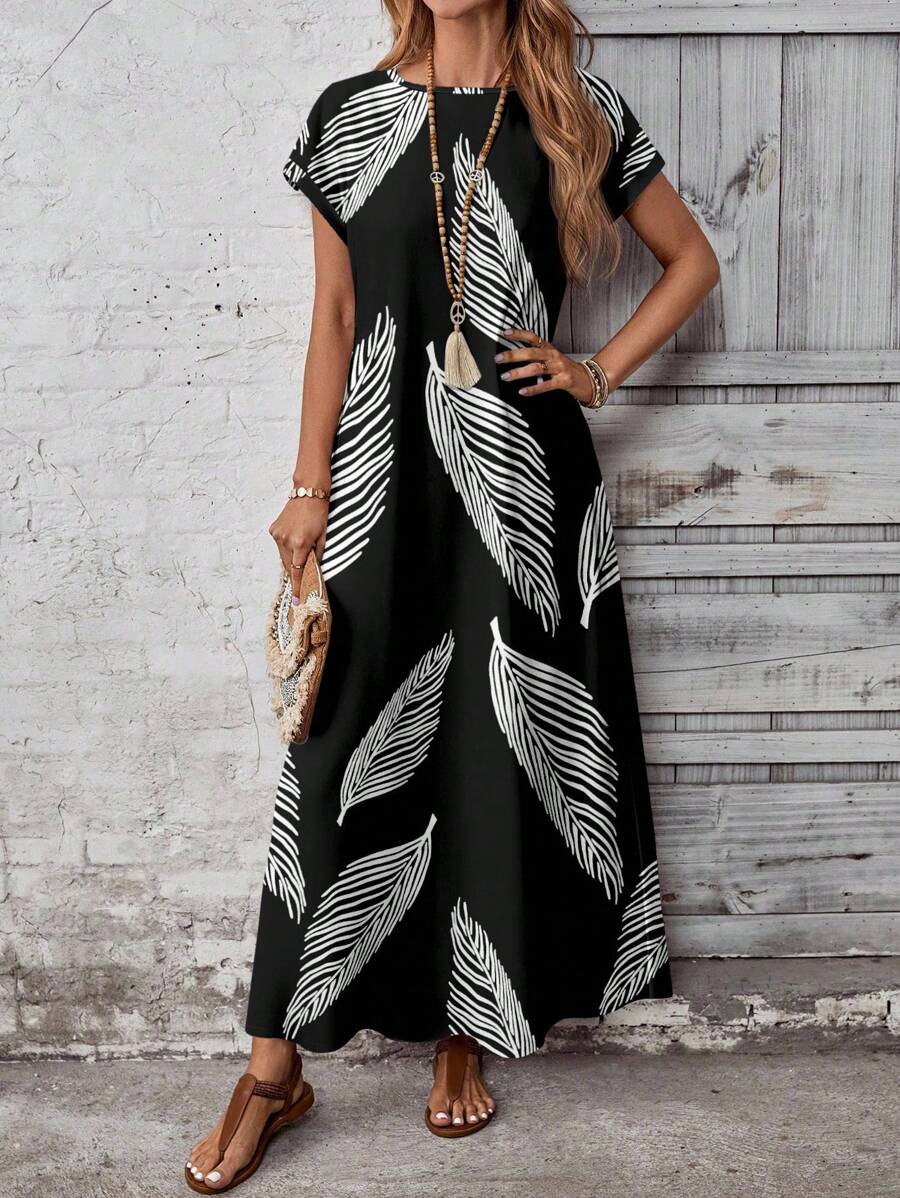 Vestido casual holgado de manga corta con cuello redondo y estampado floral para mujer de talla grande, verano