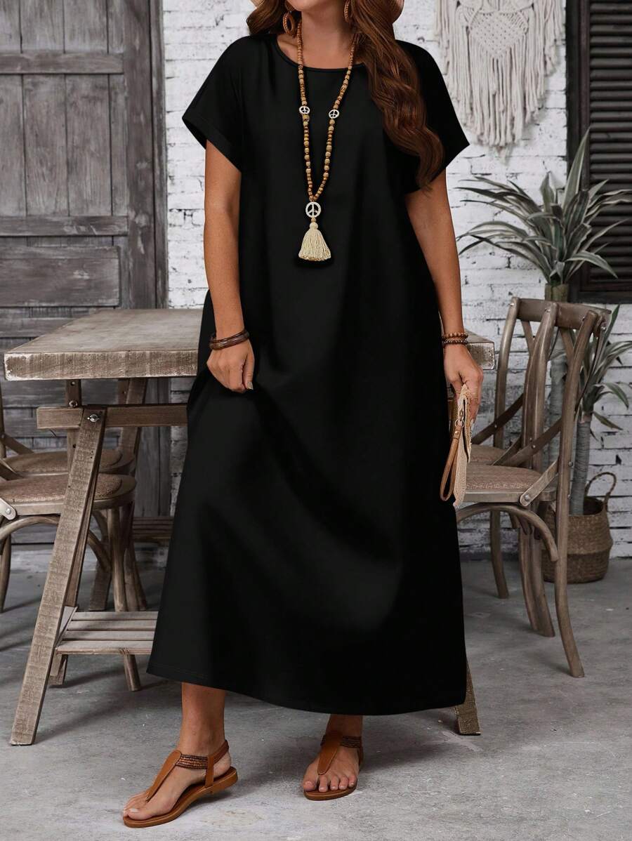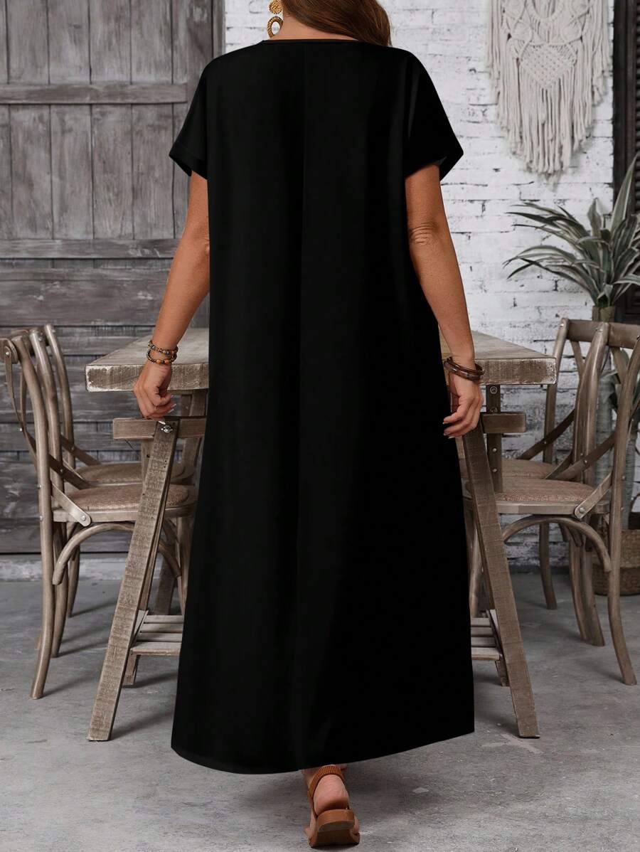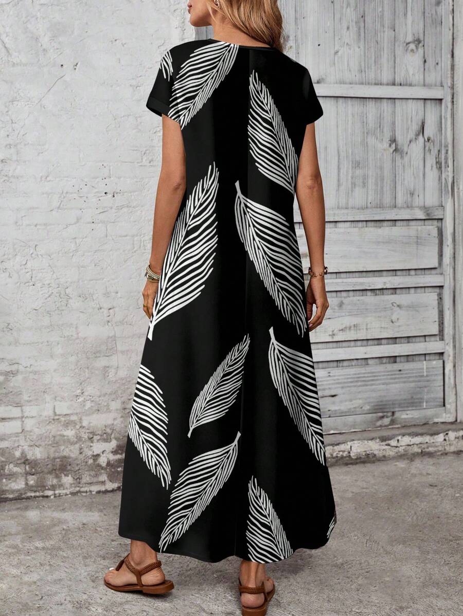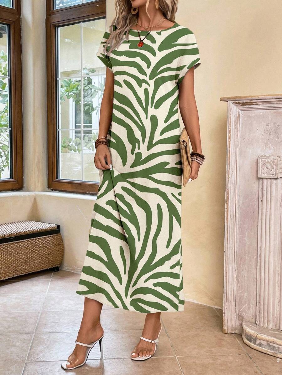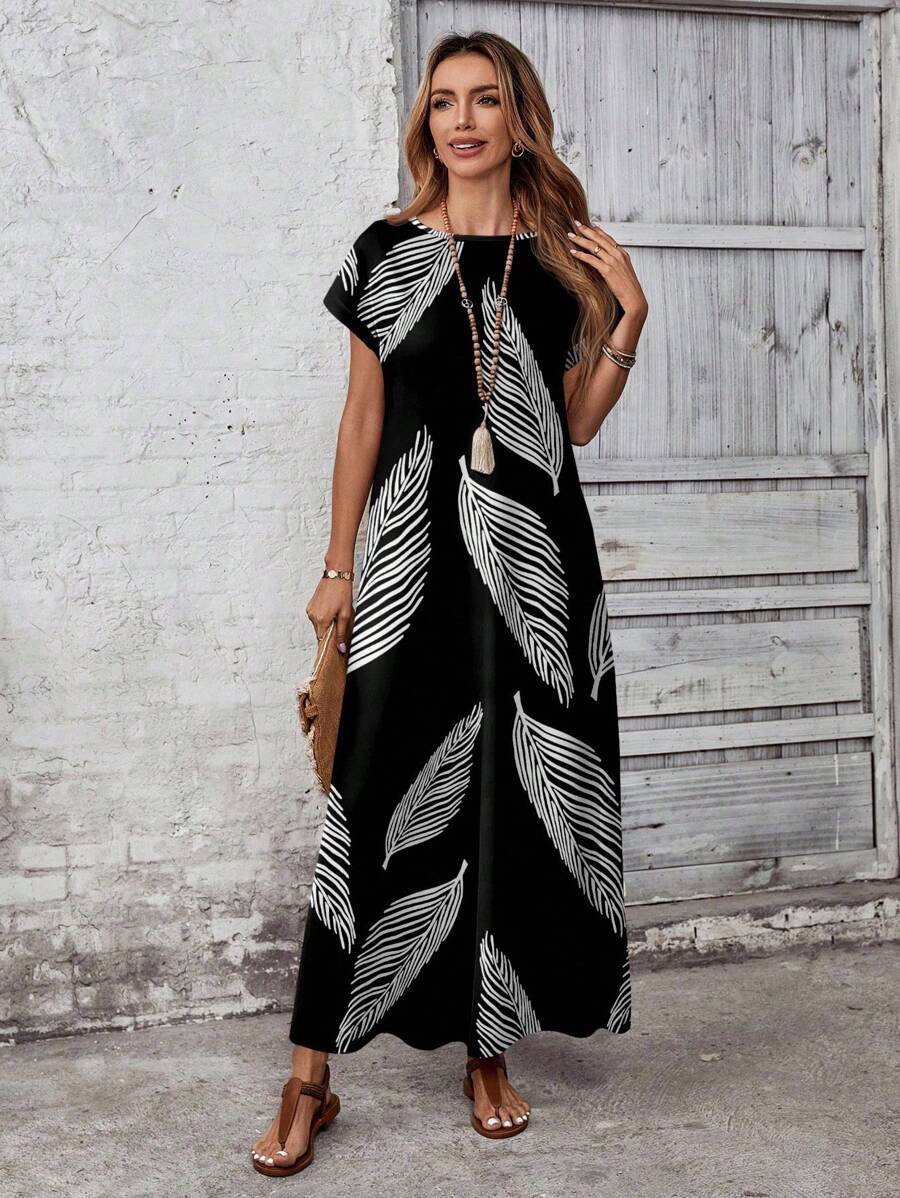 Vestido casual holgado de manga corta con cuello redondo y estampado floral para mujer de talla grande, verano