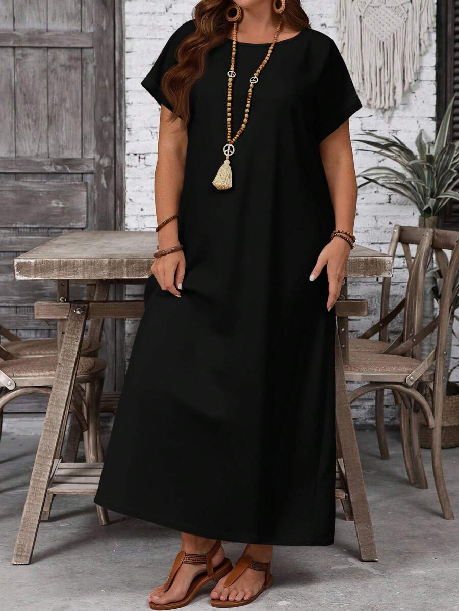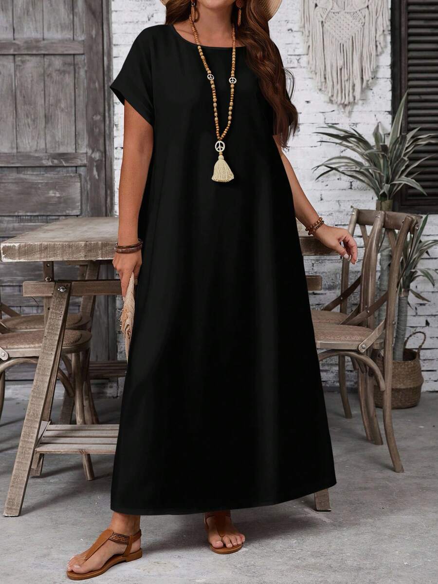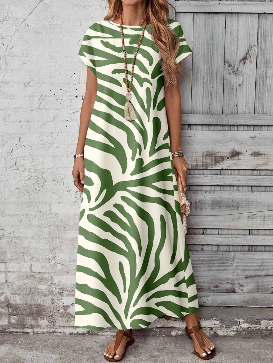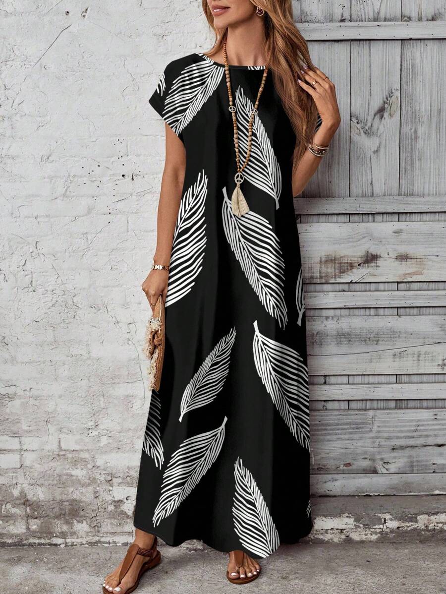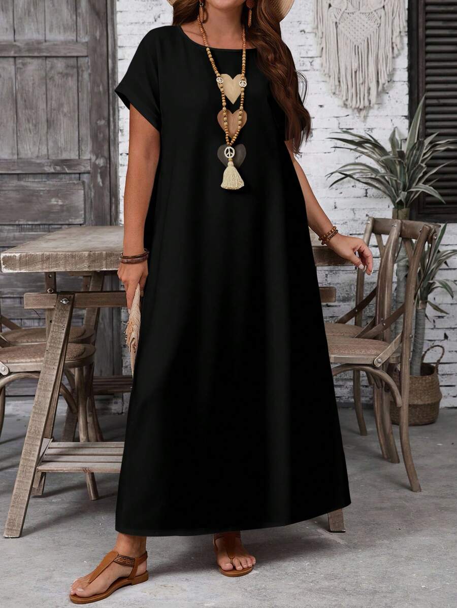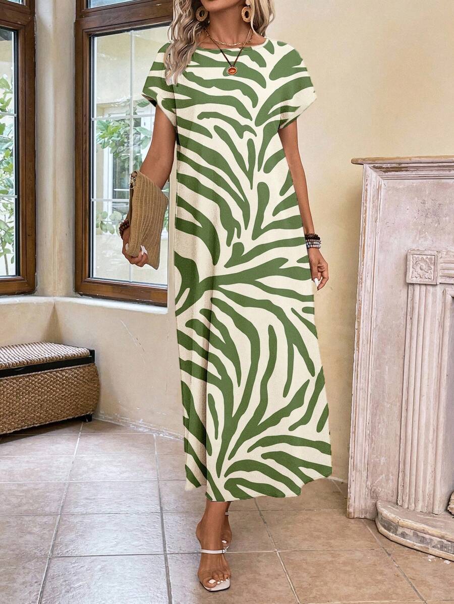 Vestido casual holgado de manga corta con cuello redondo y estampado floral para mujer de talla grande, verano