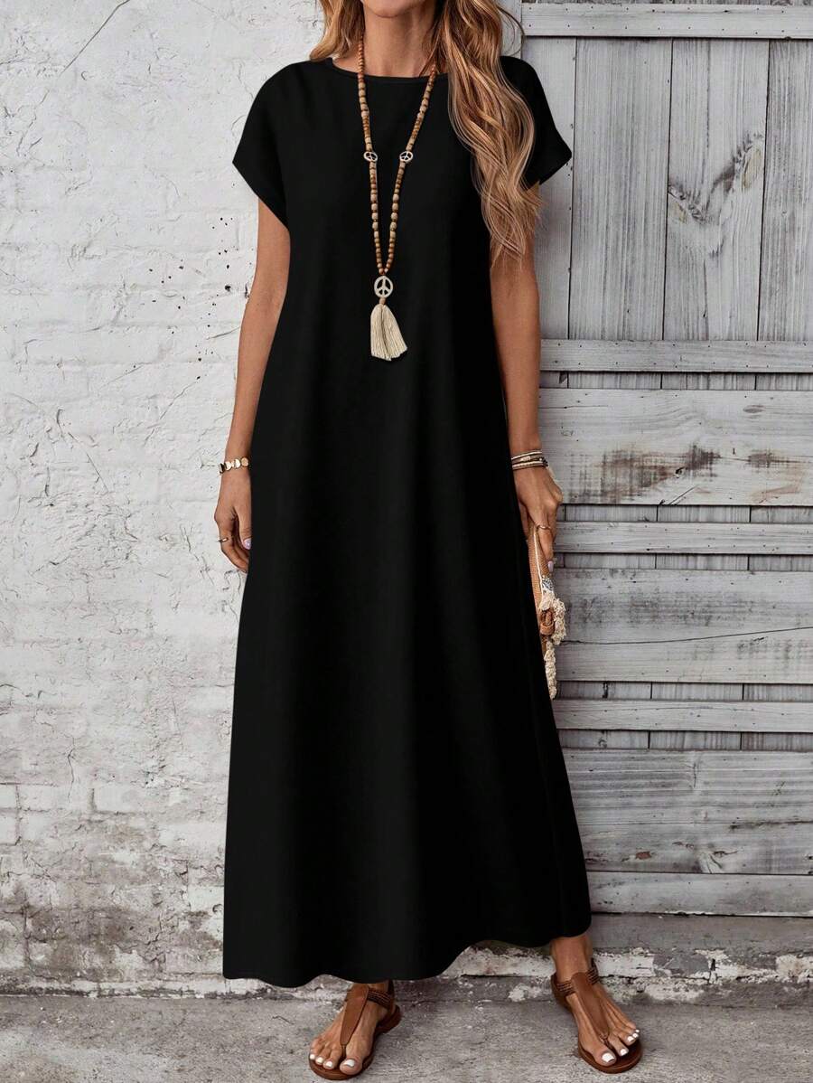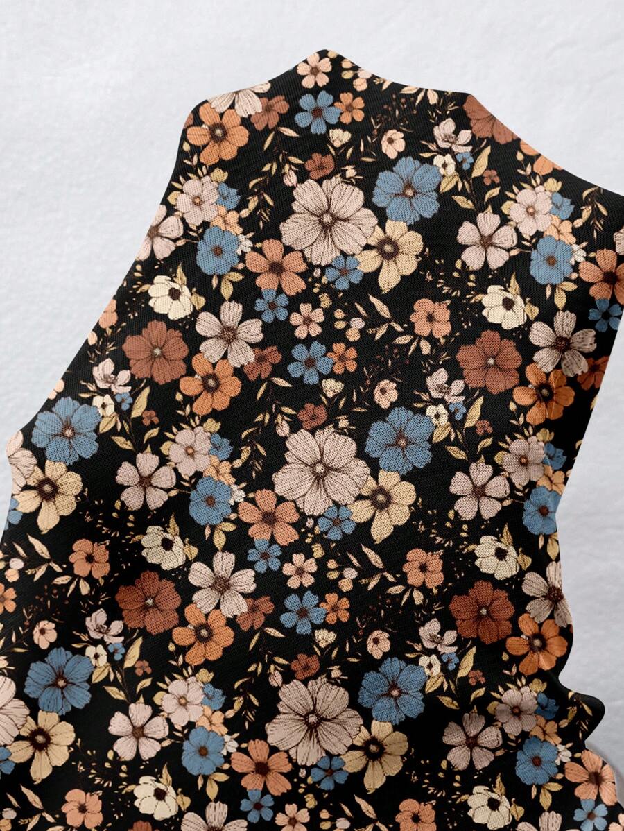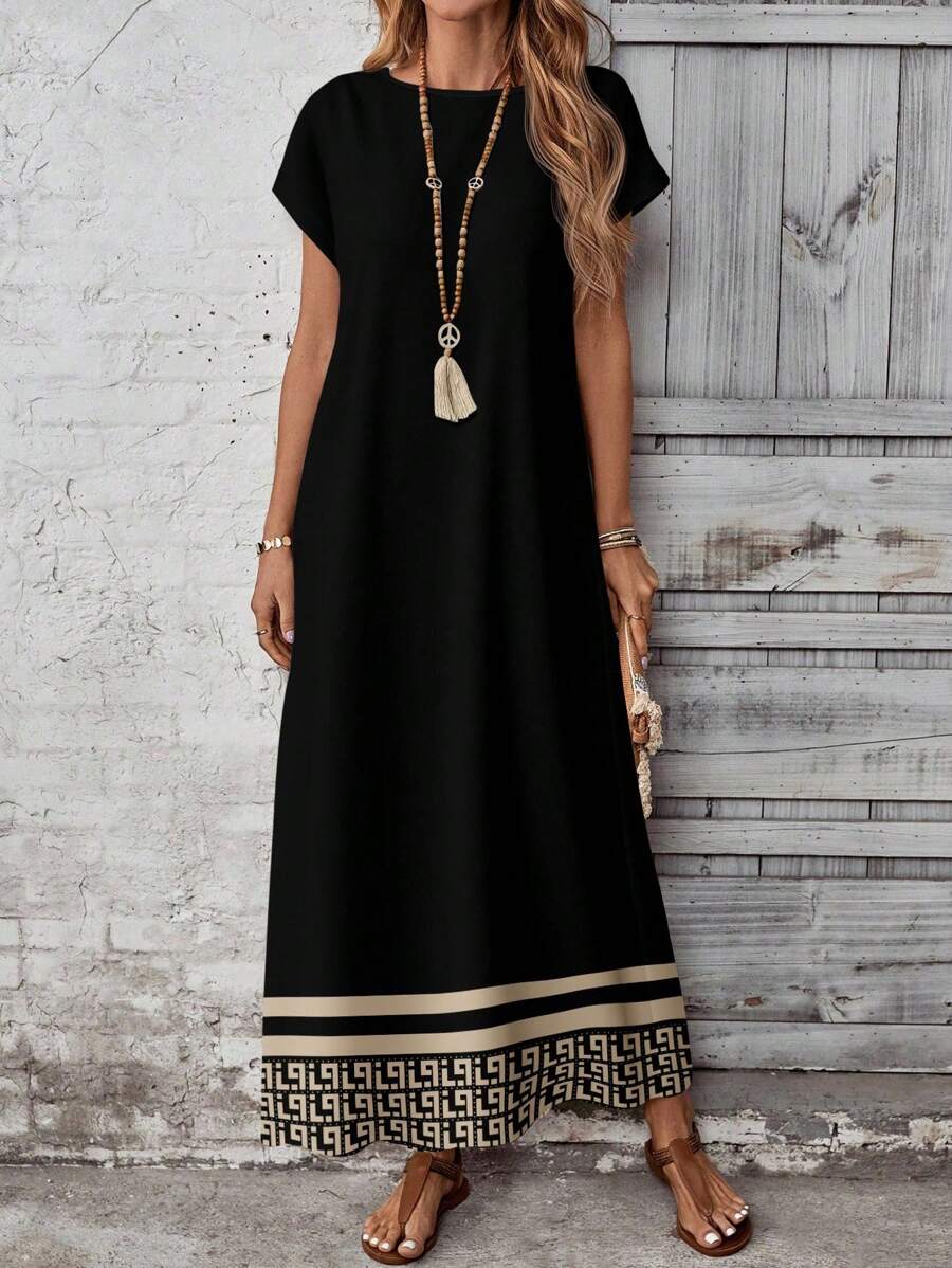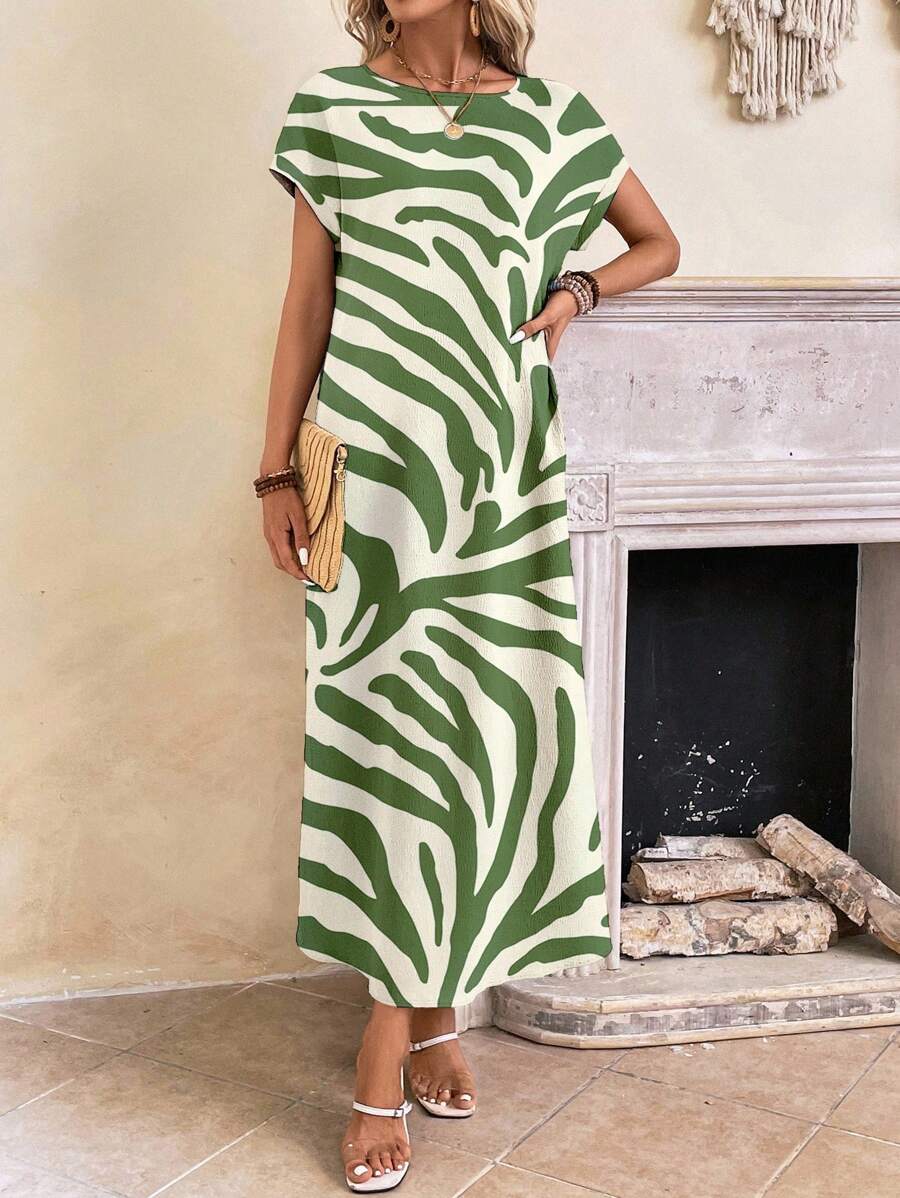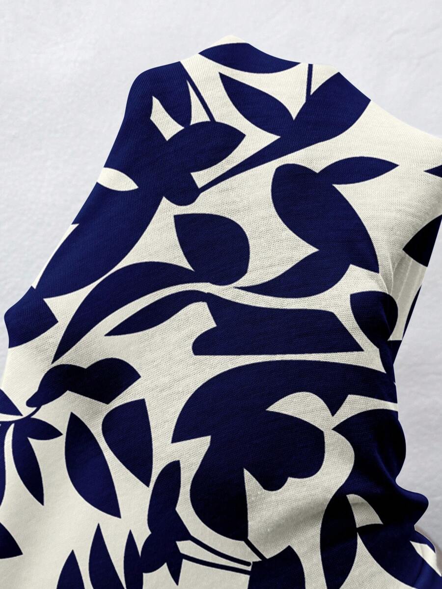 Vestido casual holgado de manga corta con cuello redondo y estampado floral para mujer de talla grande, verano