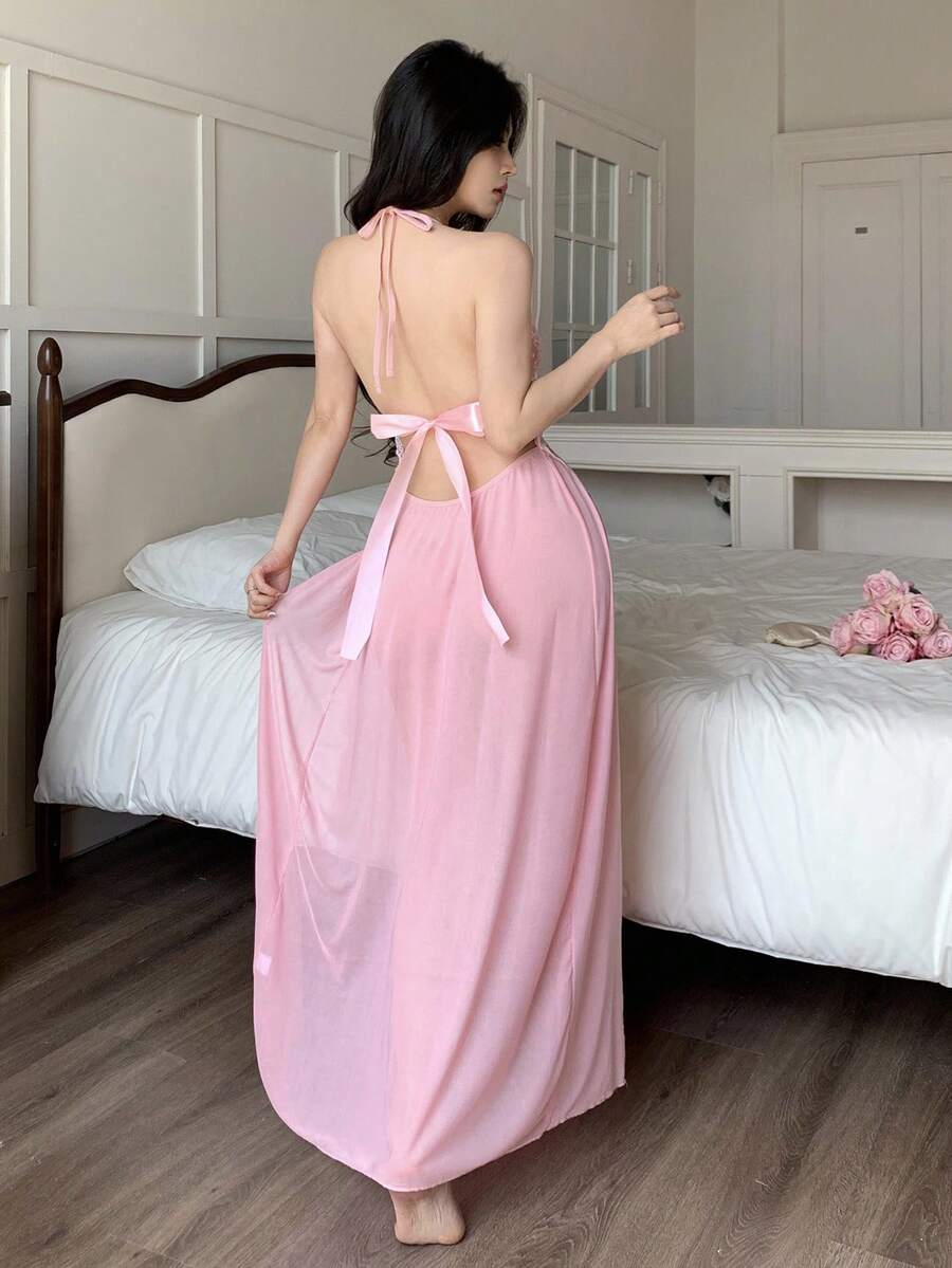 Vestido largo con abertura sexy de malla, camison de mujer para el dia de san valentin