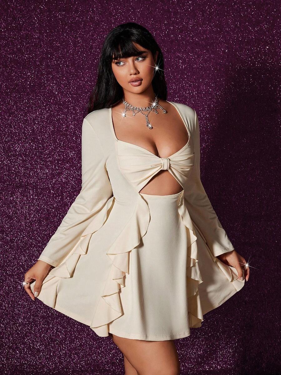 Viva relle vestido elegante, romantico y de vacaciones con manga larga y volantes, talla grande