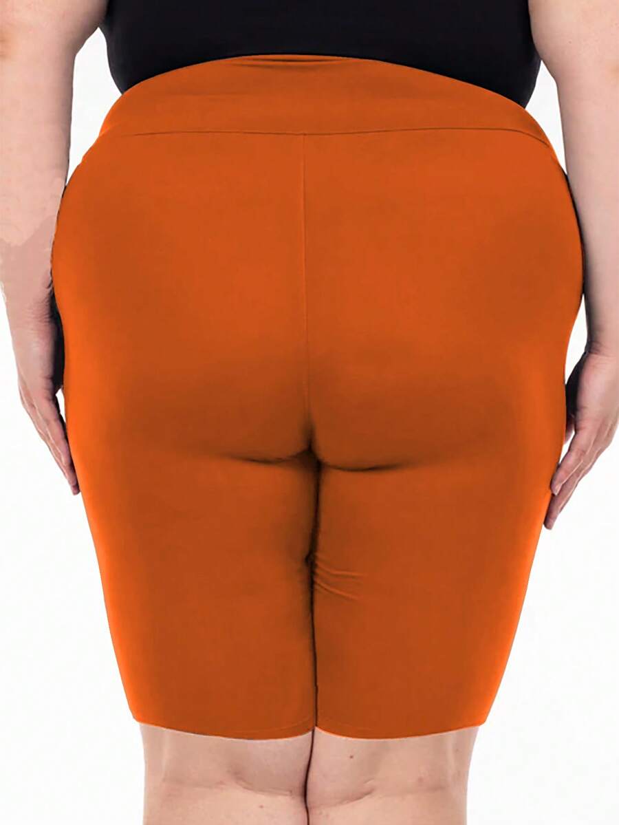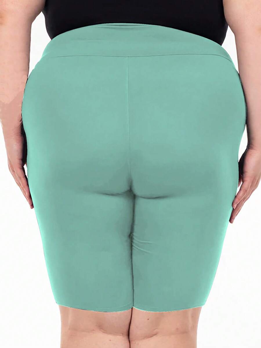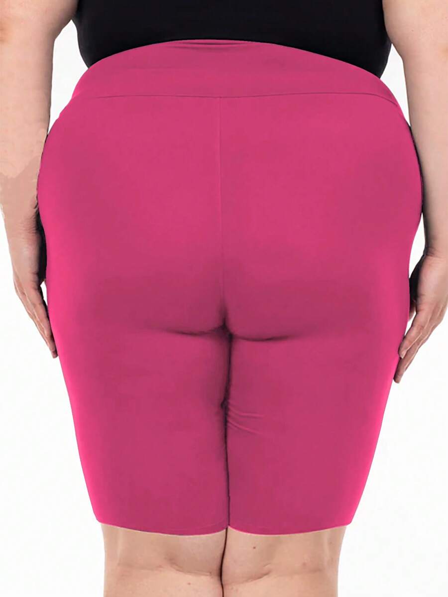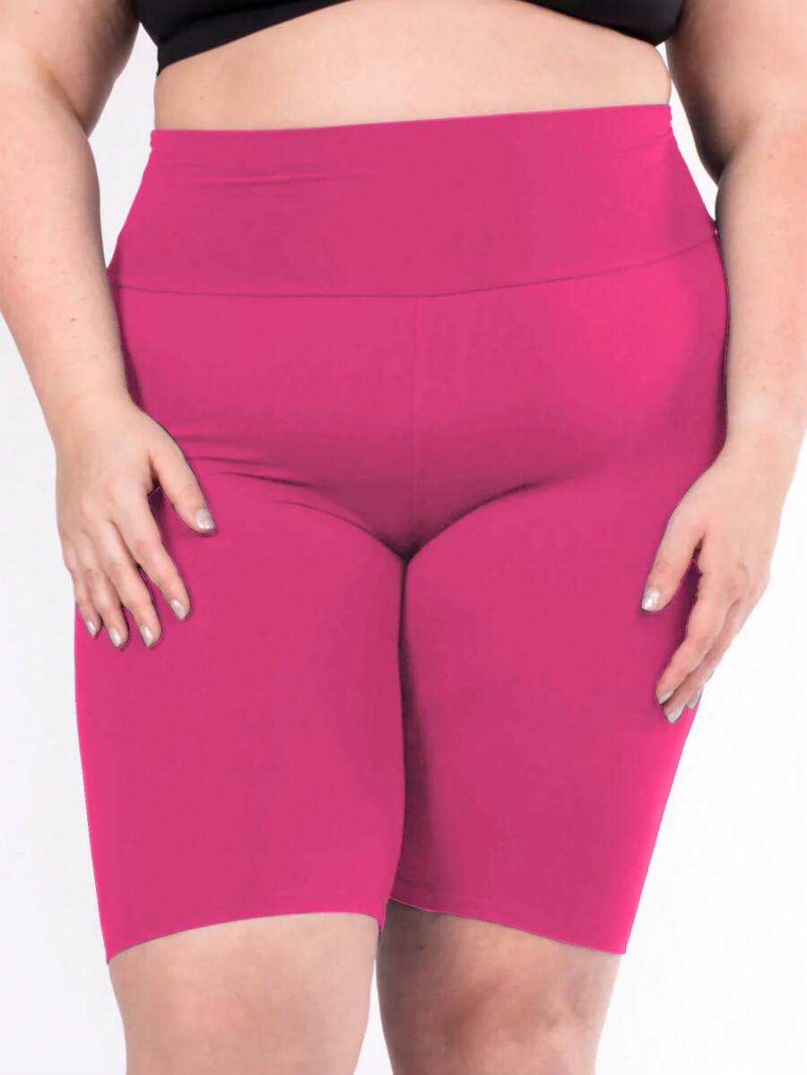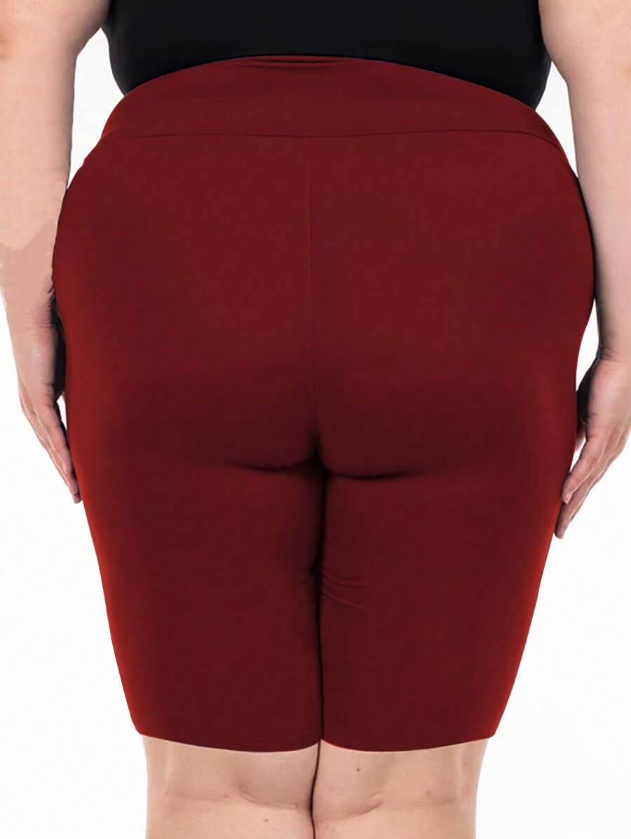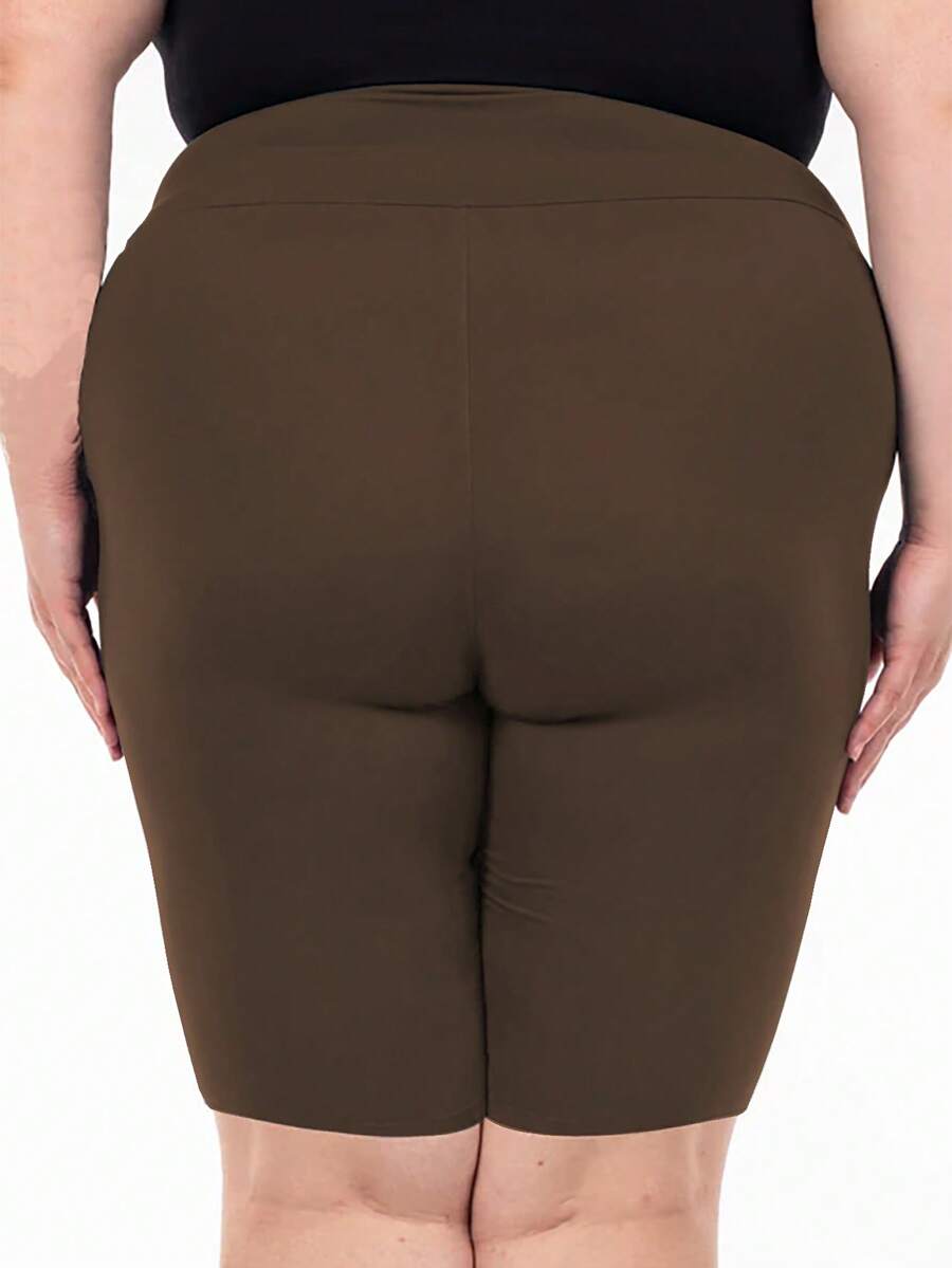 Pantalones cortos de mujer de talla grande de unicolor, tela de punto de poliester, cintura elastica, longitud corta, mallas de fitness de alta elasticidad, adecuadas para uso casual y entrenamiento los fines de semana