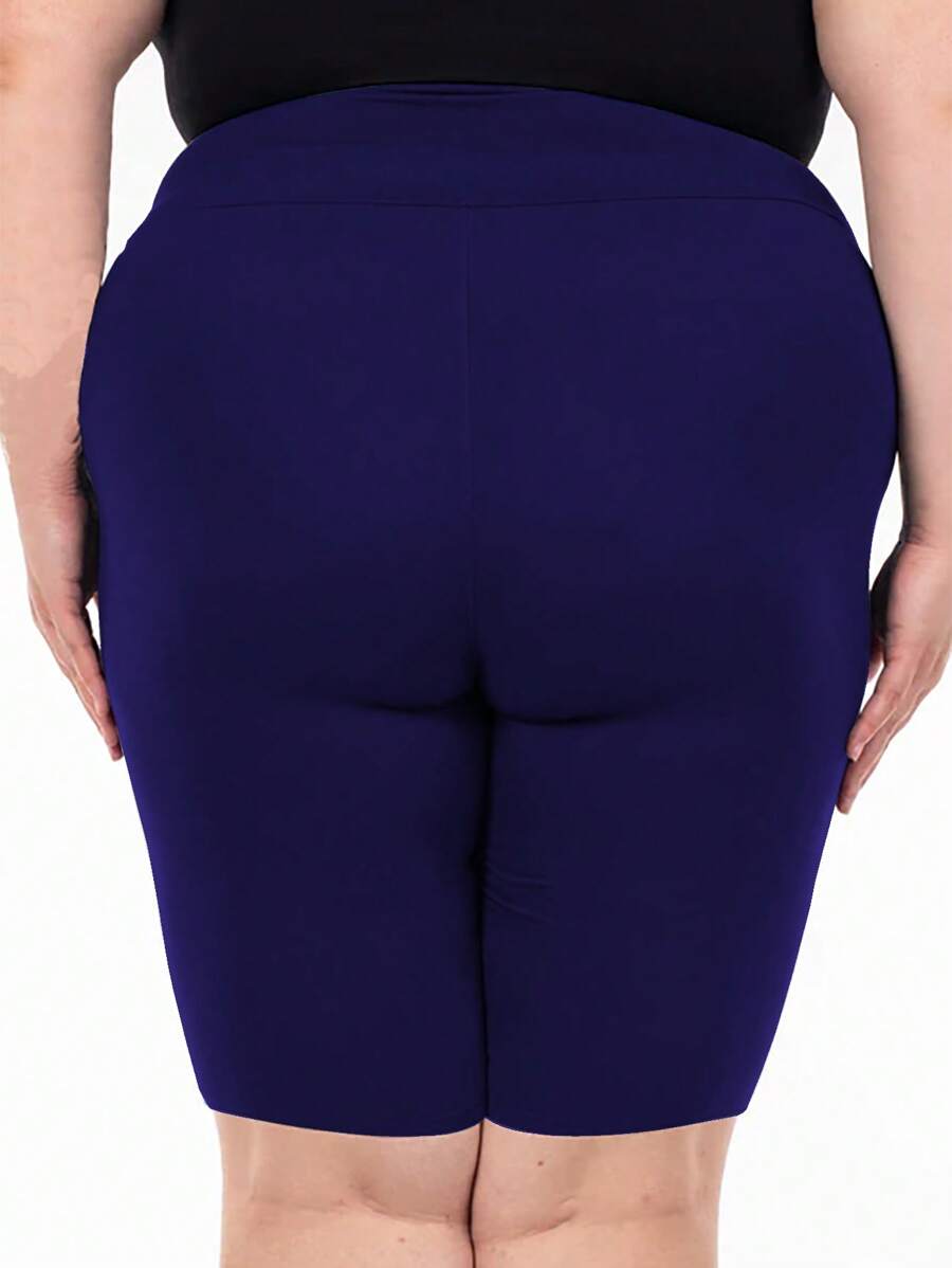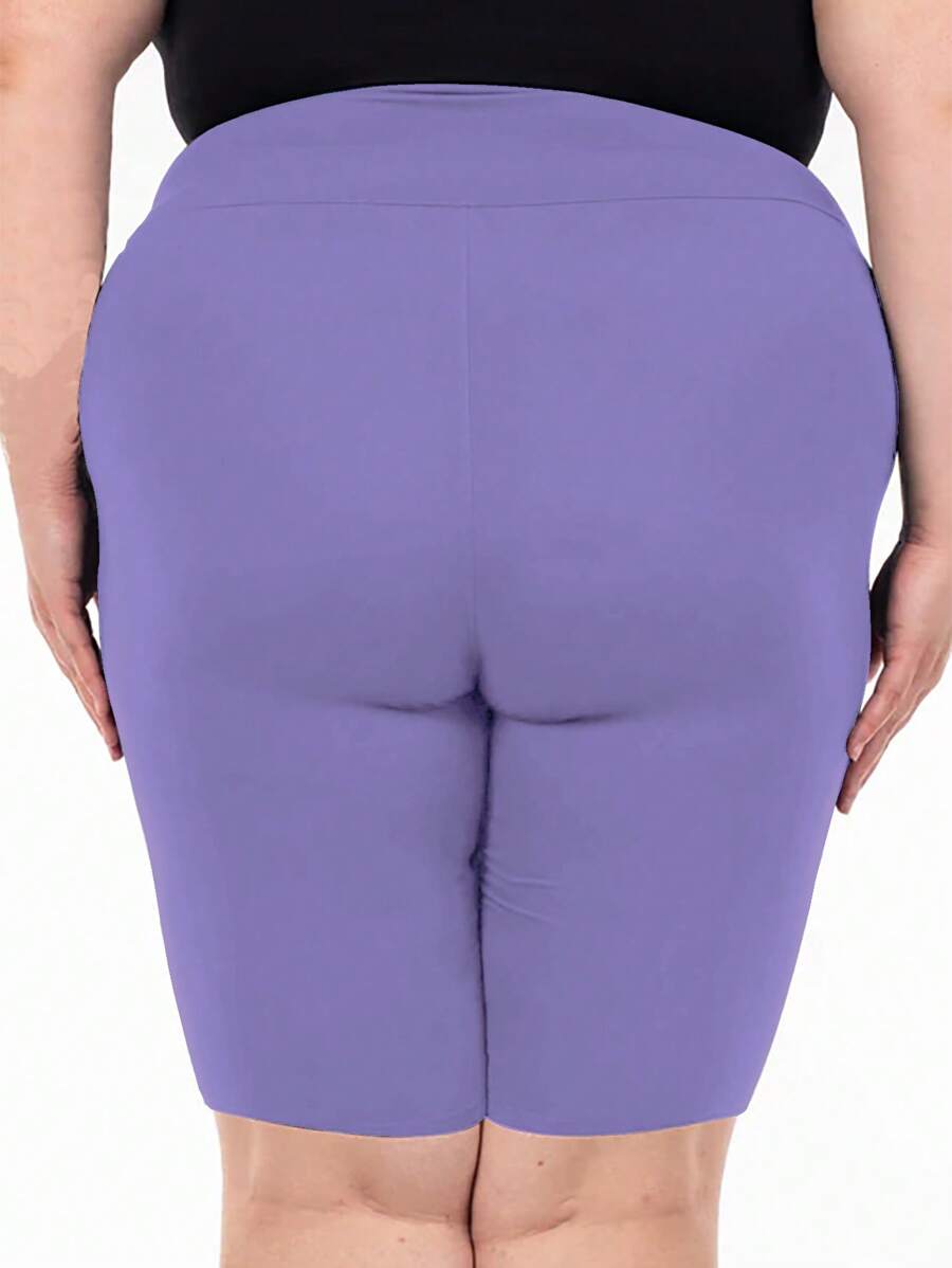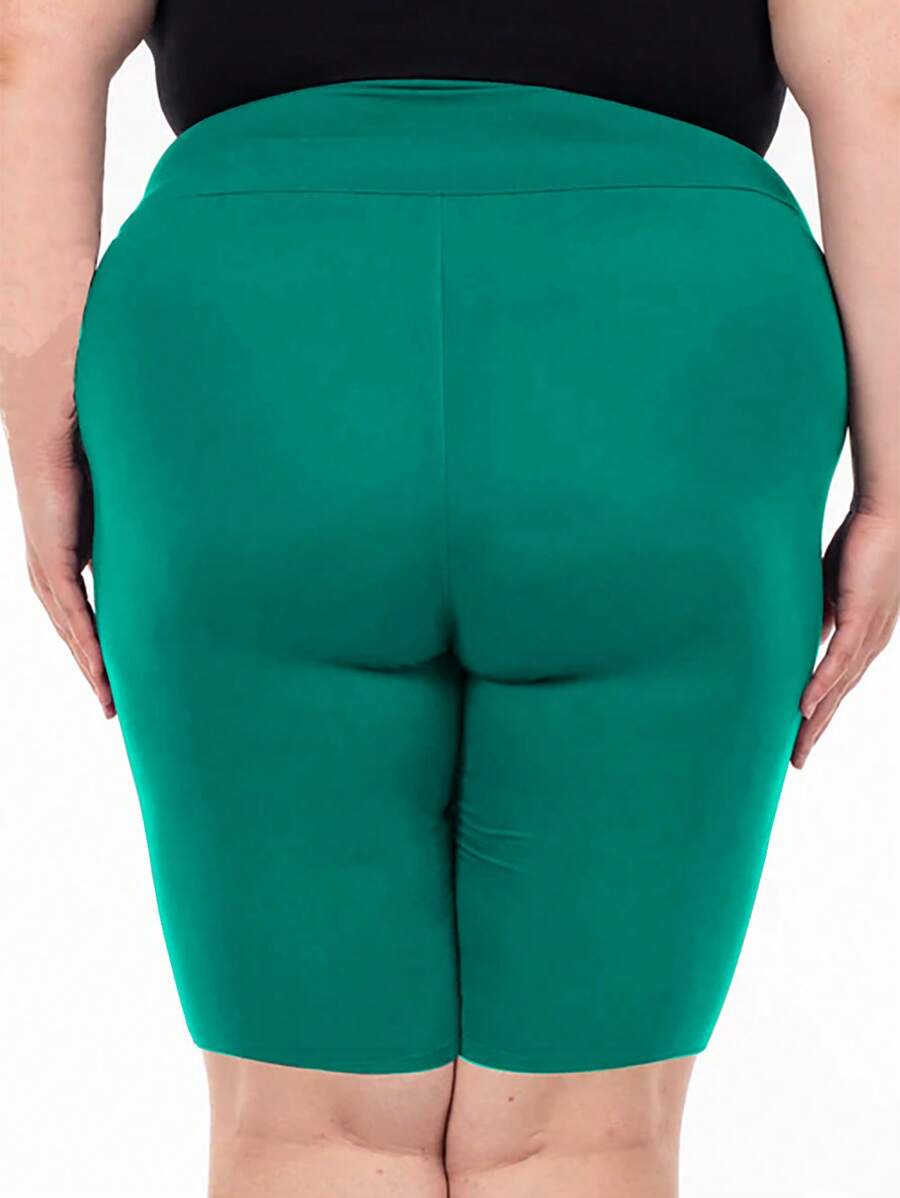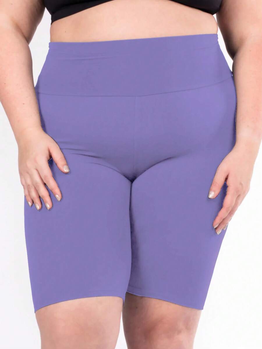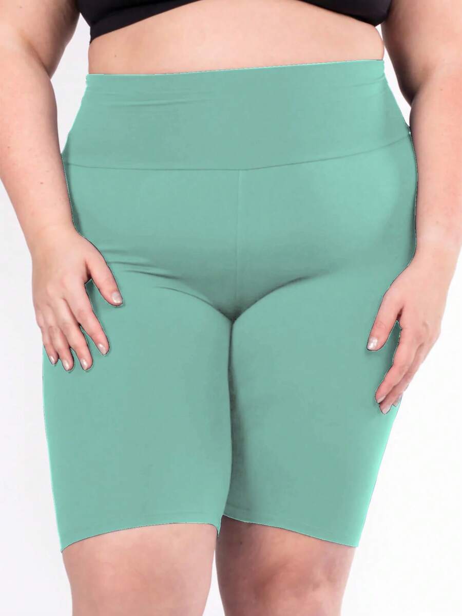 Pantalones cortos de mujer de talla grande de unicolor, tela de punto de poliester, cintura elastica, longitud corta, mallas de fitness de alta elasticidad, adecuadas para uso casual y entrenamiento los fines de semana