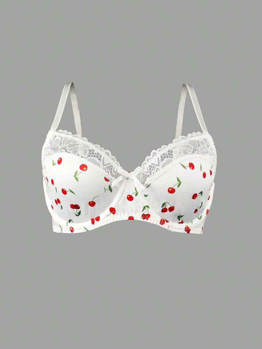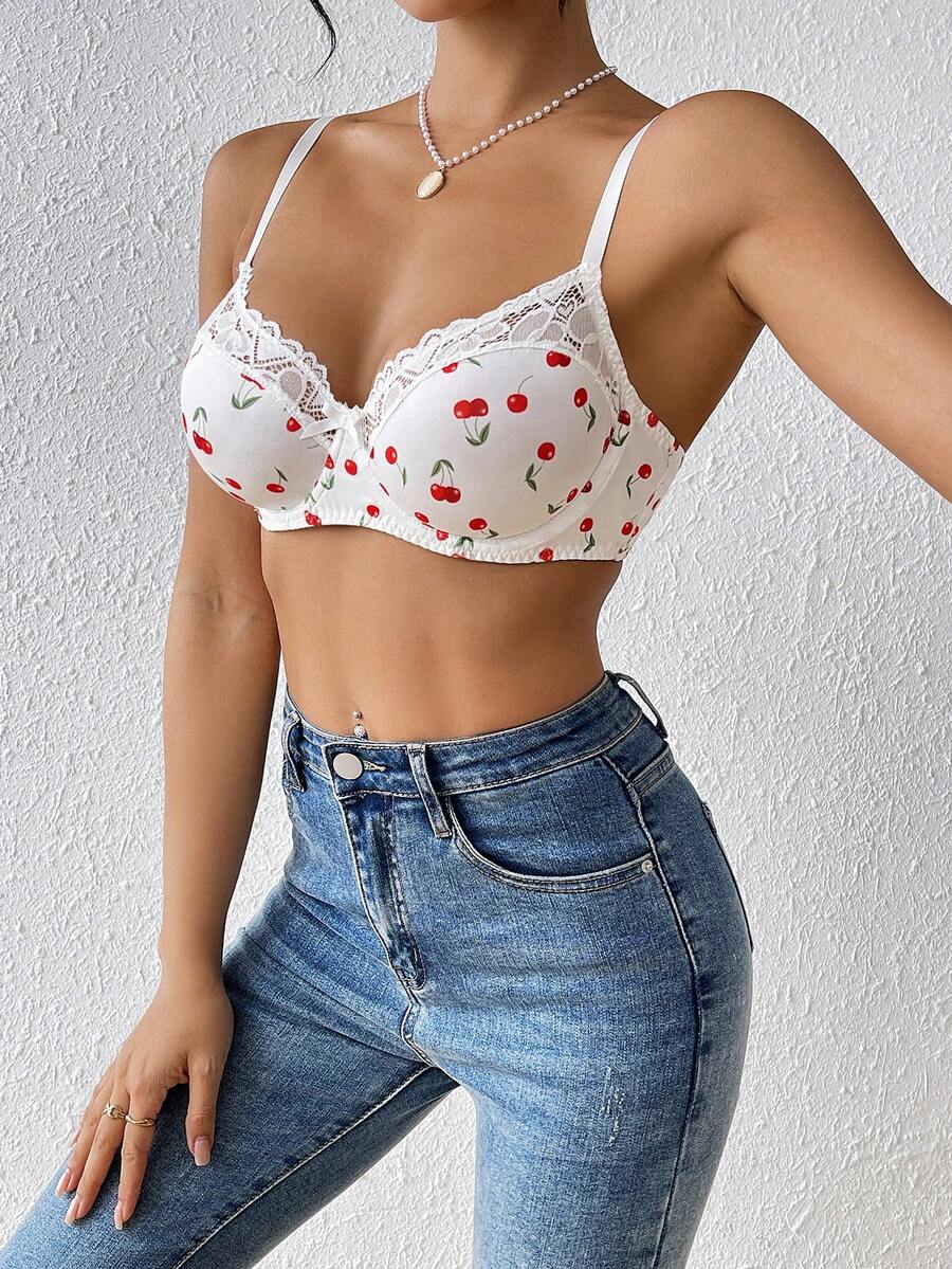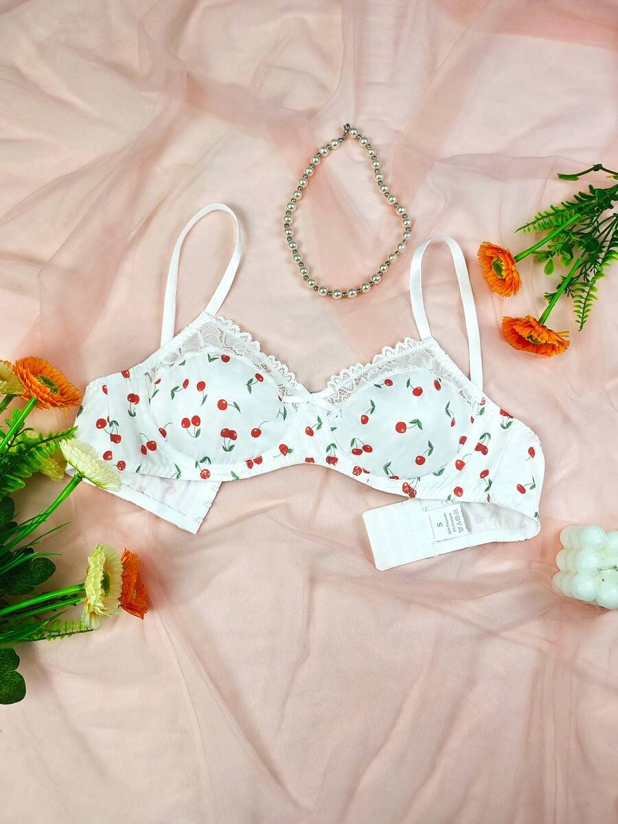 1 pieza brasier sexy con aros y relleno con encaje floral de cereza lindo para mujeres