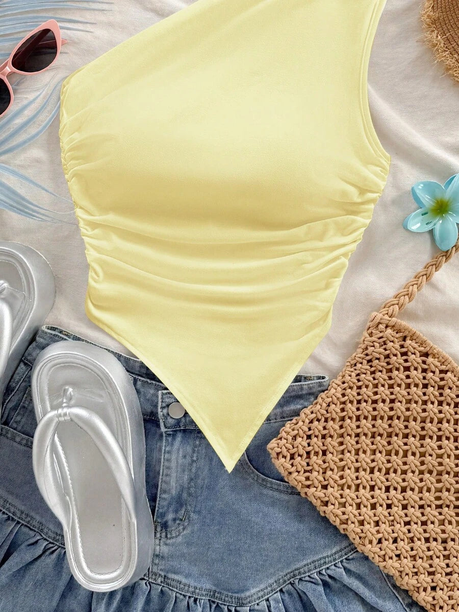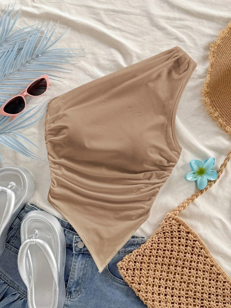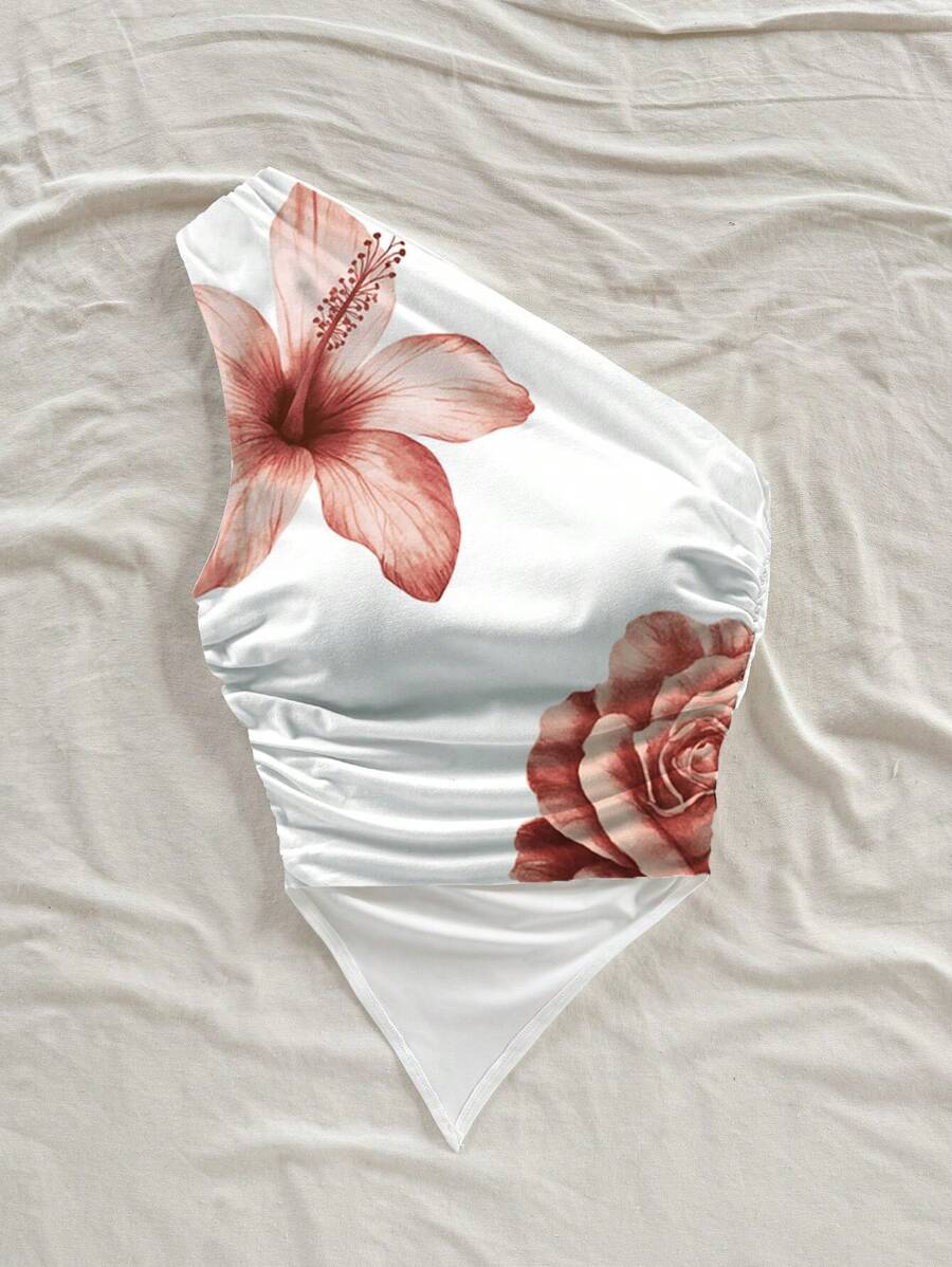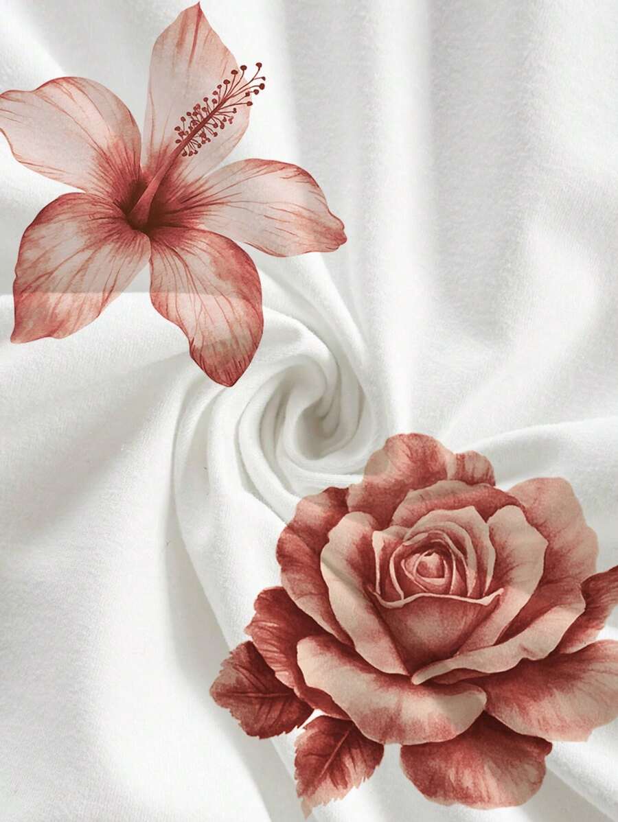Top corto con hombros descubiertos y estampado floral casual, adecuado para vacaciones de verano