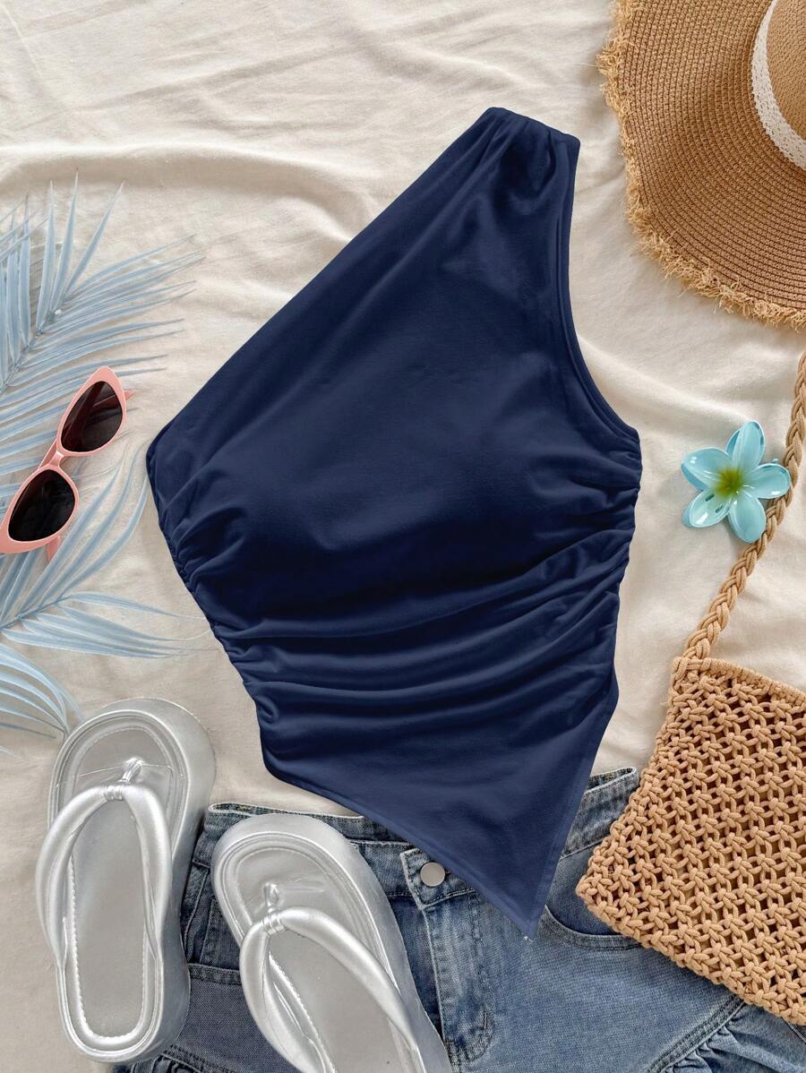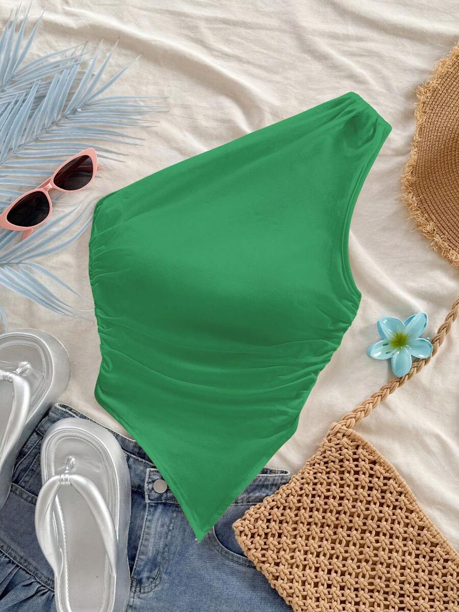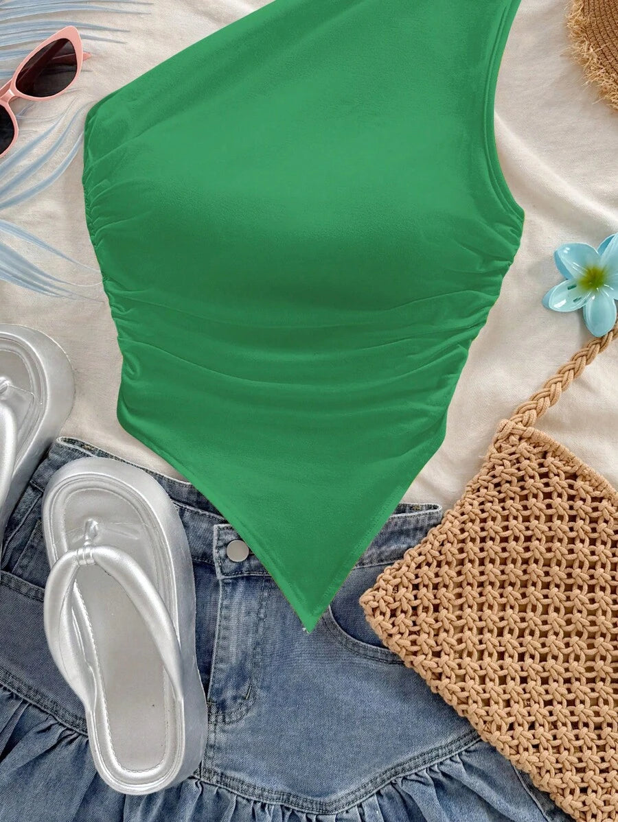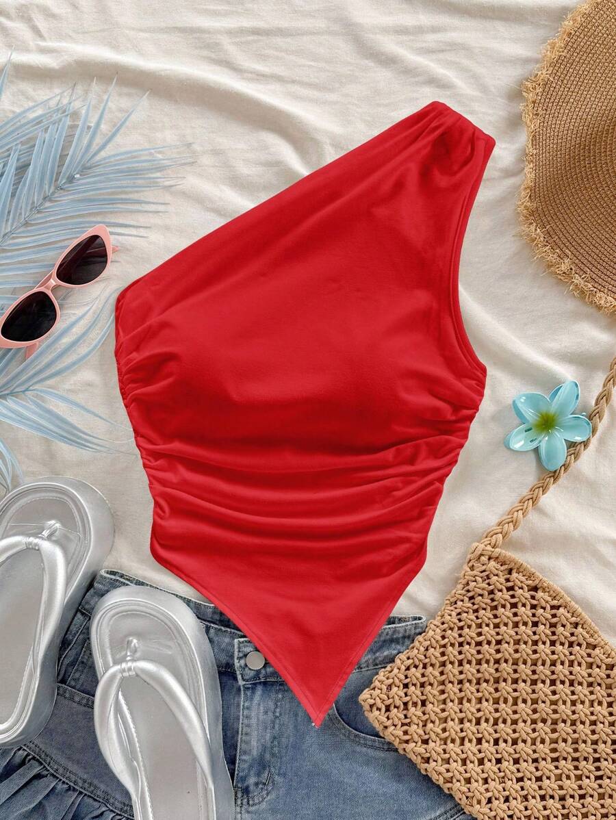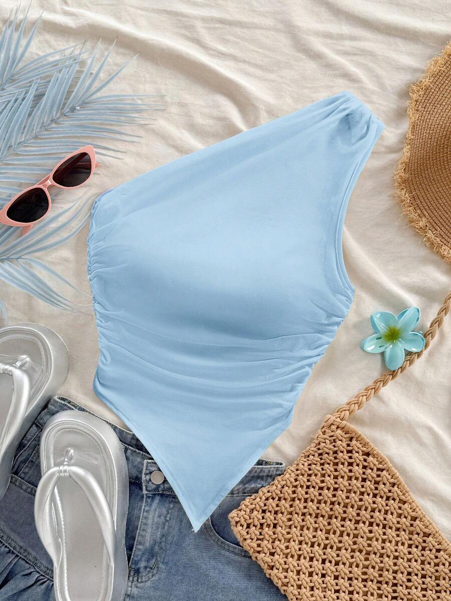 Top corto con hombros descubiertos y estampado floral casual, adecuado para vacaciones de verano