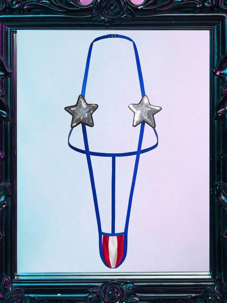 Fantasy costume conjunto de lenceria de 3 piezas para mujer con parches de lentejuelas brillantes y muy sexy
