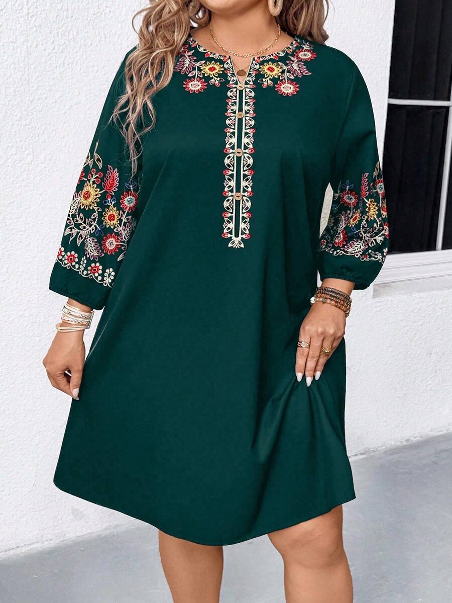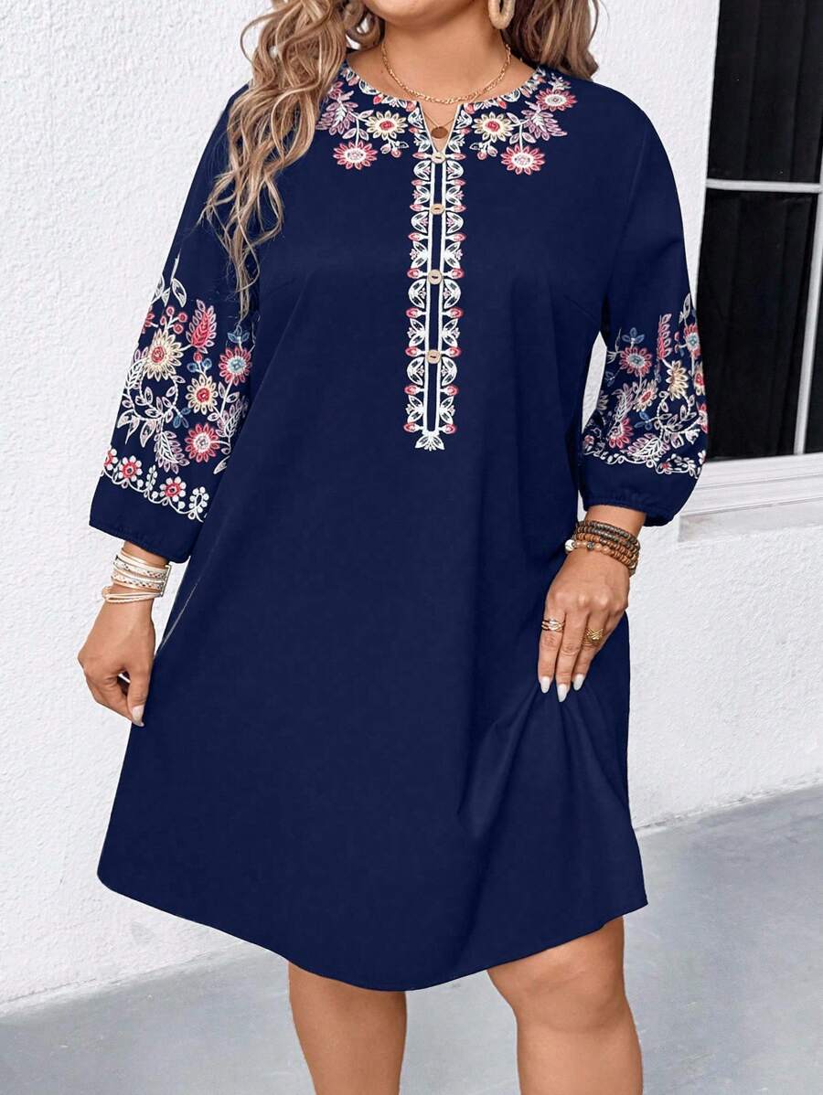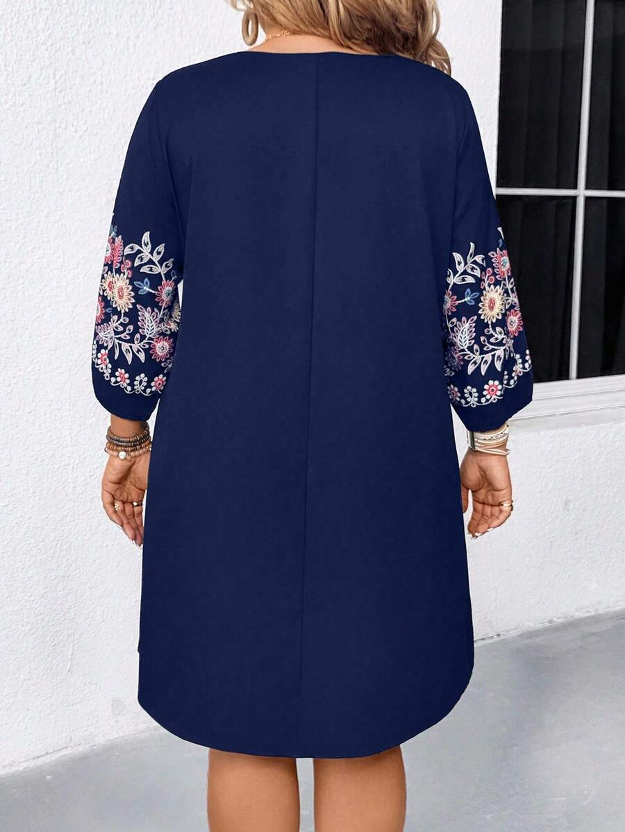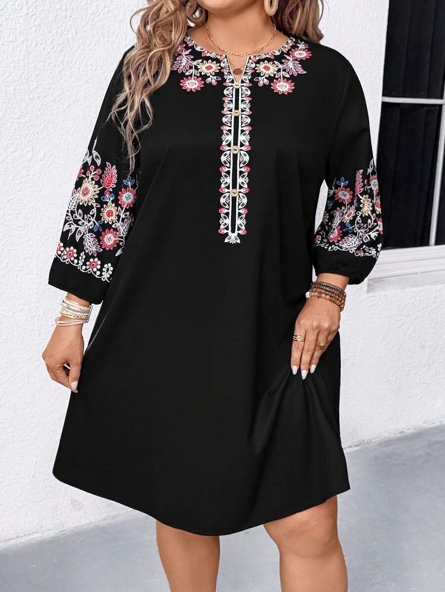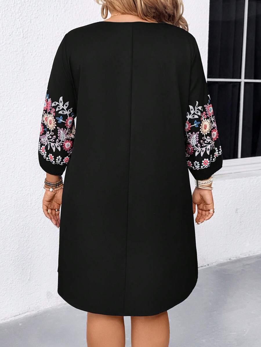 Vestido elegante de estilo vintage retro casual para mujer, con patron floral versatil y comodo, cuello en v, manga 3/4, puno elastico y longitud hasta la rodilla, color negro, talla grande, para primavera/verano/otono