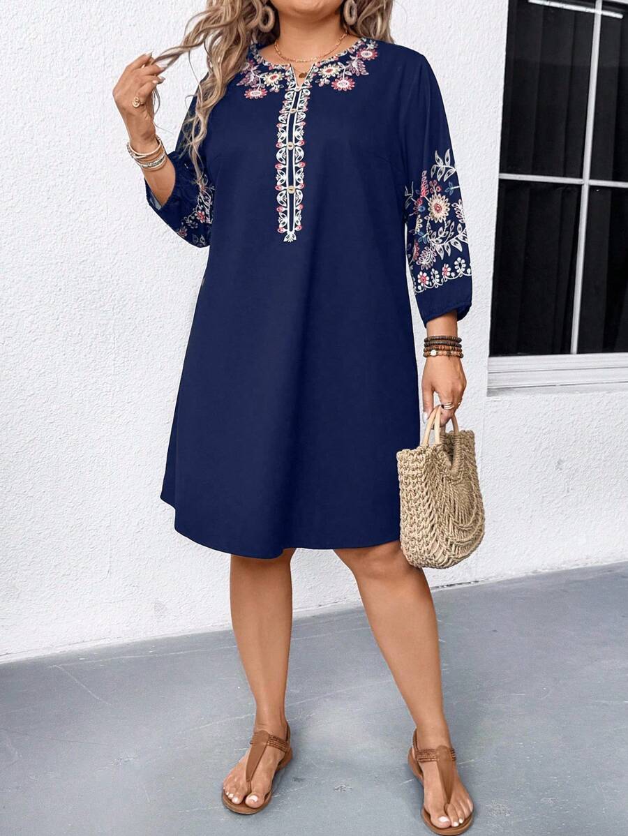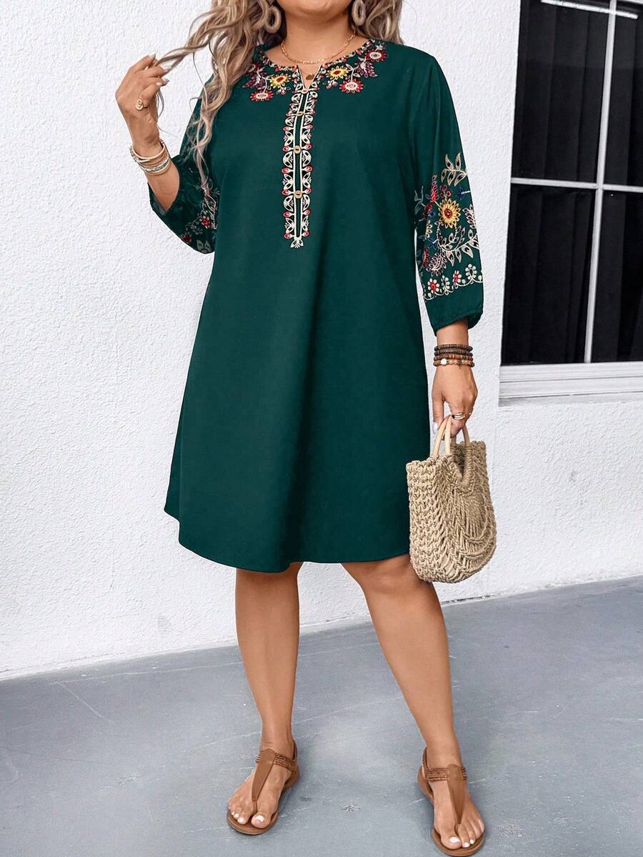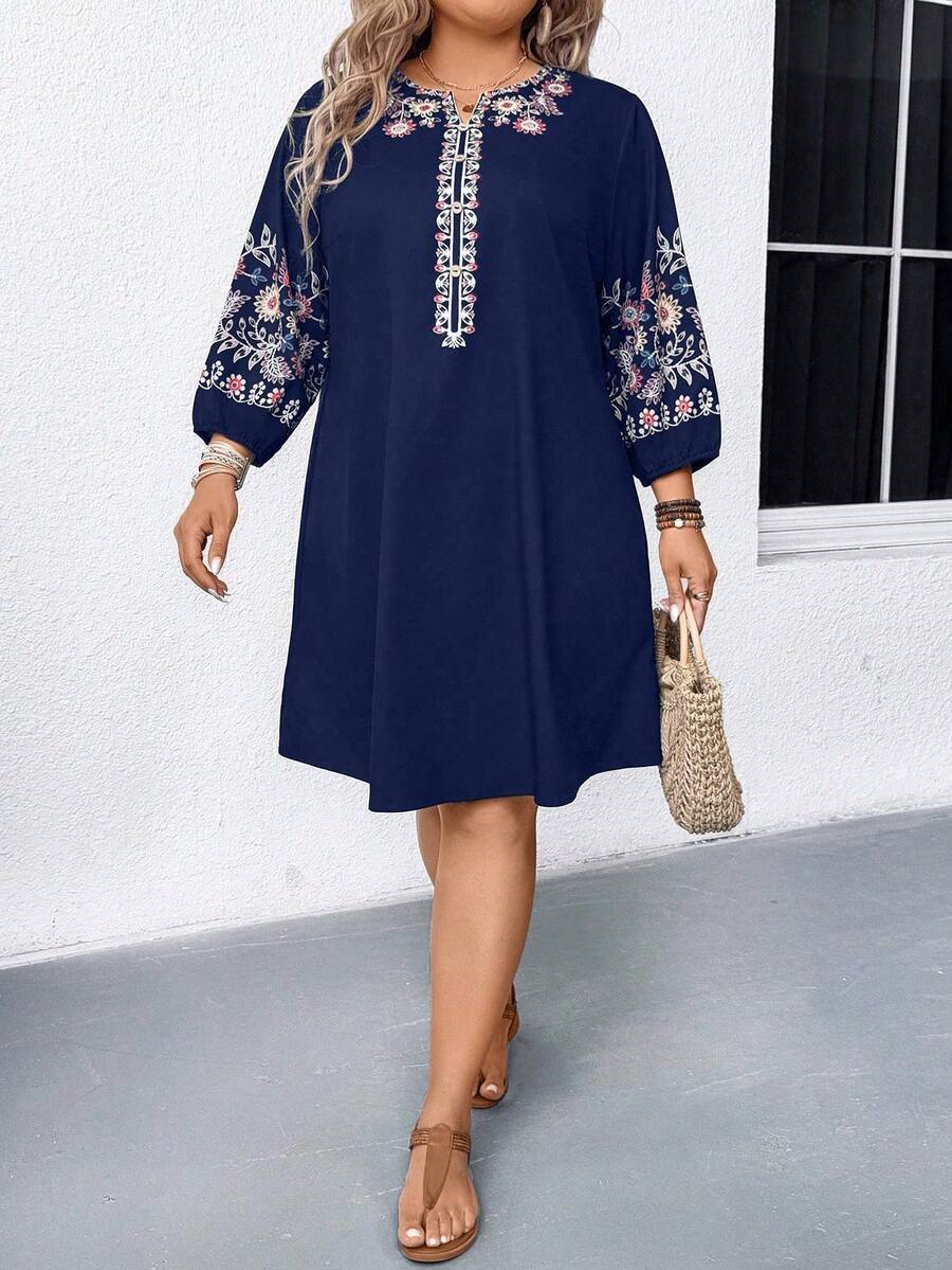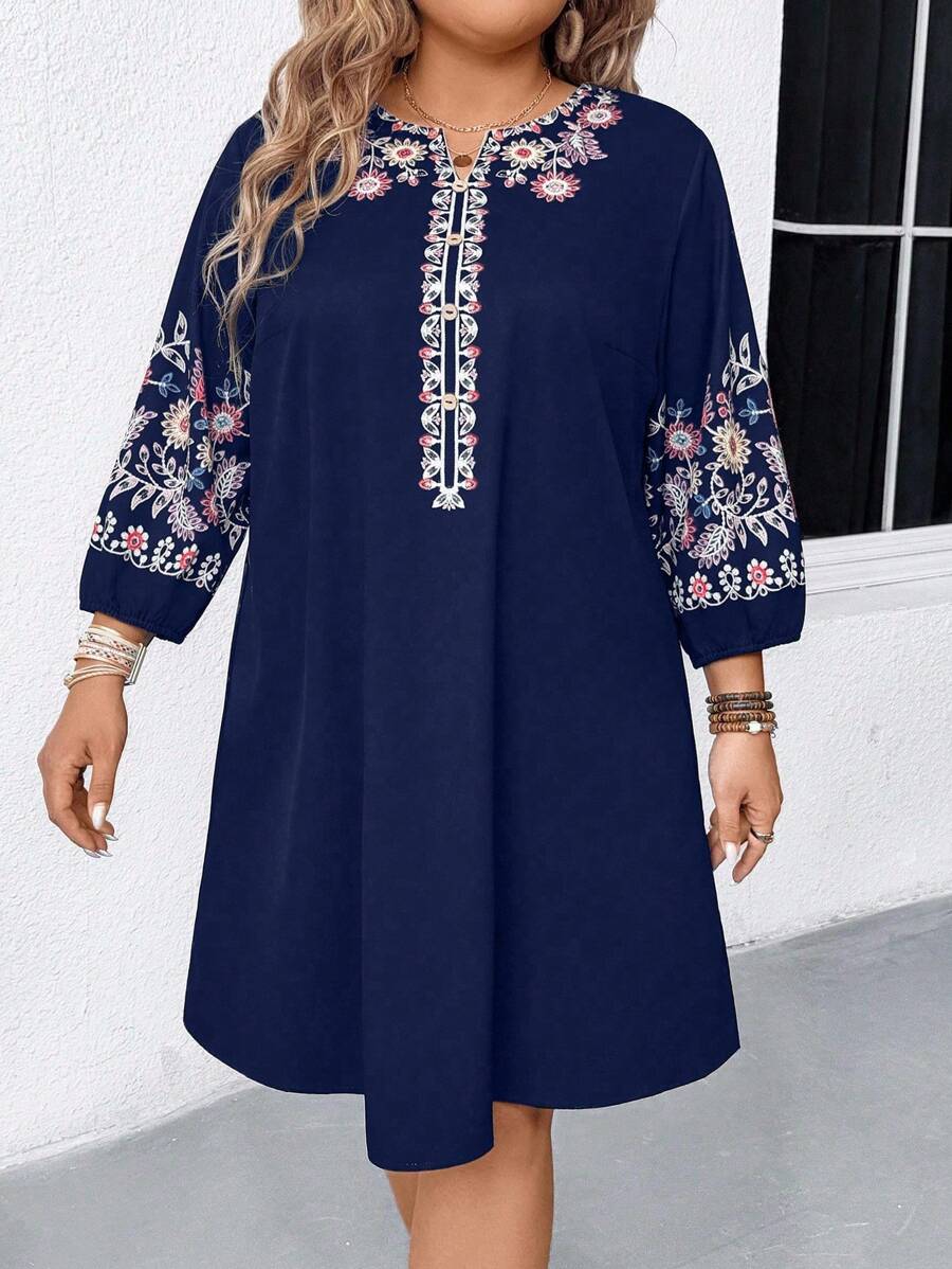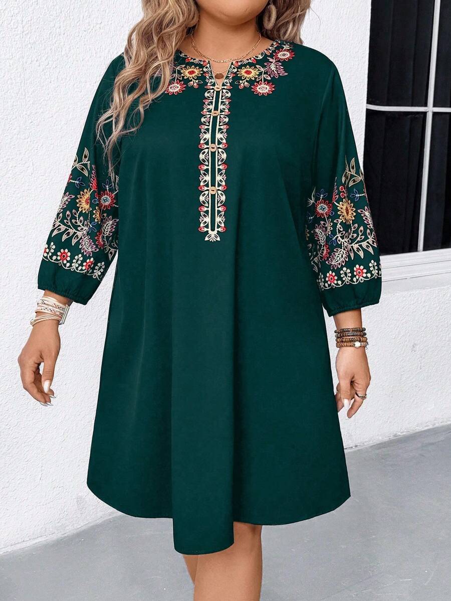 Vestido elegante de estilo vintage retro casual para mujer, con patron floral versatil y comodo, cuello en v, manga 3/4, puno elastico y longitud hasta la rodilla, color negro, talla grande, para primavera/verano/otono