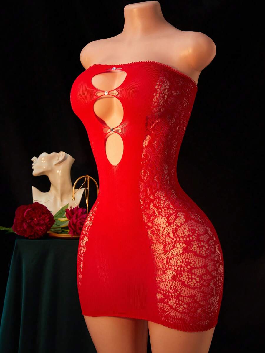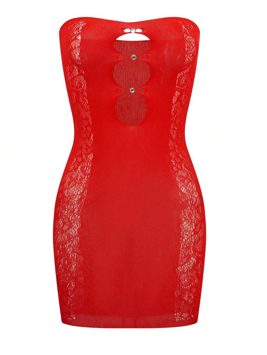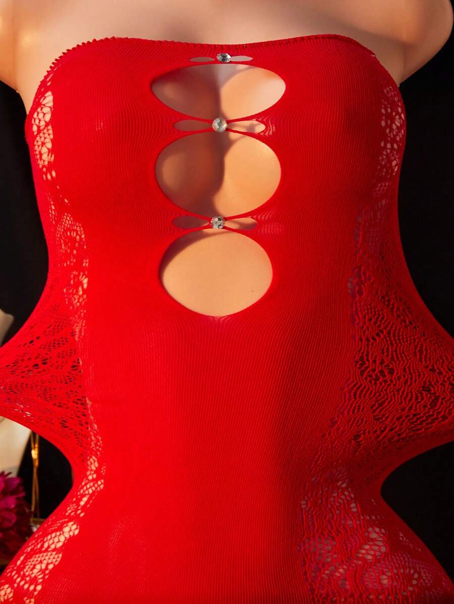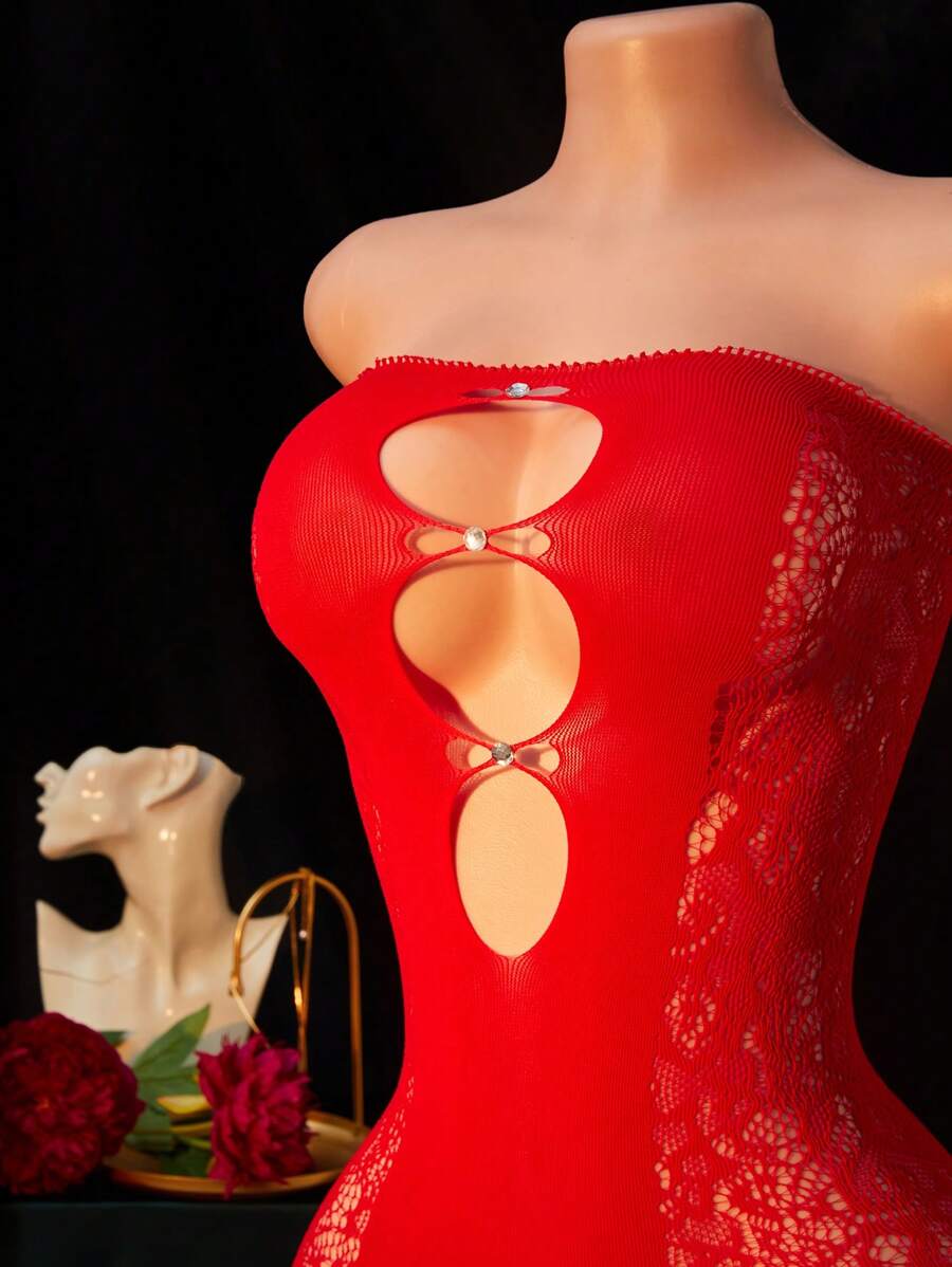 Conjunto de lenceria para mujer de talla grande, unicolor, transparente, sin mangas, con diseno calado, jacquard de alta elasticidad y sin costuras, bikini tipo camisola, camison sexy, sin ropa interior, para primavera/verano