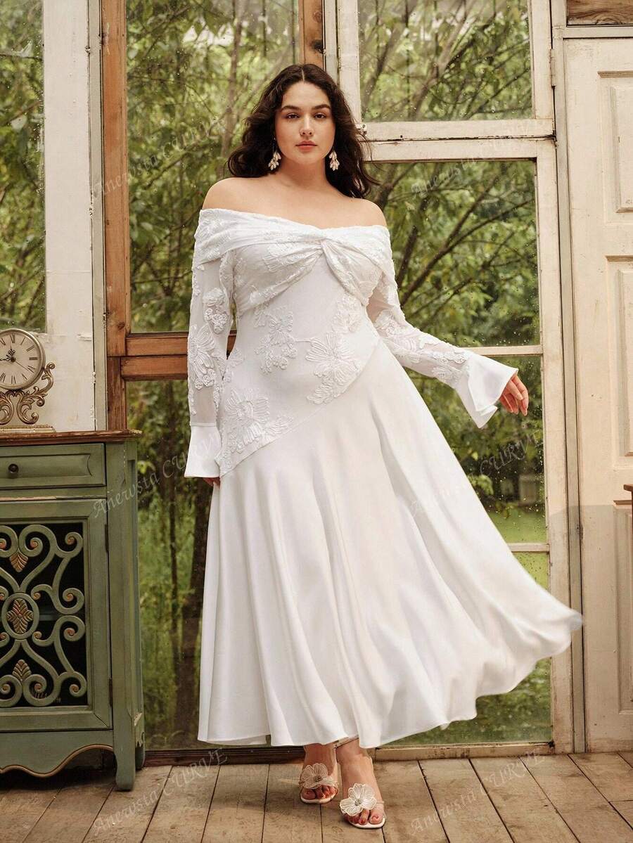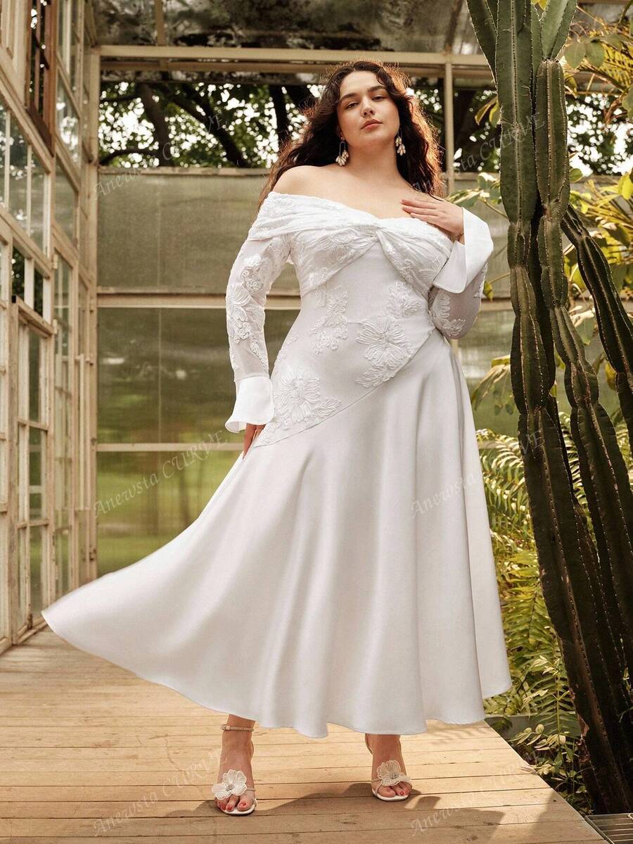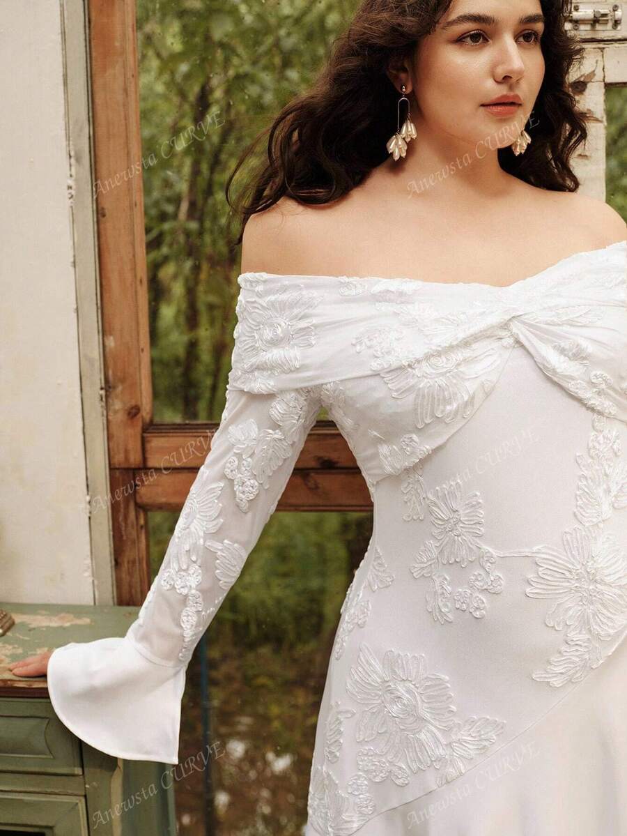 Vestido largo con hombros descubiertos, mangas acampanadas y elastico ajustado para mujeres