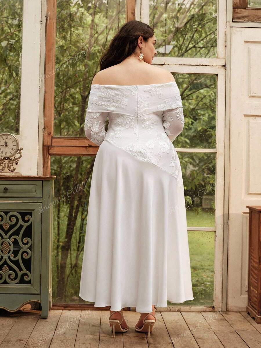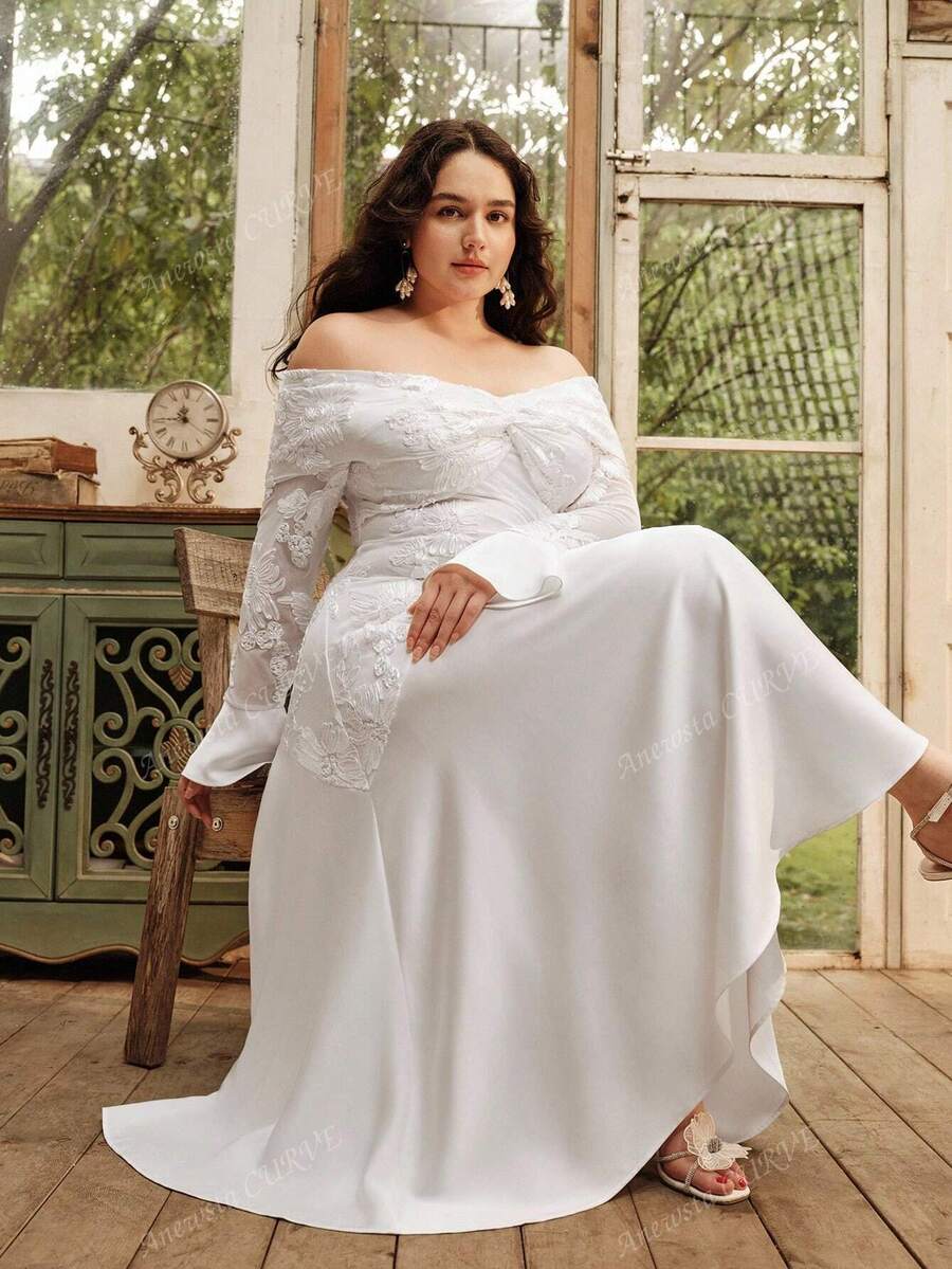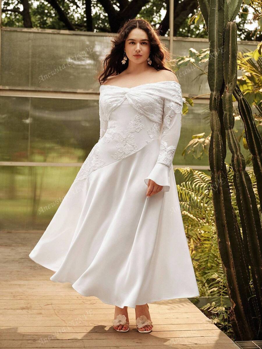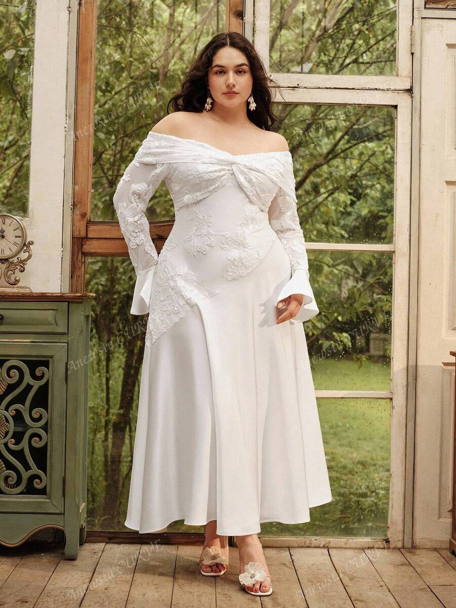 Vestido largo con hombros descubiertos, mangas acampanadas y elastico ajustado para mujeres