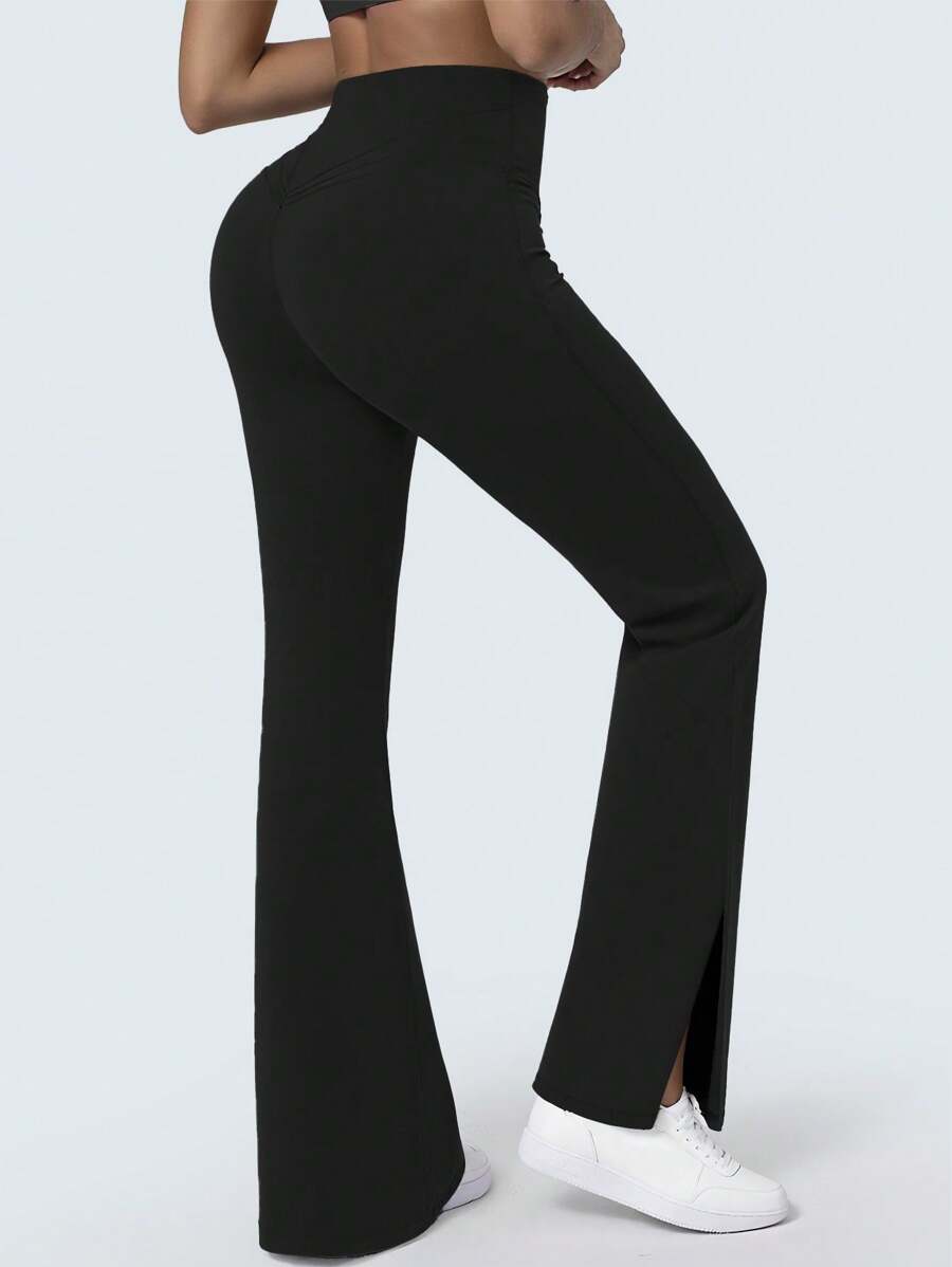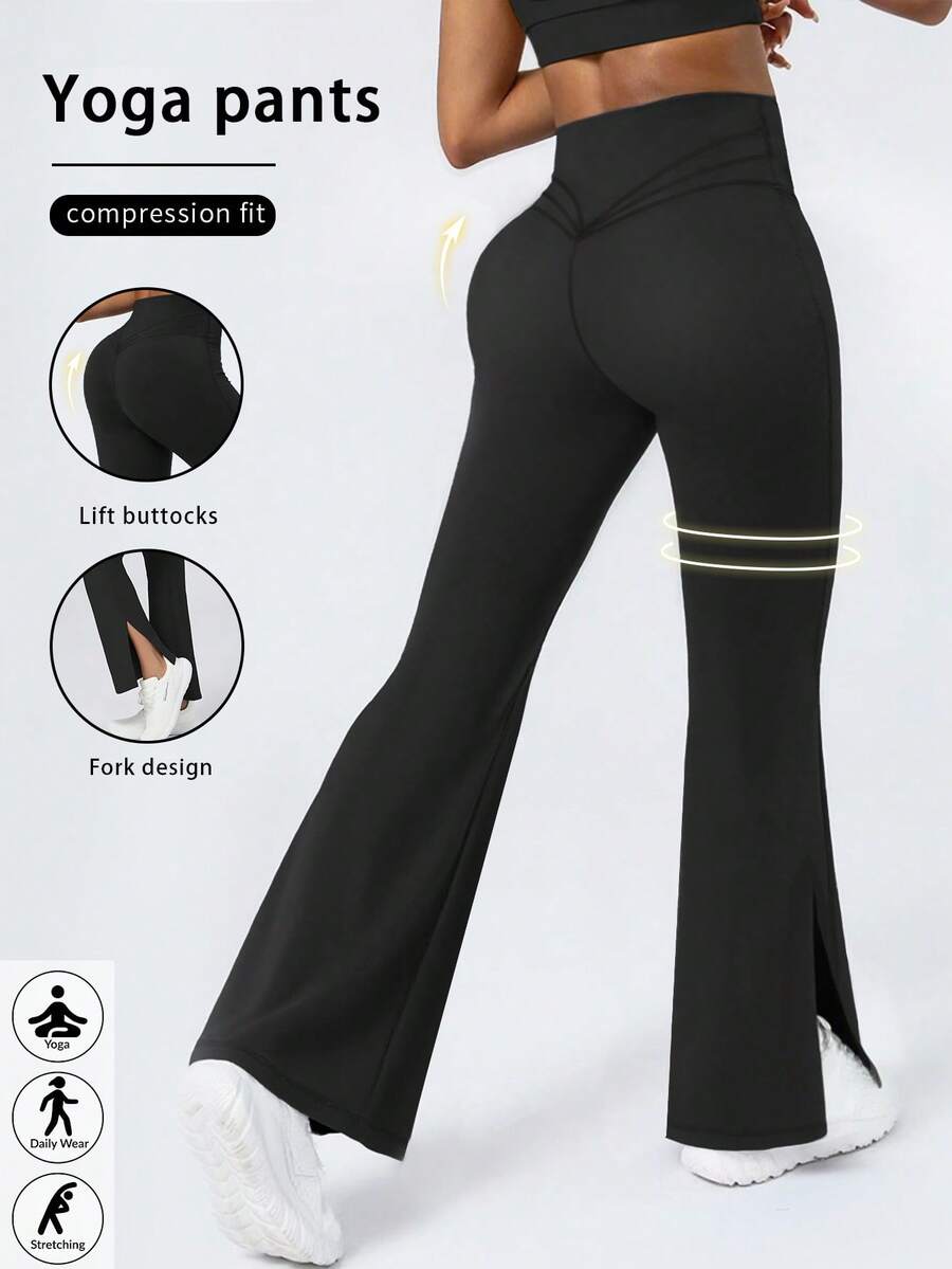 Yzmjafu pantalones de yoga y fitness con forma de "v" para levantar el trasero de mujer, con cinturon cruzado en la cintura y aberturas en las piernas. pantalones moldeadores del body y ensanchadores de piernas, adecuados para deportes y correr.